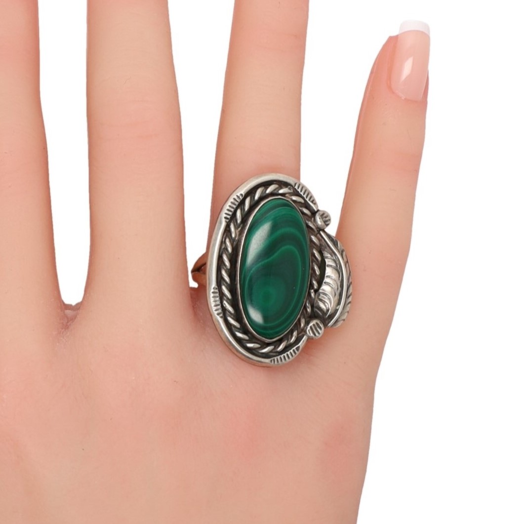 A Chapo Navajo Sterling Malachite Ring Sz. 6.25, 12g
