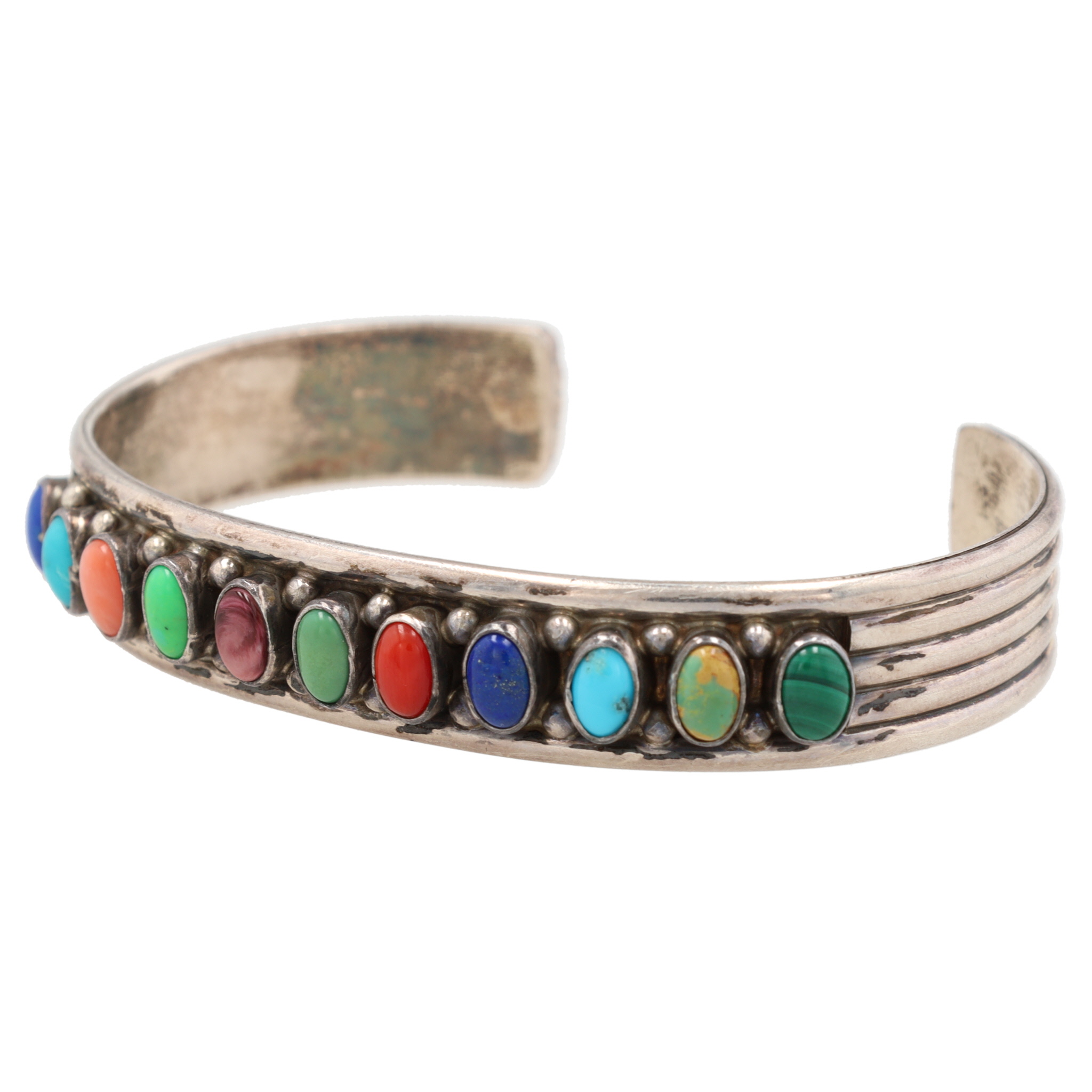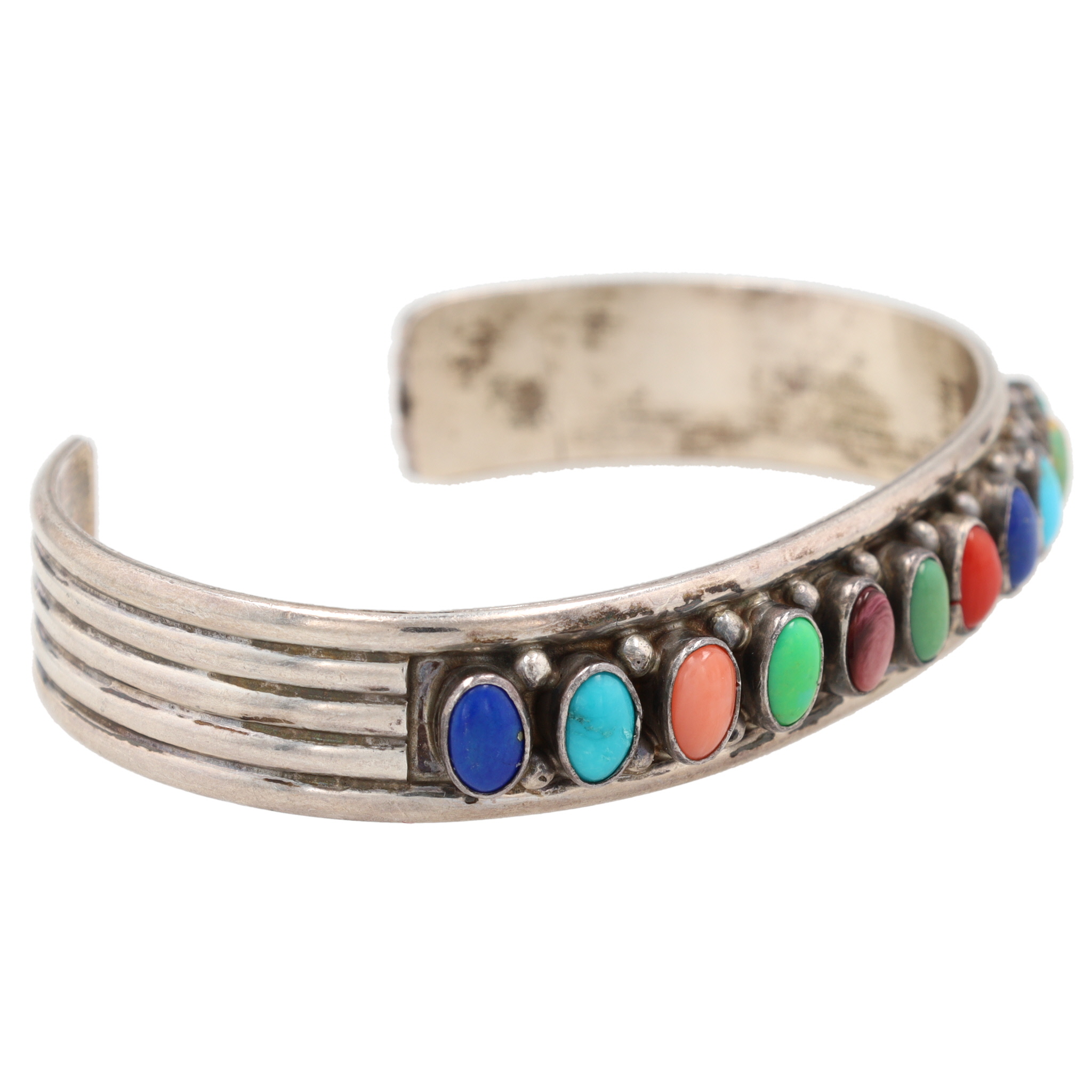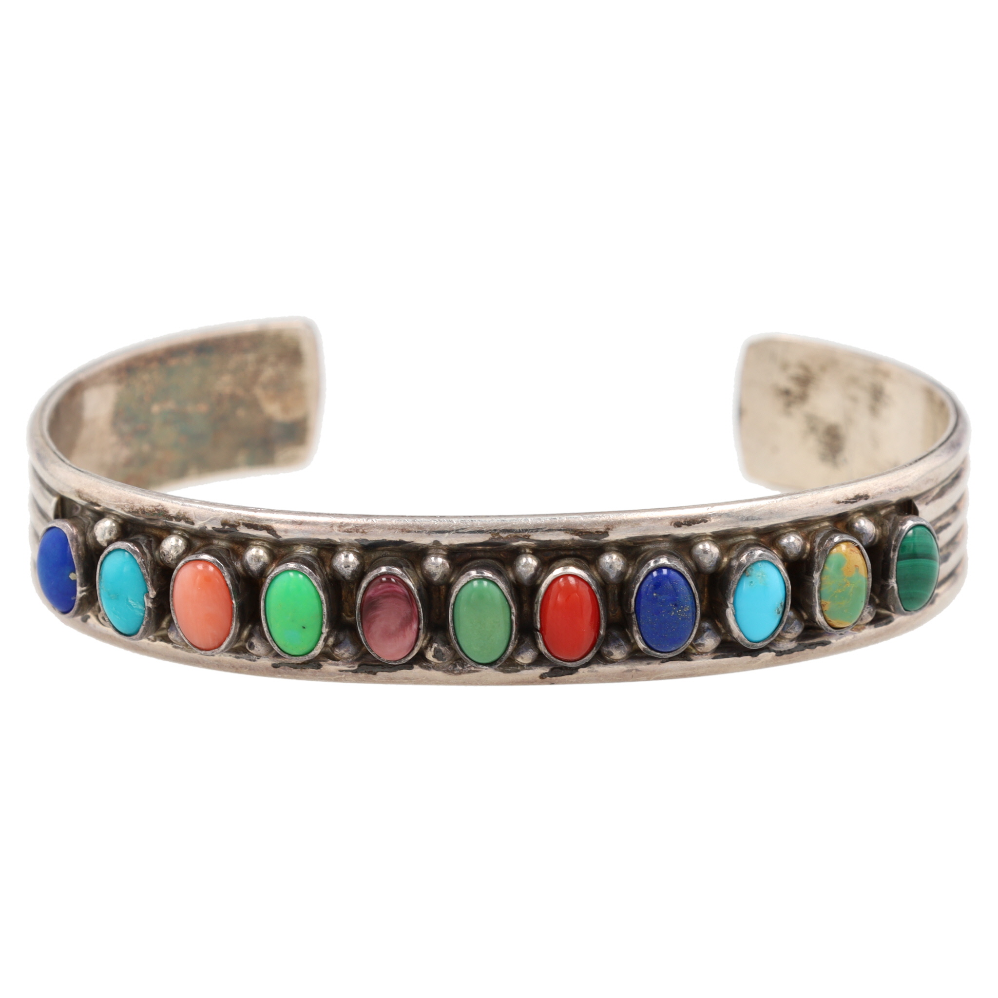 Pete Morgan Navajo Sterling Multi Stone Cuff Bracelet 20.5g