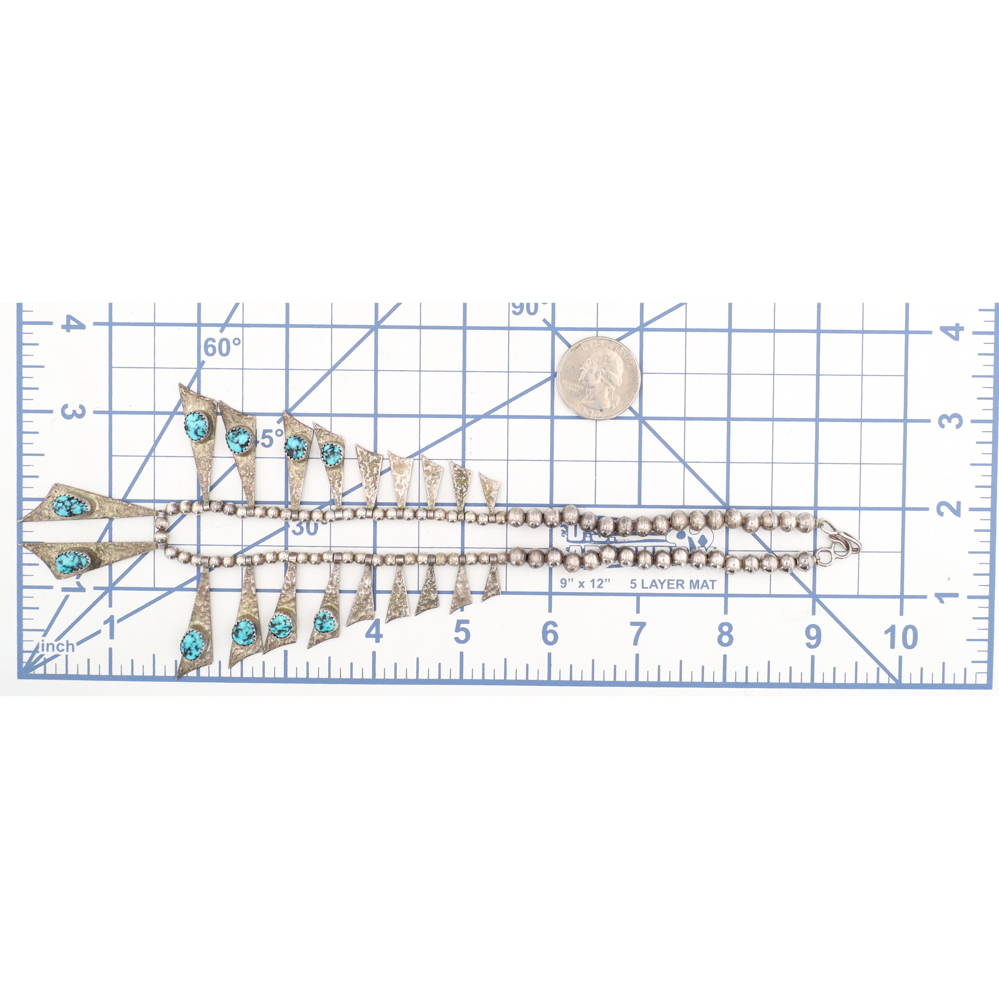Antoinette Platero Laguna Sterling Turquoise Fringe Necklace 40g