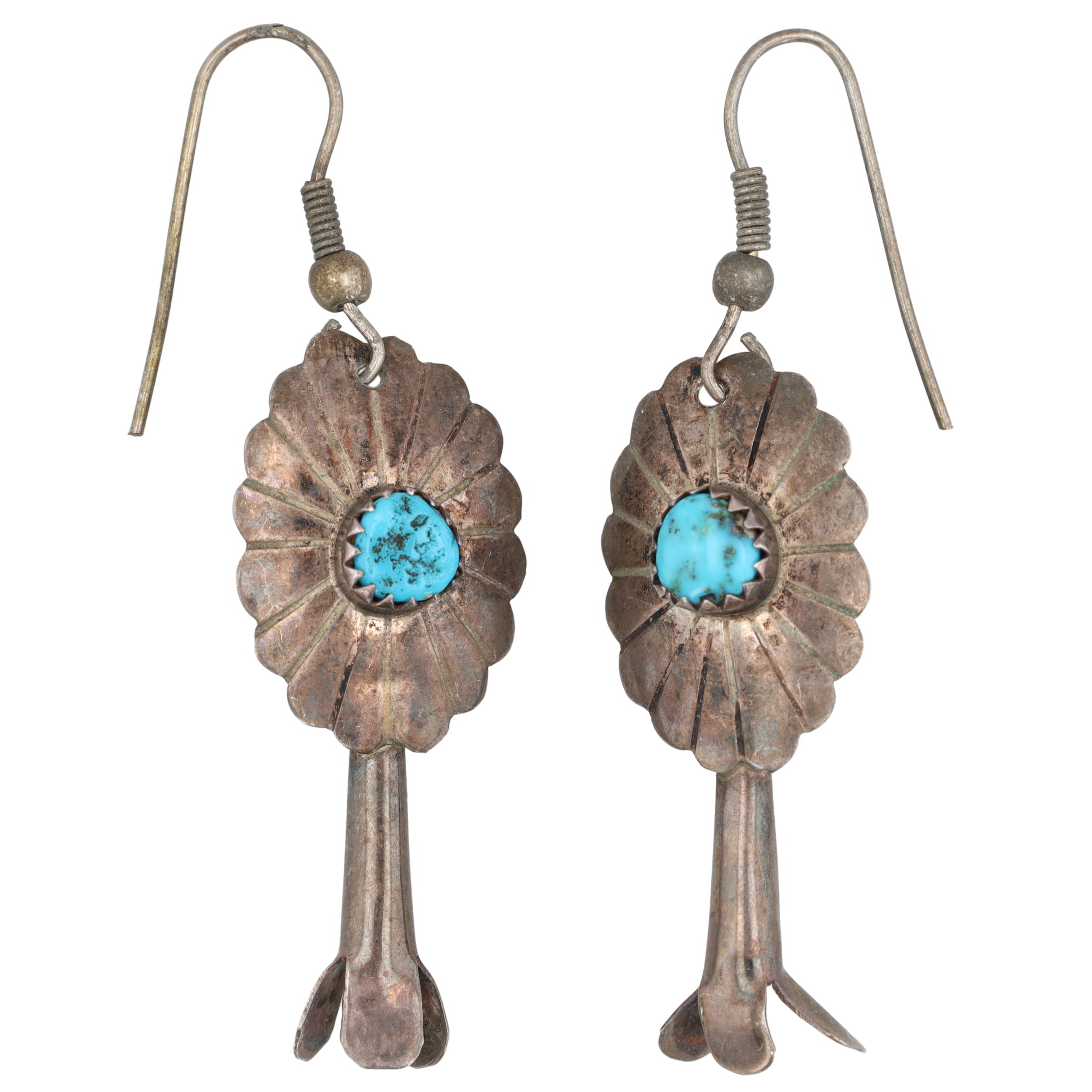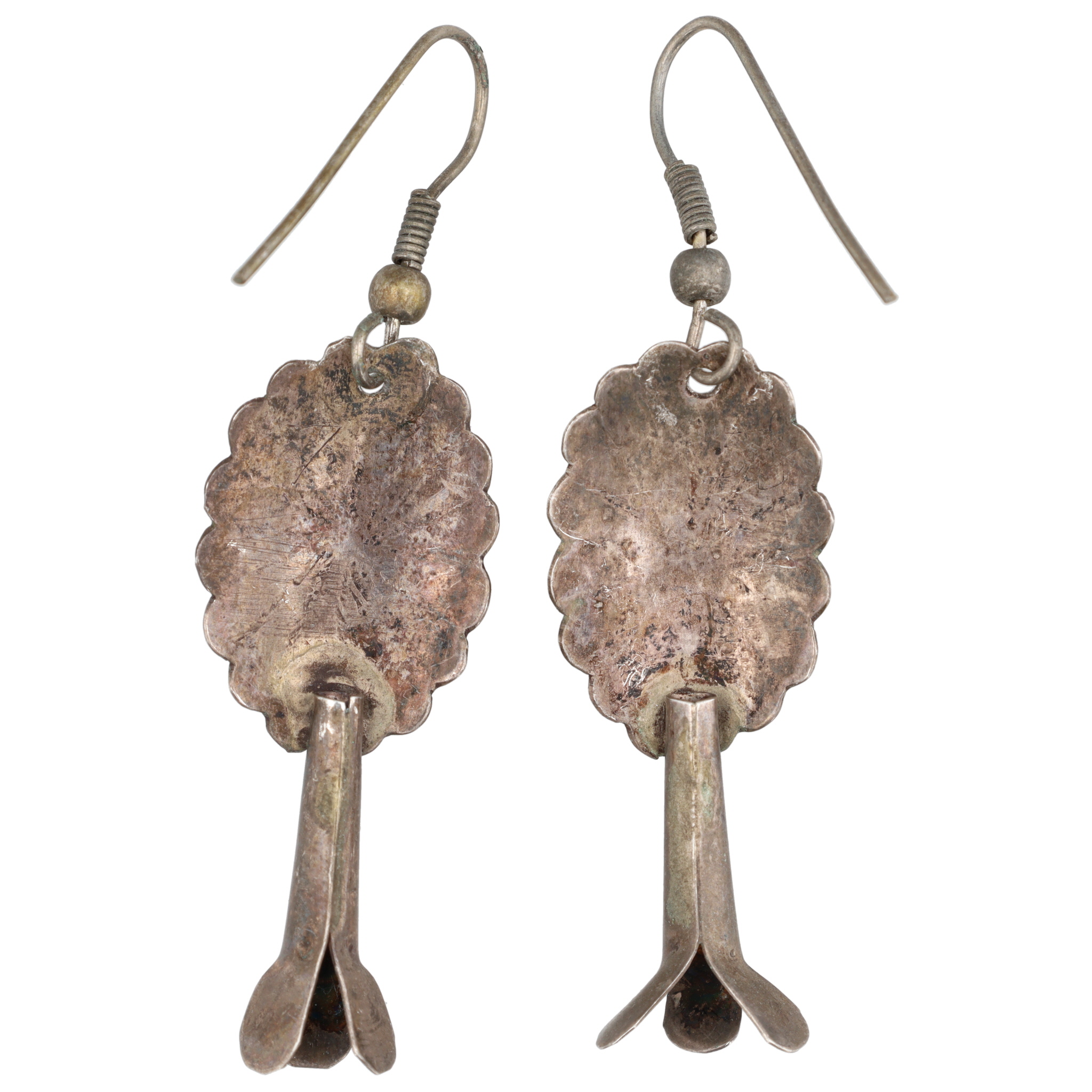 Vintage Navajo Sterling Turquoise Squash Blossom Earrings 4g