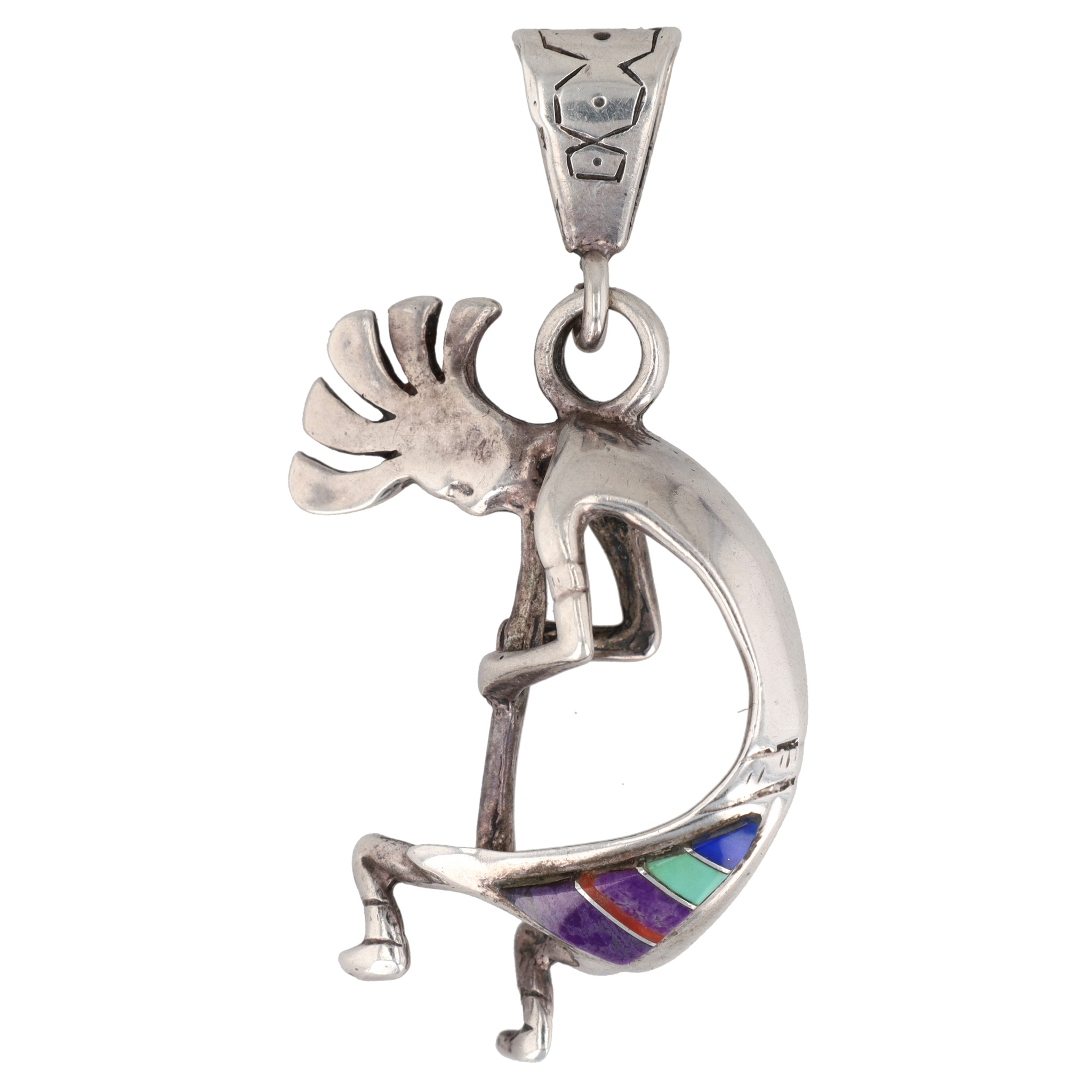 Vintage Navajo Sterling Multi Stone Kokopelli Inlay Pendant 14g