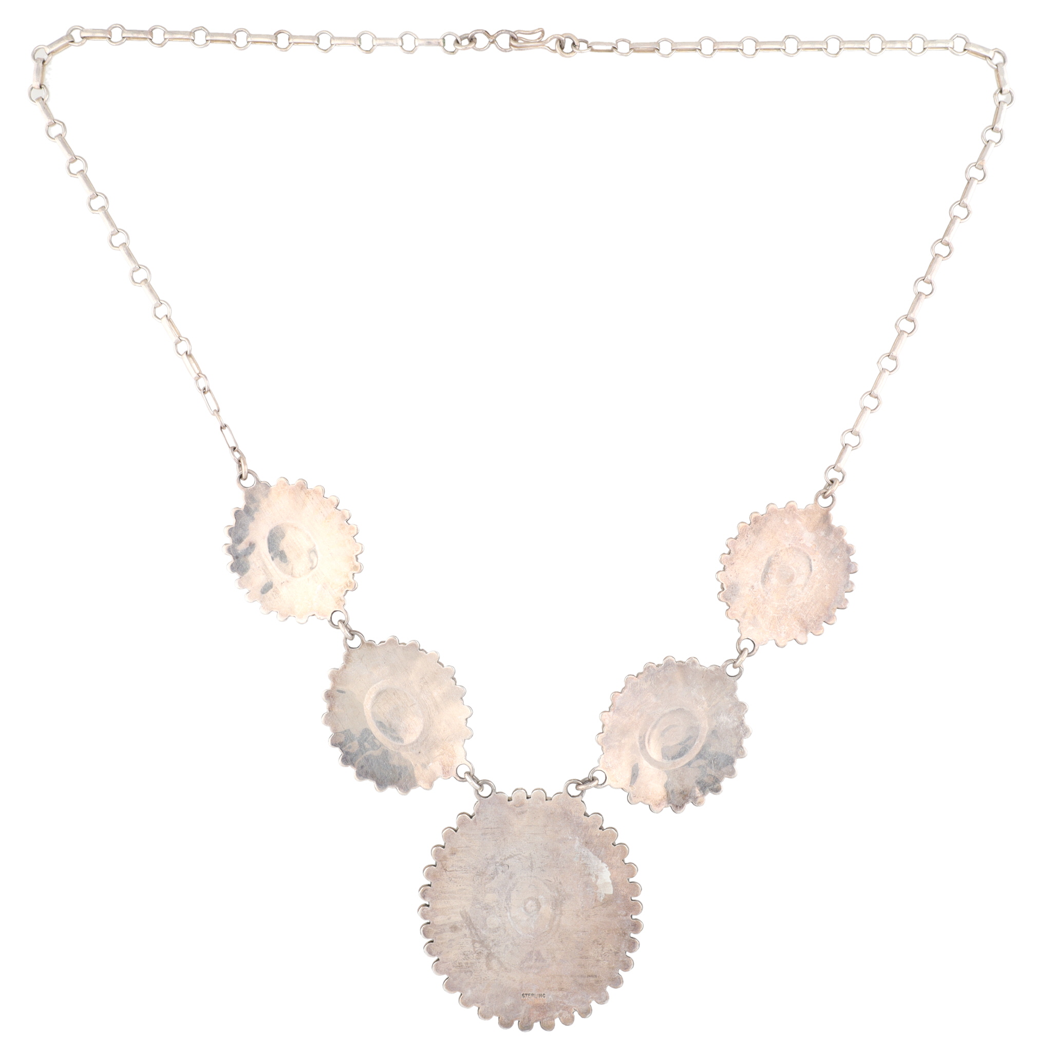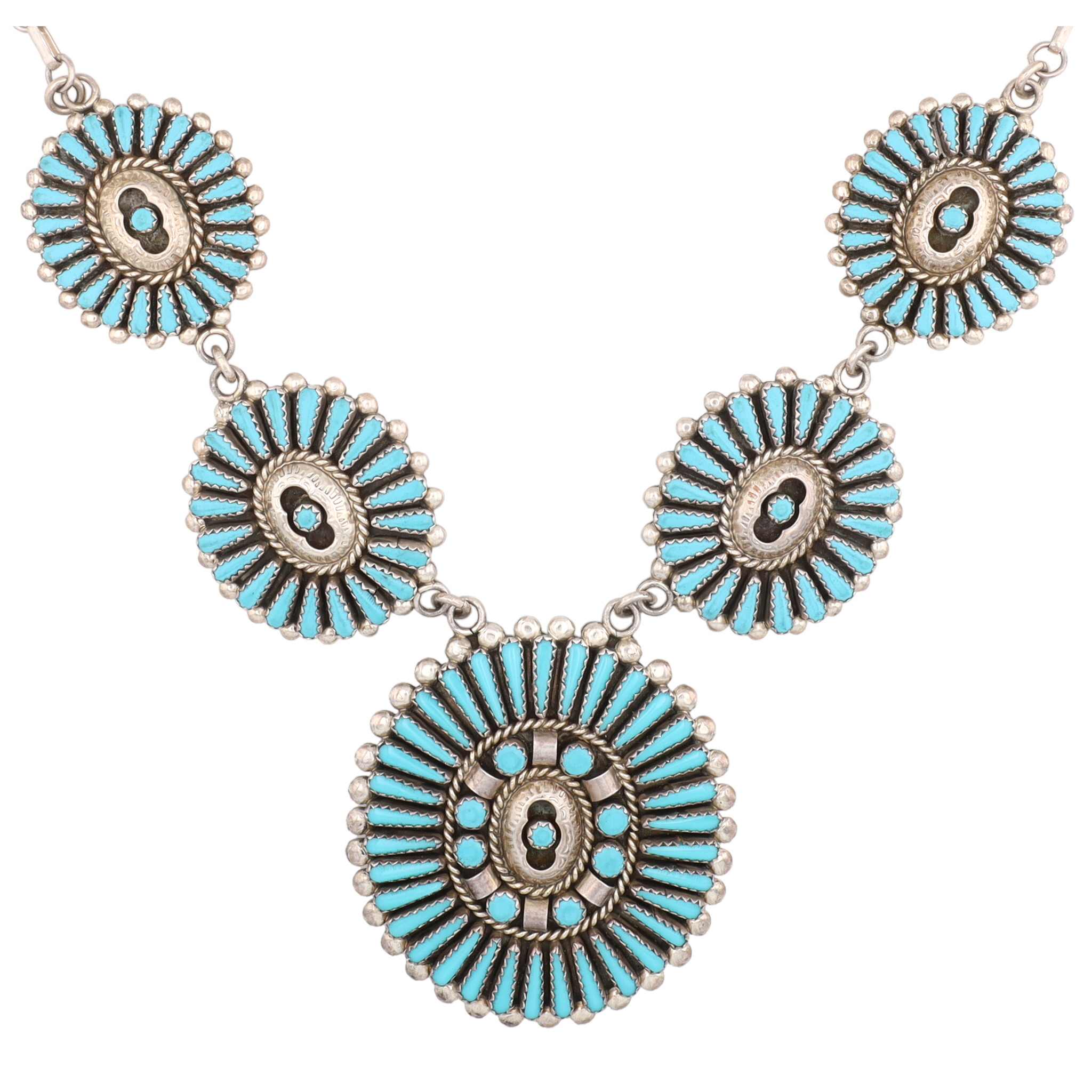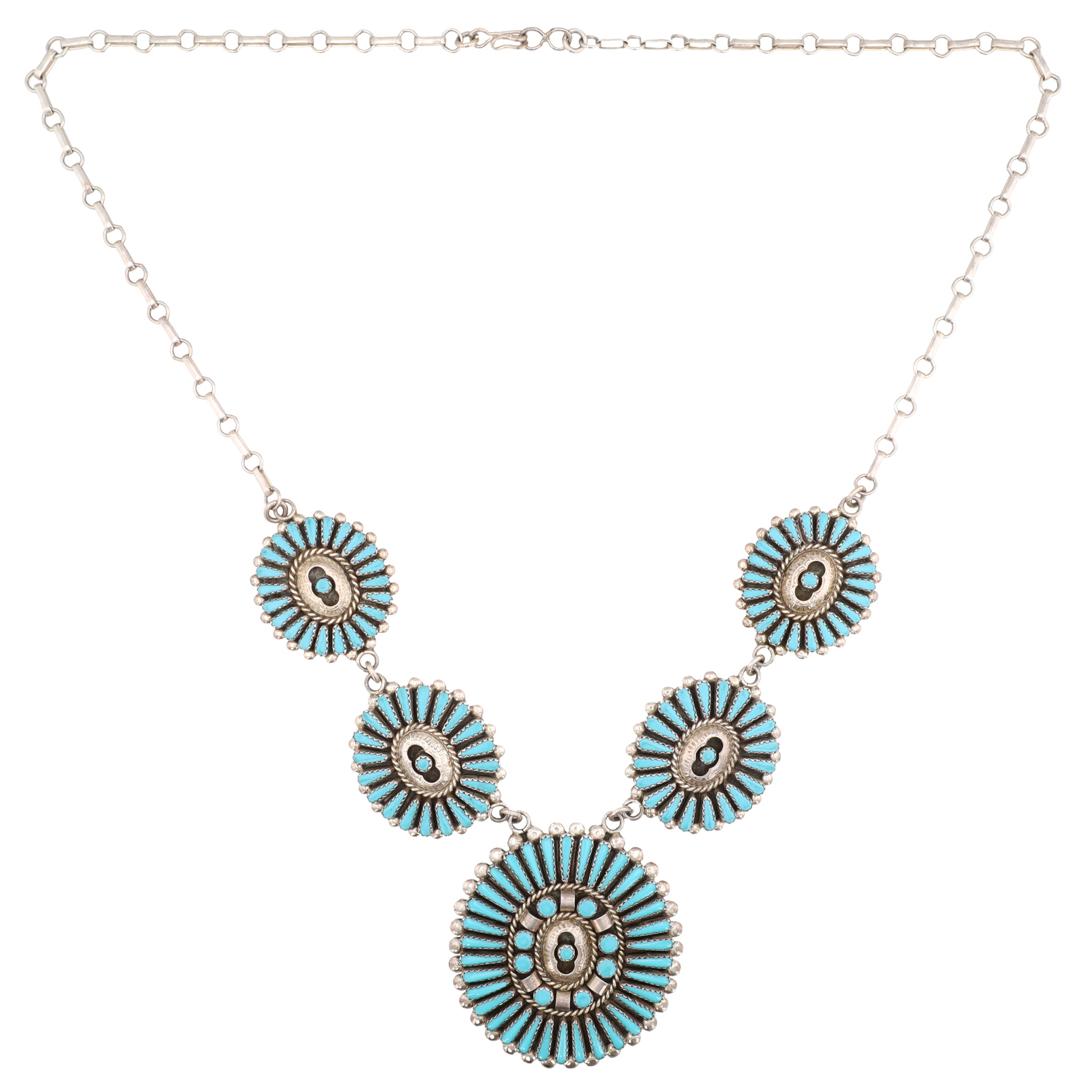 Vintage Zuni Sterling Turquoise Cluster Necklace