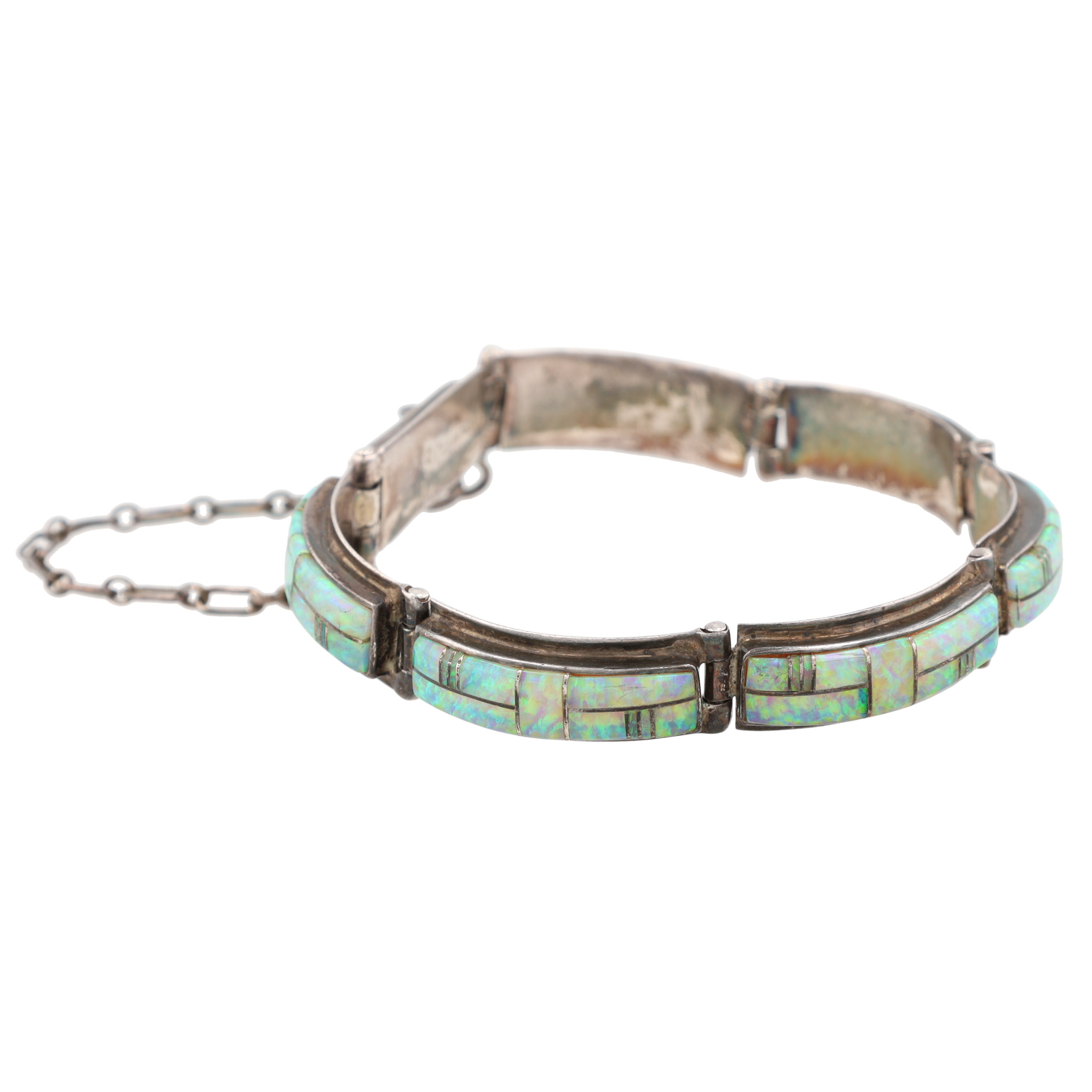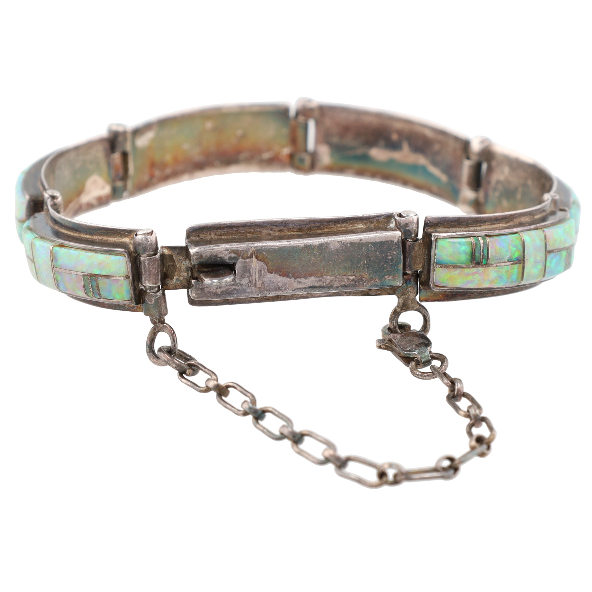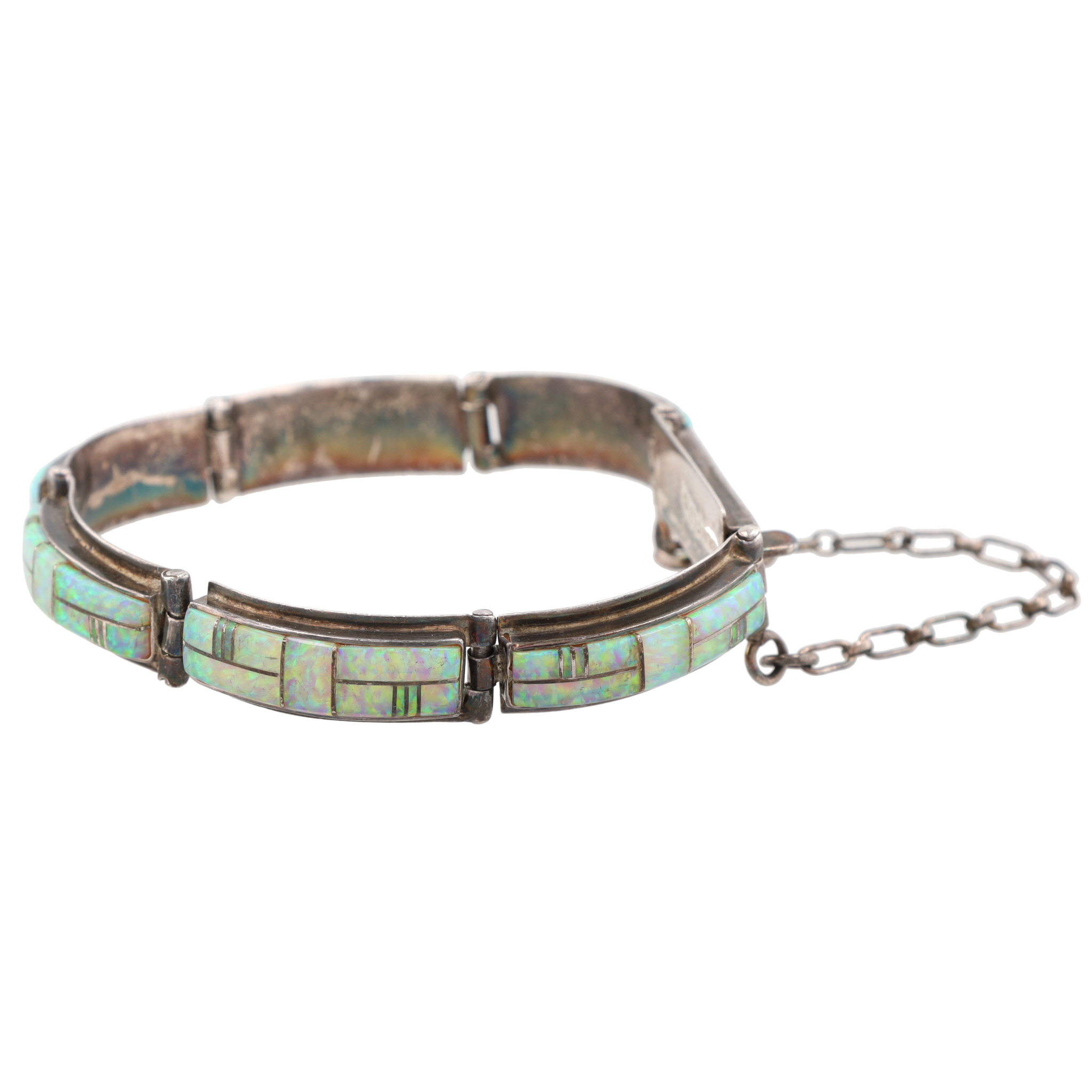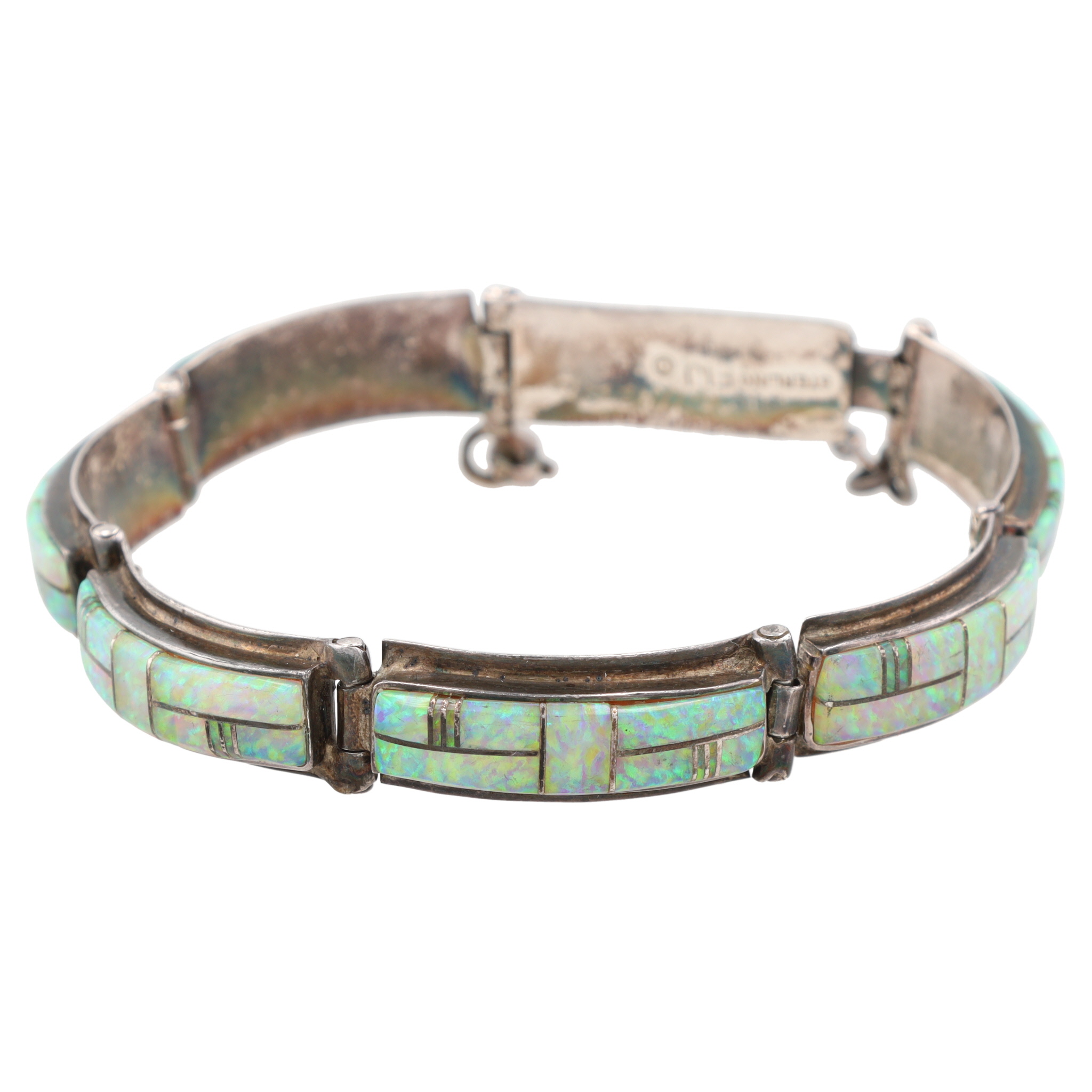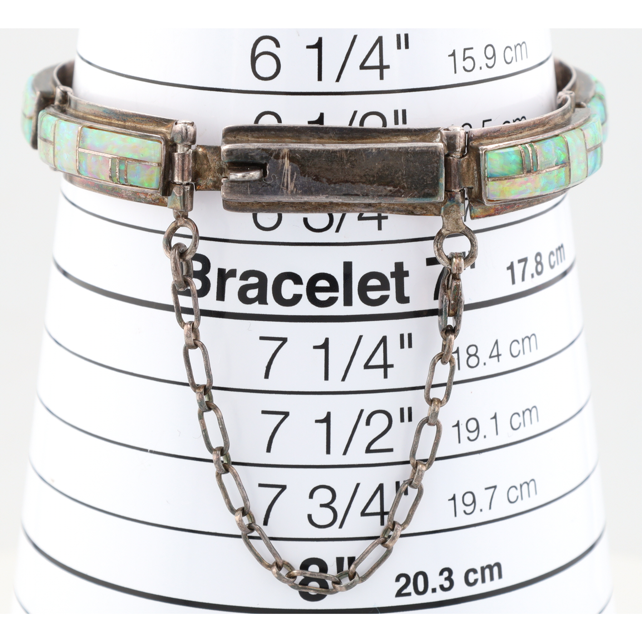 Double Signed Navajo Sterling Opal Inlay Bracelet 23g