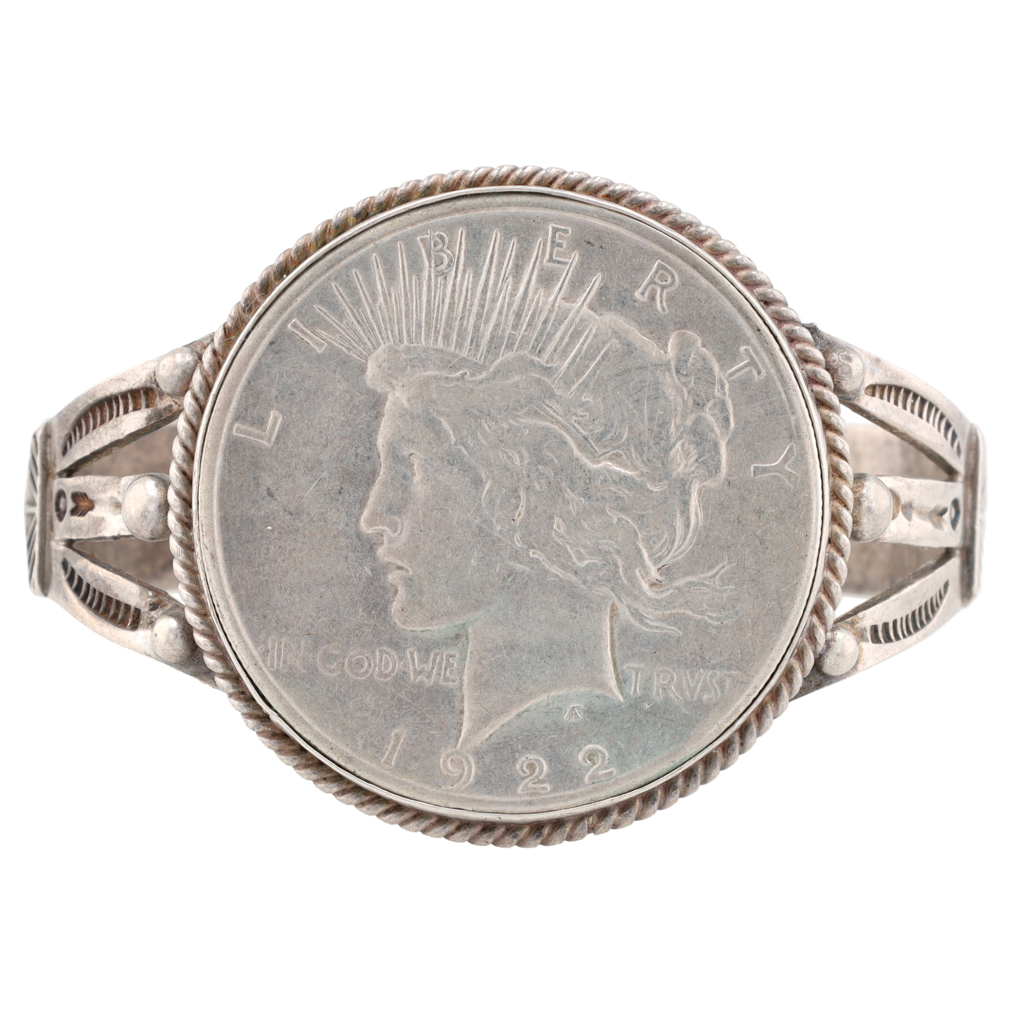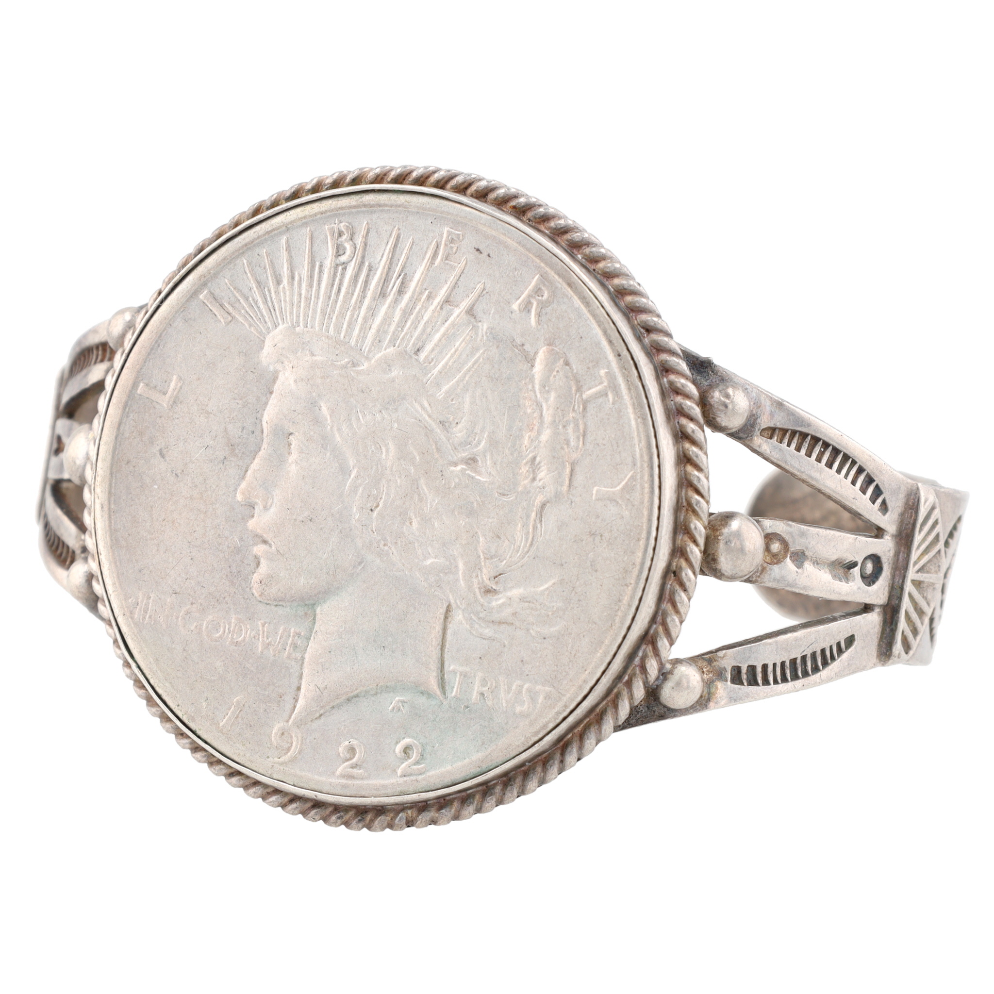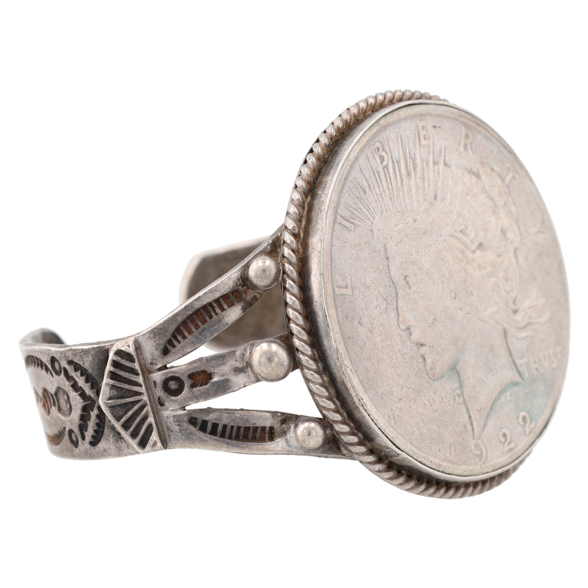 Navajo Sterling Stamped 1922 Liberty Silver Dollar Cuff Bracelet 59g