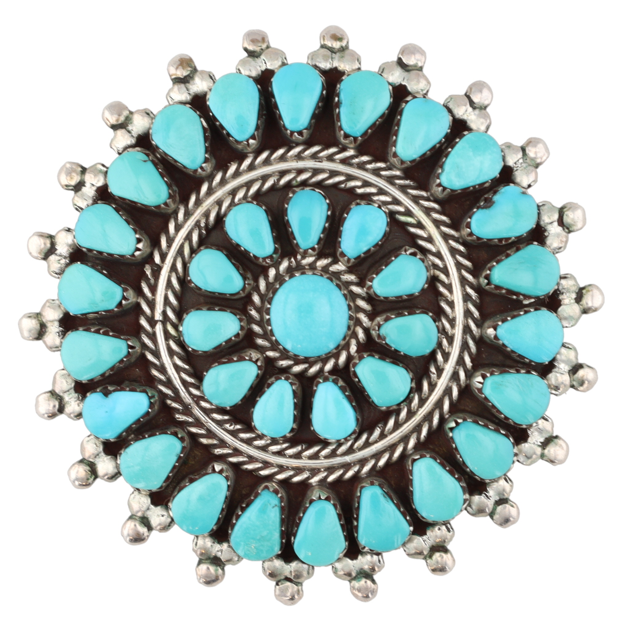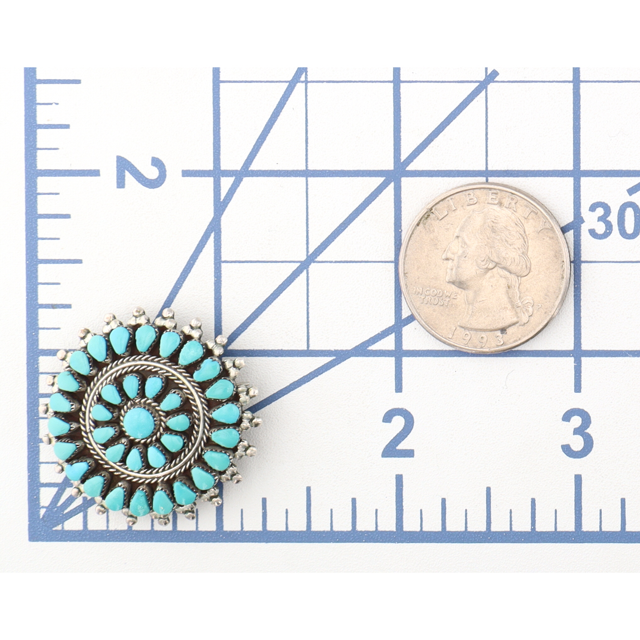 Zuni Sterling Turquoise Cluster Brooch Pendant 6g
