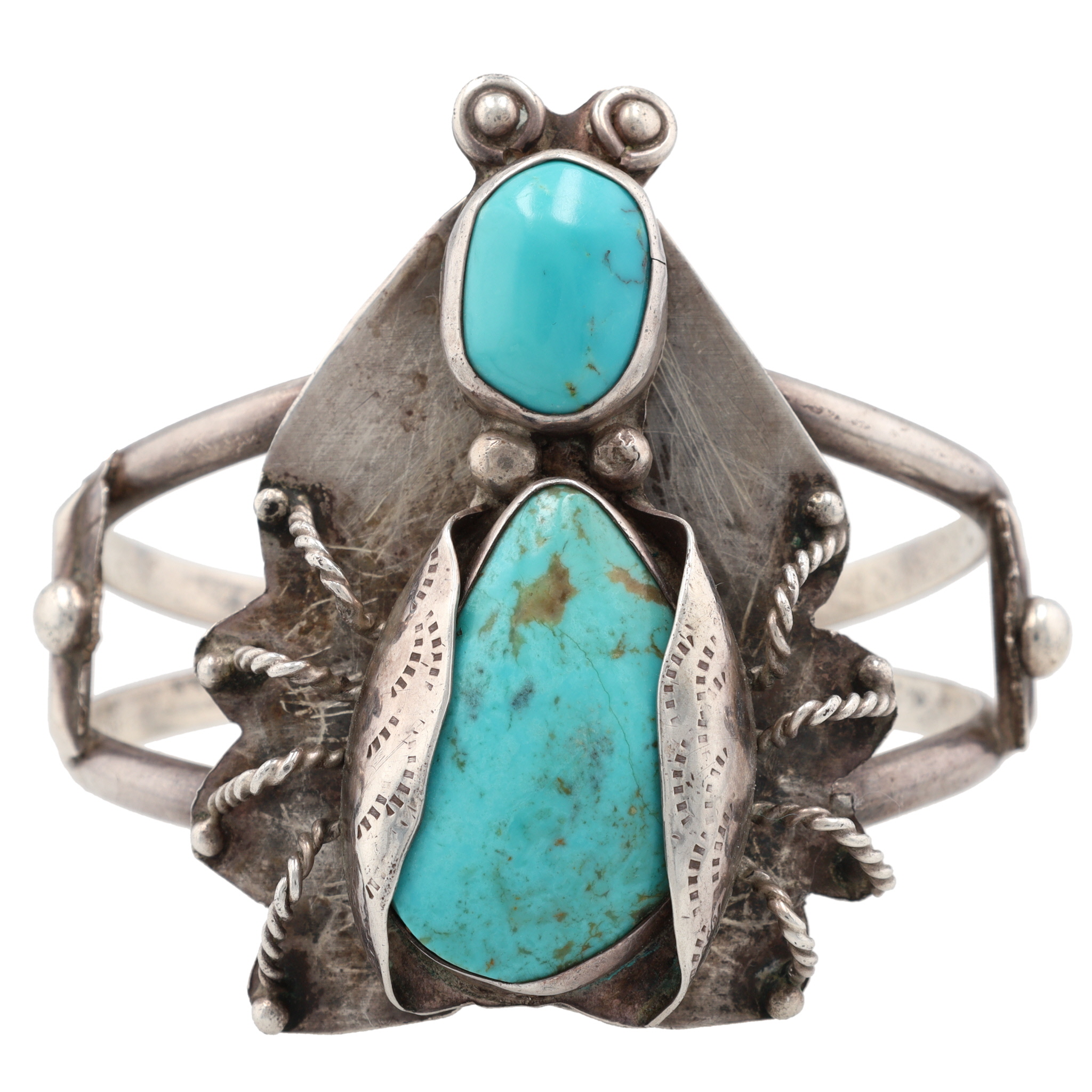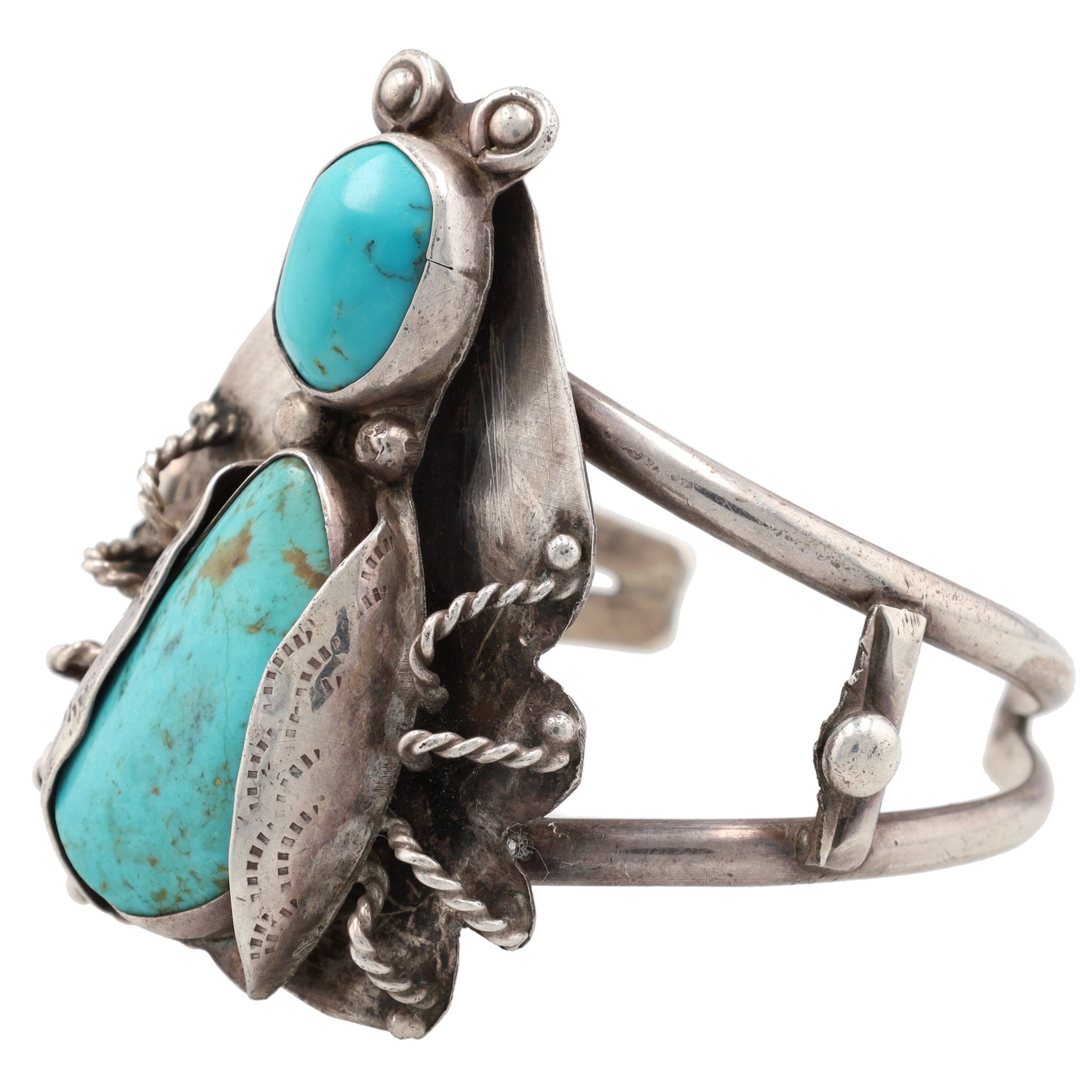 Vintage Navajo Sterling Turquoise Firefly Cuff Bracelet