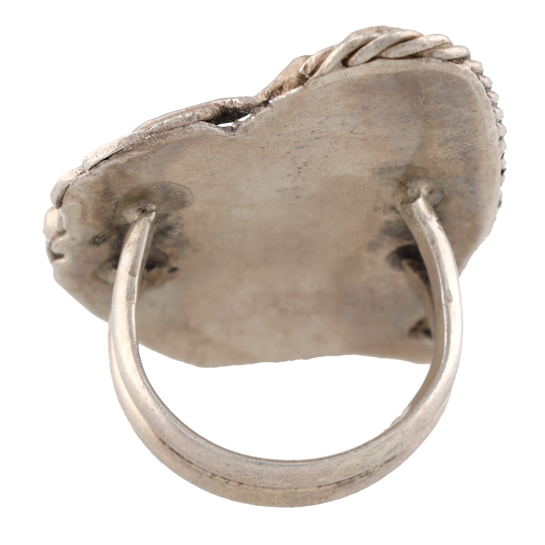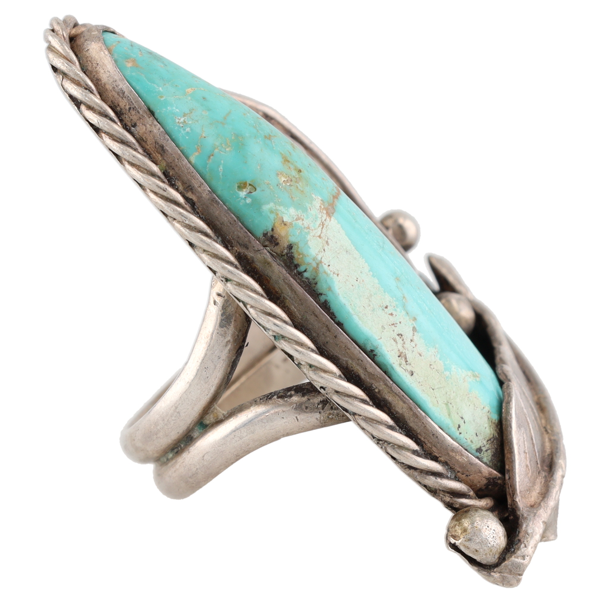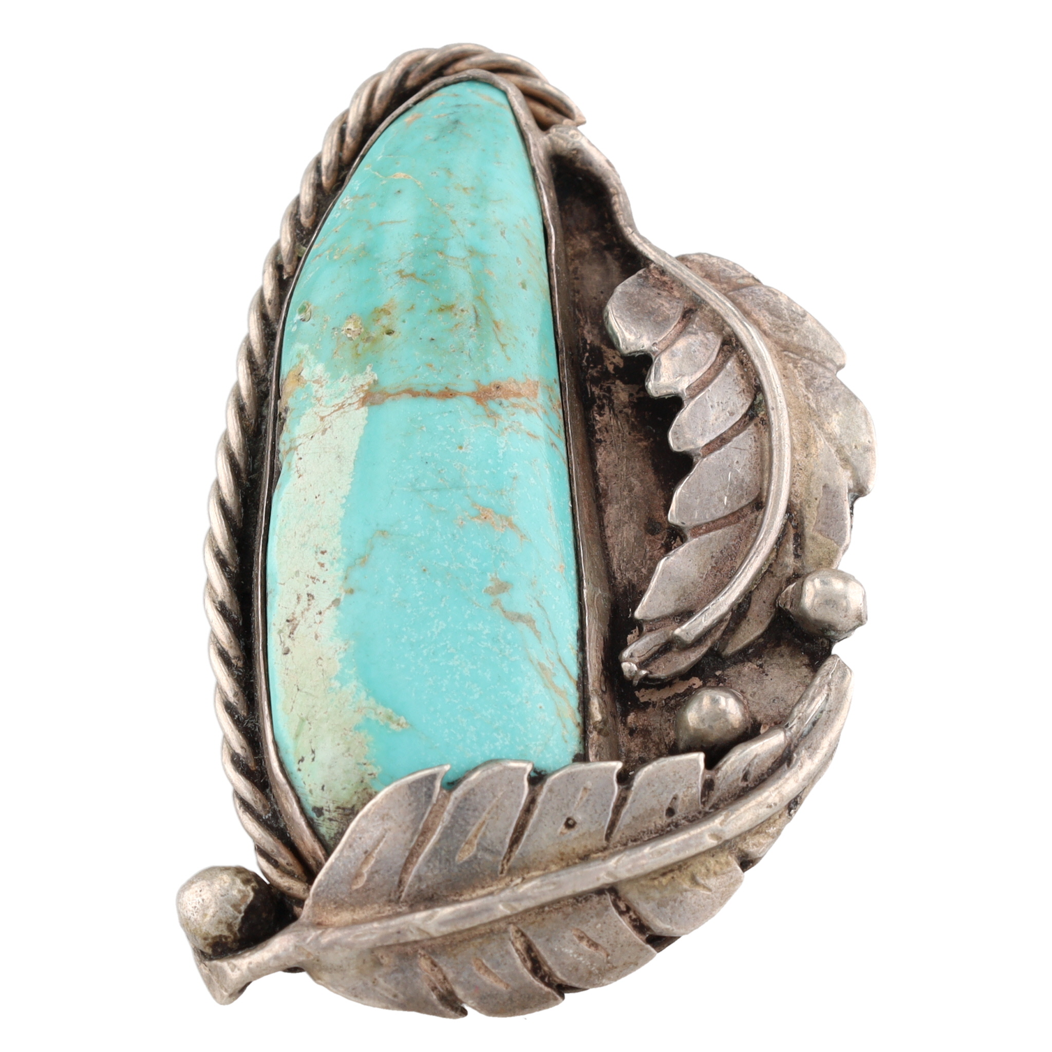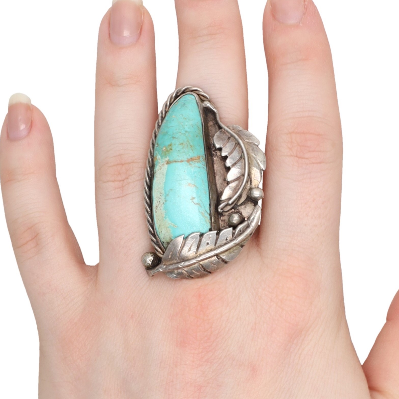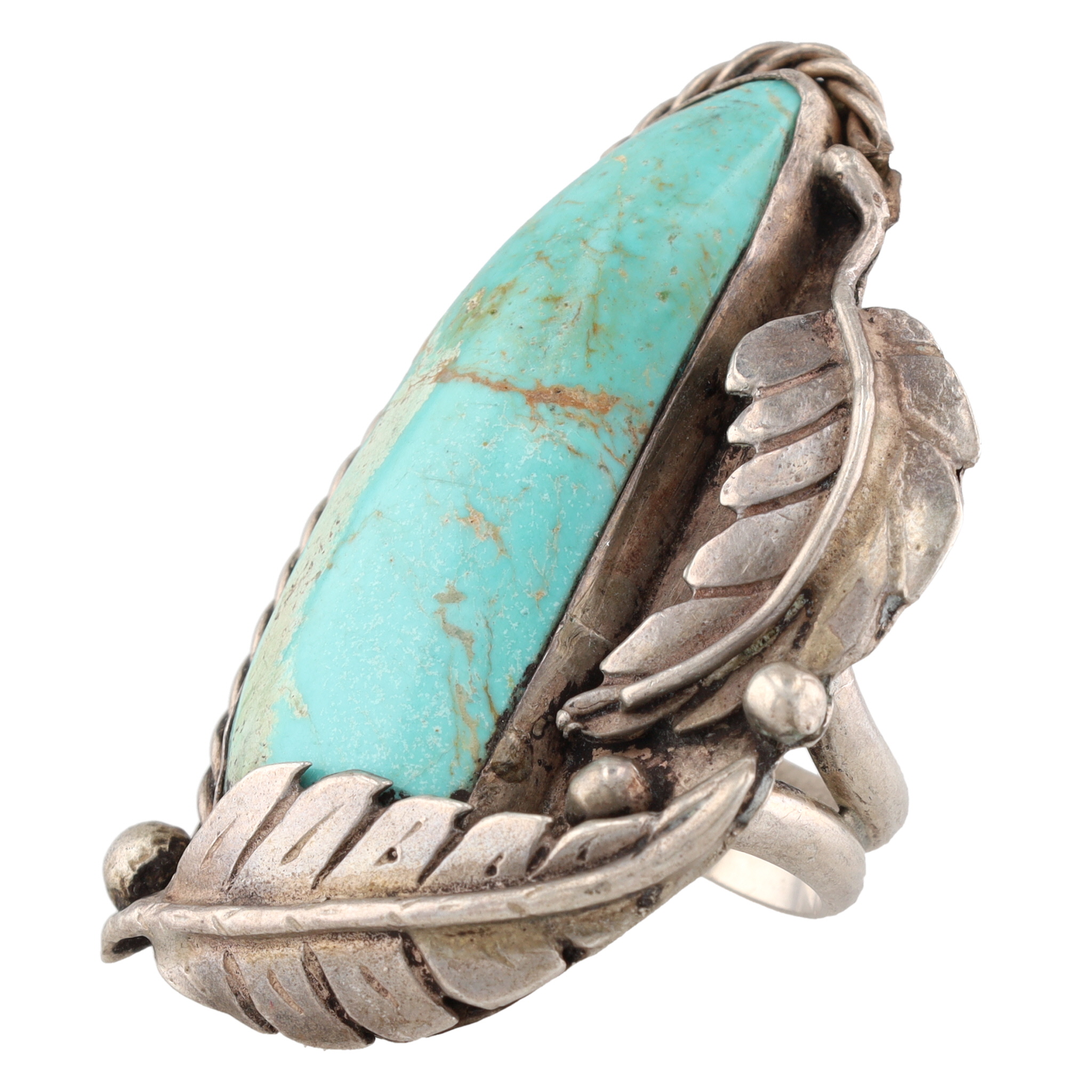 Large Navajo Sterling Turquoise Leaf Ring Sz. 7.25, 20g
