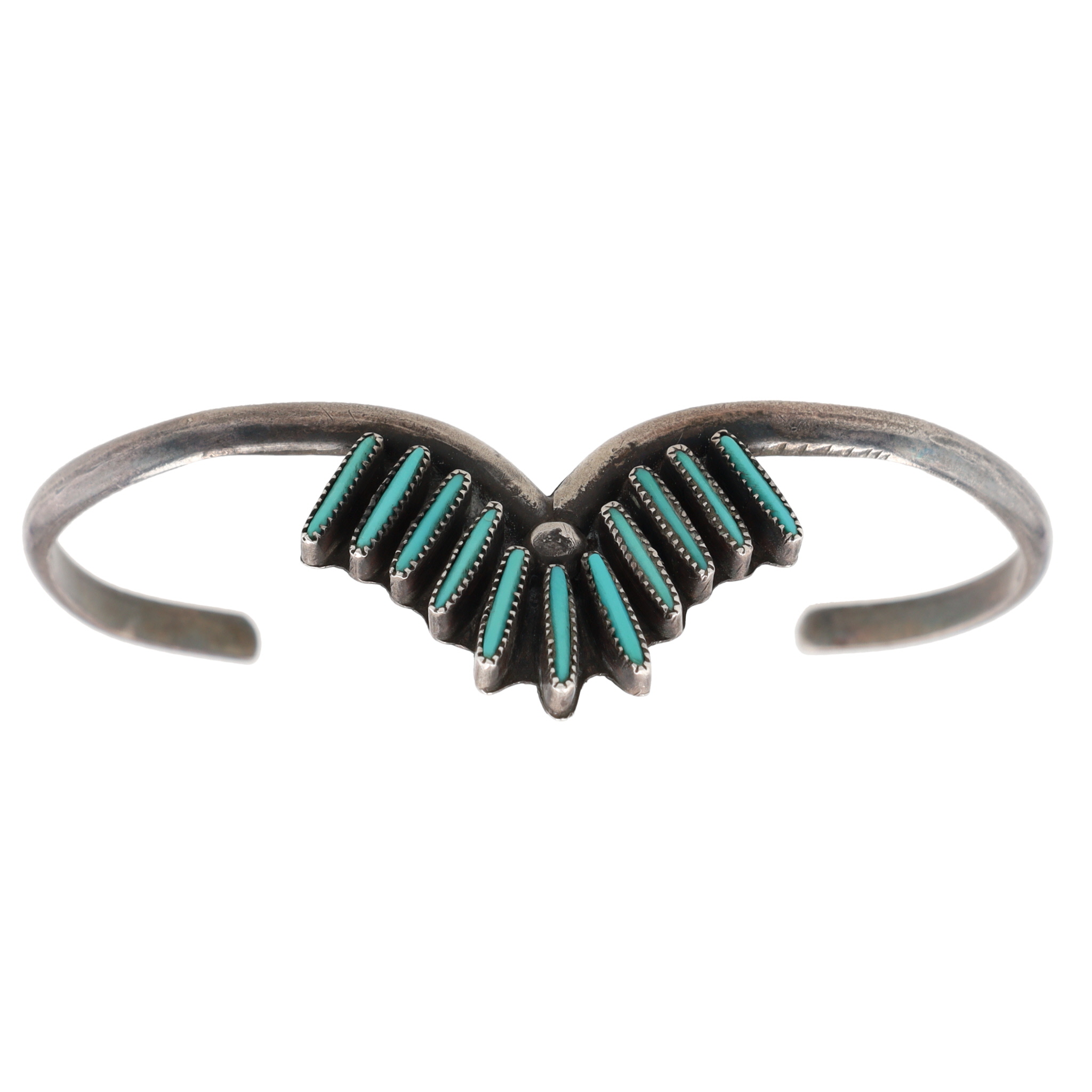 Claudine Penketewa Zuni Sterling Needlepoint Turquoise Cuff Bracelet