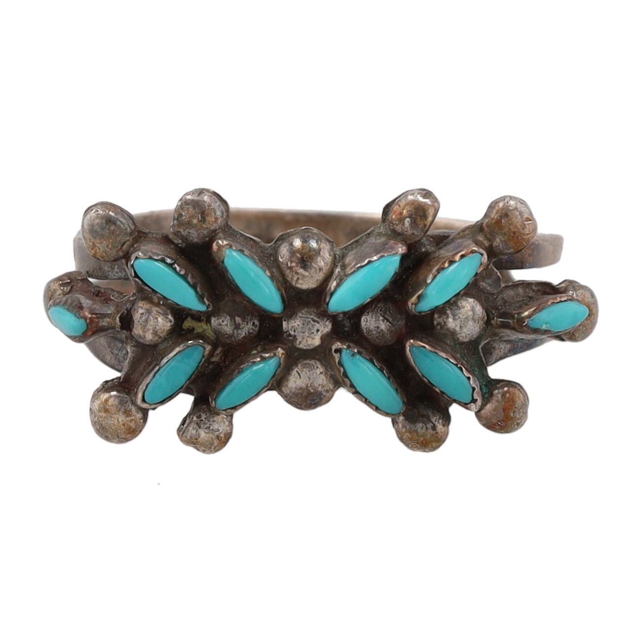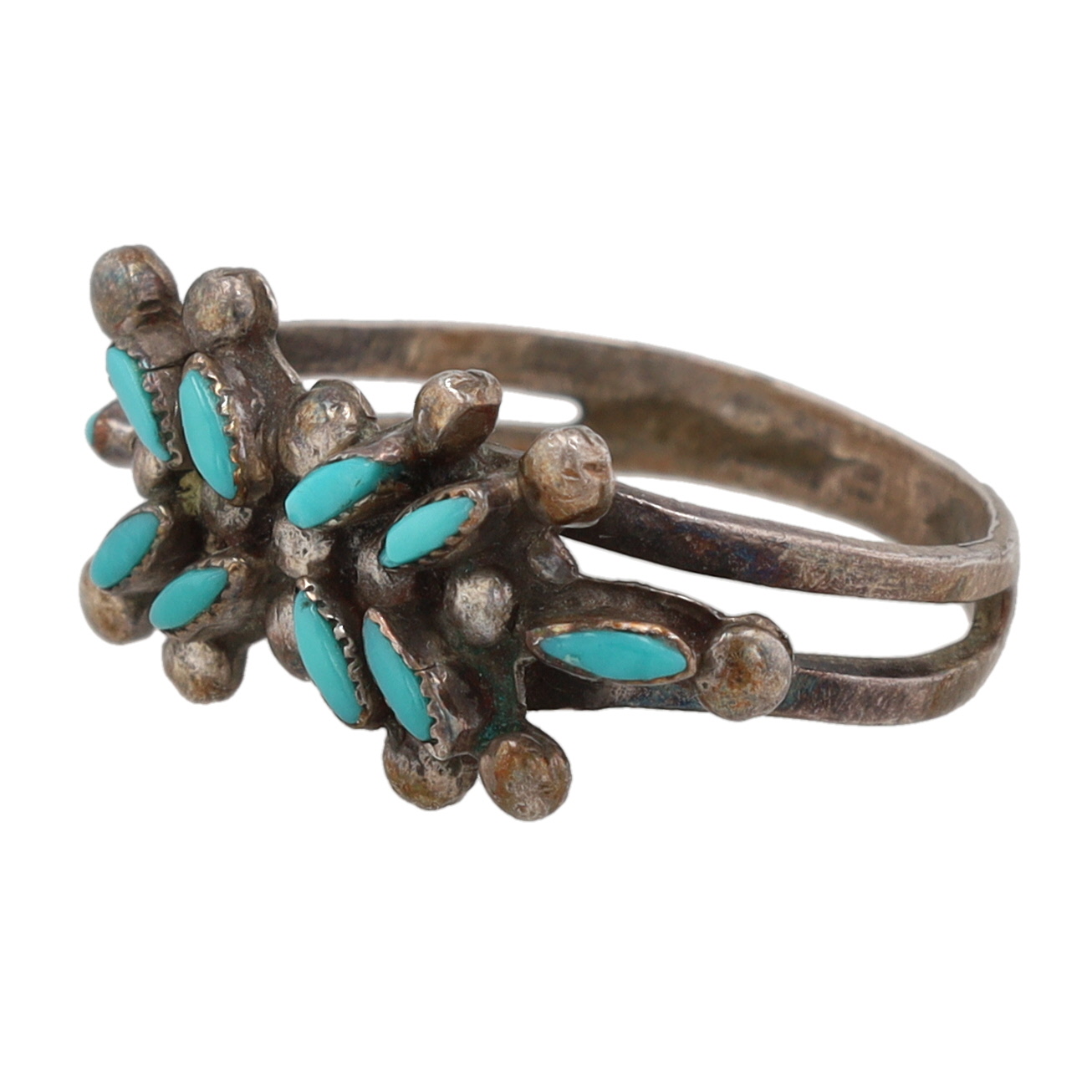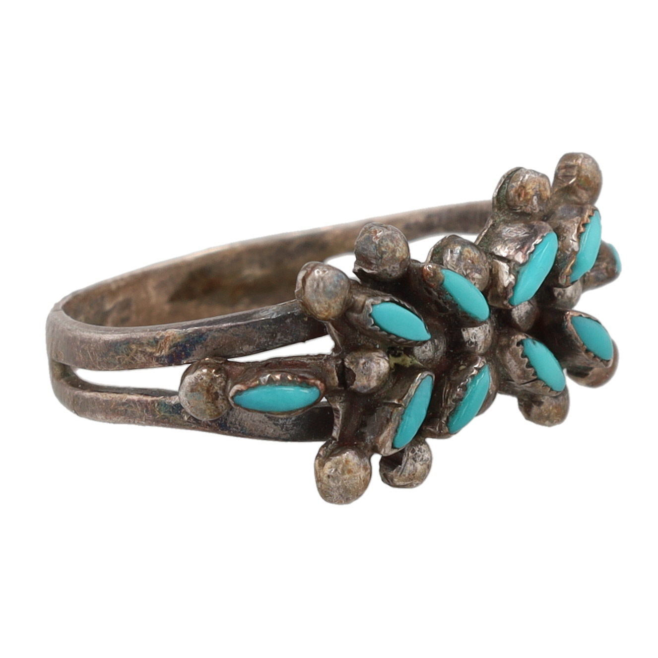 Roosevelt & Bernice Tekala Zuni Sterling Needlepoint Turquoise Ring Sz. 6