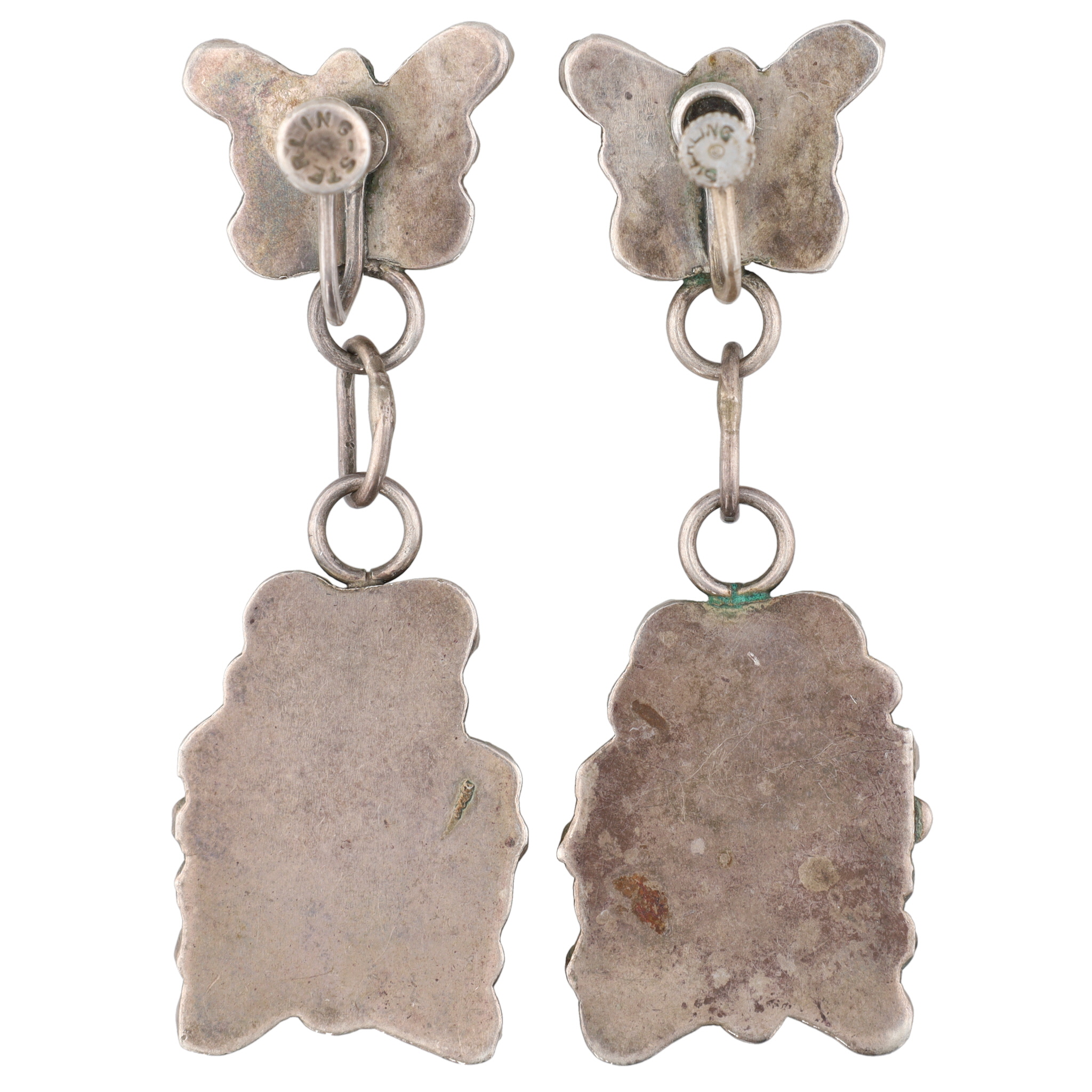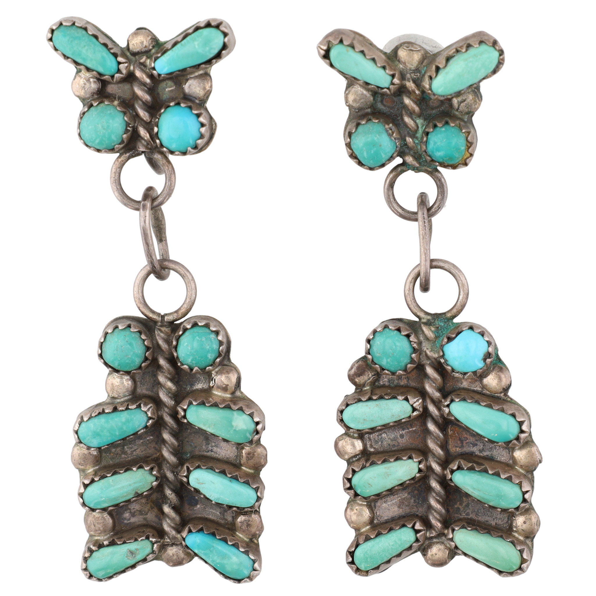 Vintage Zuni Sterling Turquoise Drop Earrings 16g