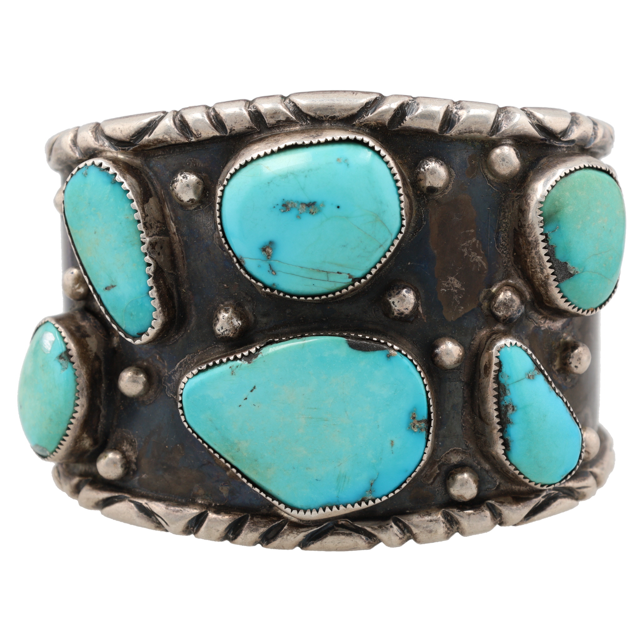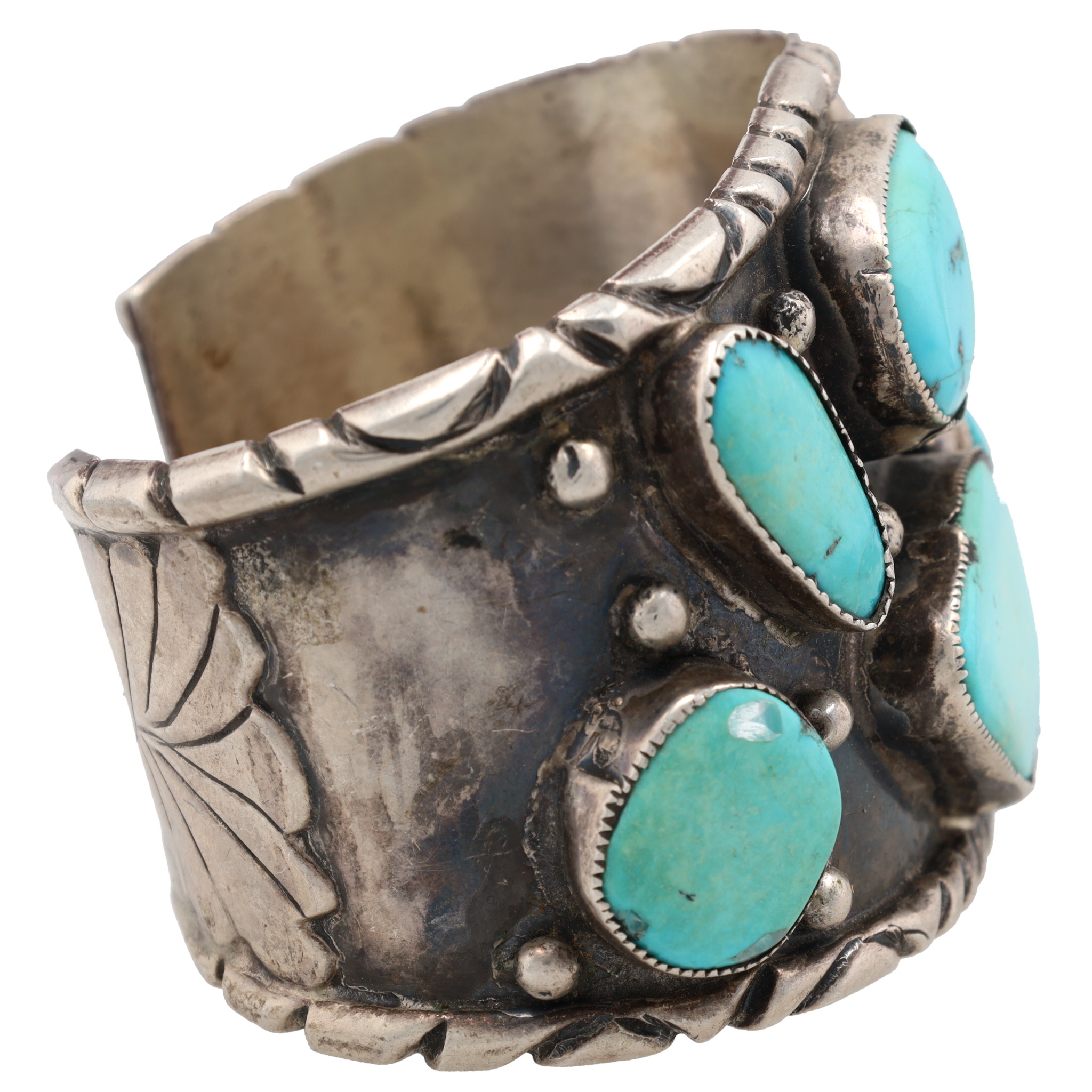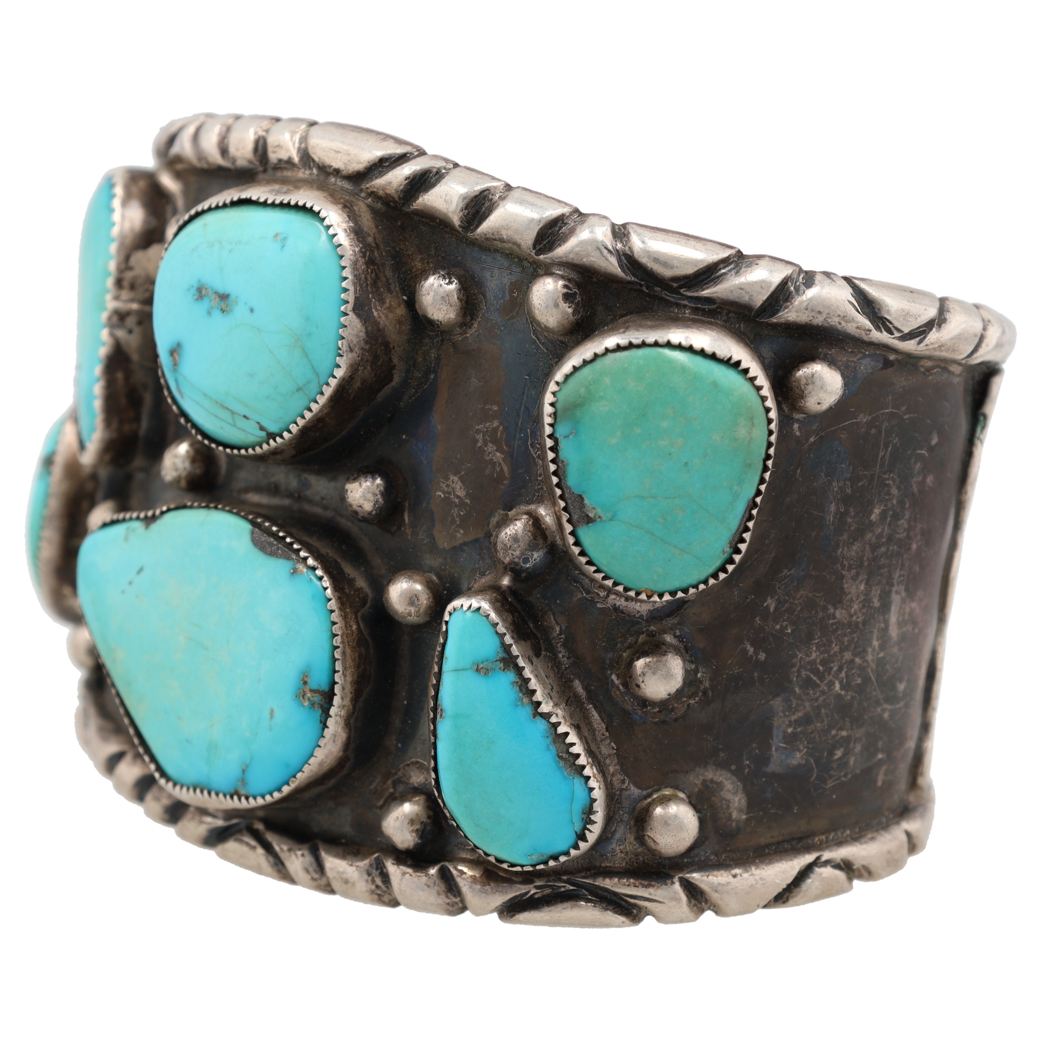 Heavy Vintage Navajo Sterling Turquoise Cuff Bracelet 125.5g