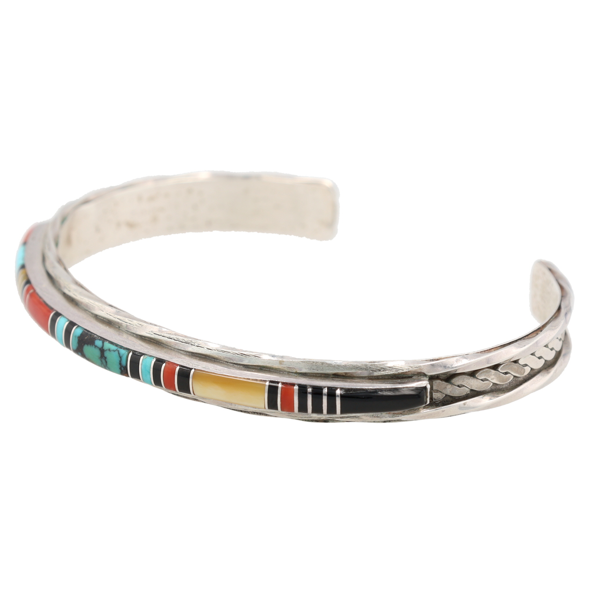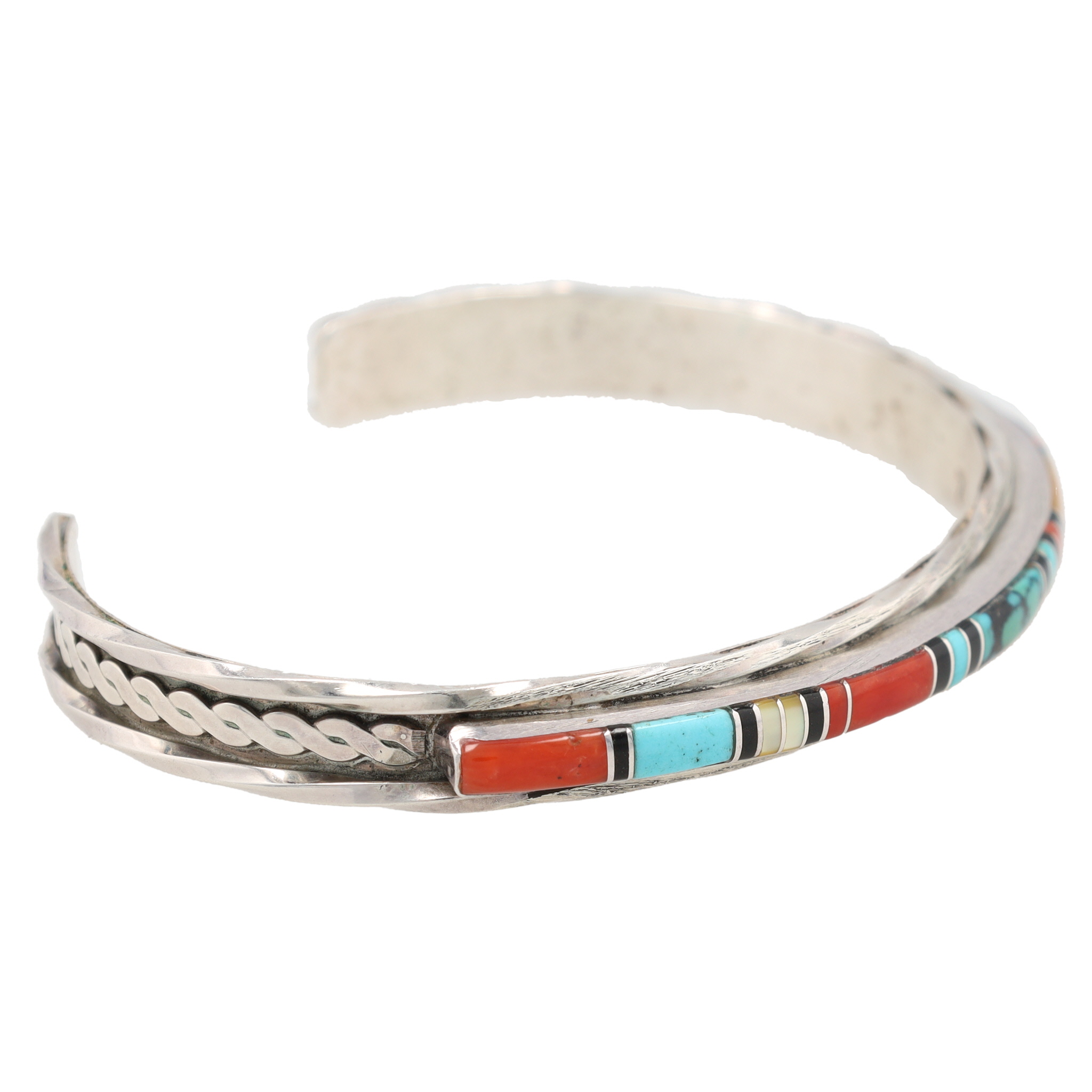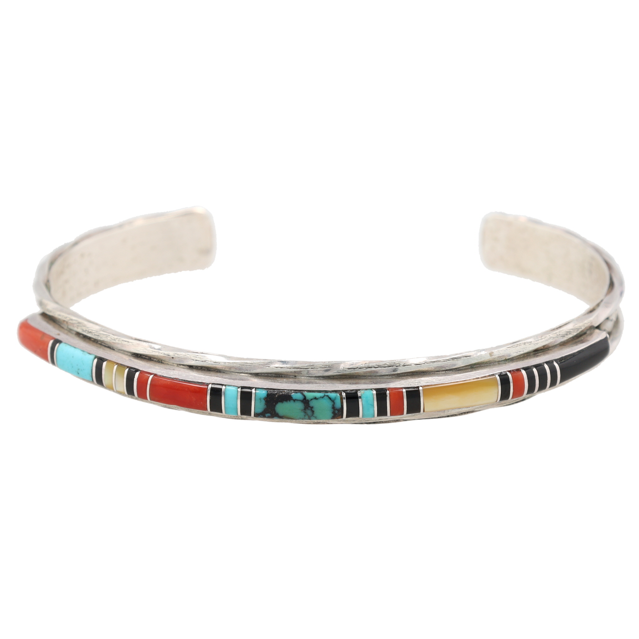 L. Bowannie “Shewe” Zuni Sterling Multi Stone Inlay Cuff Bracelet 11g