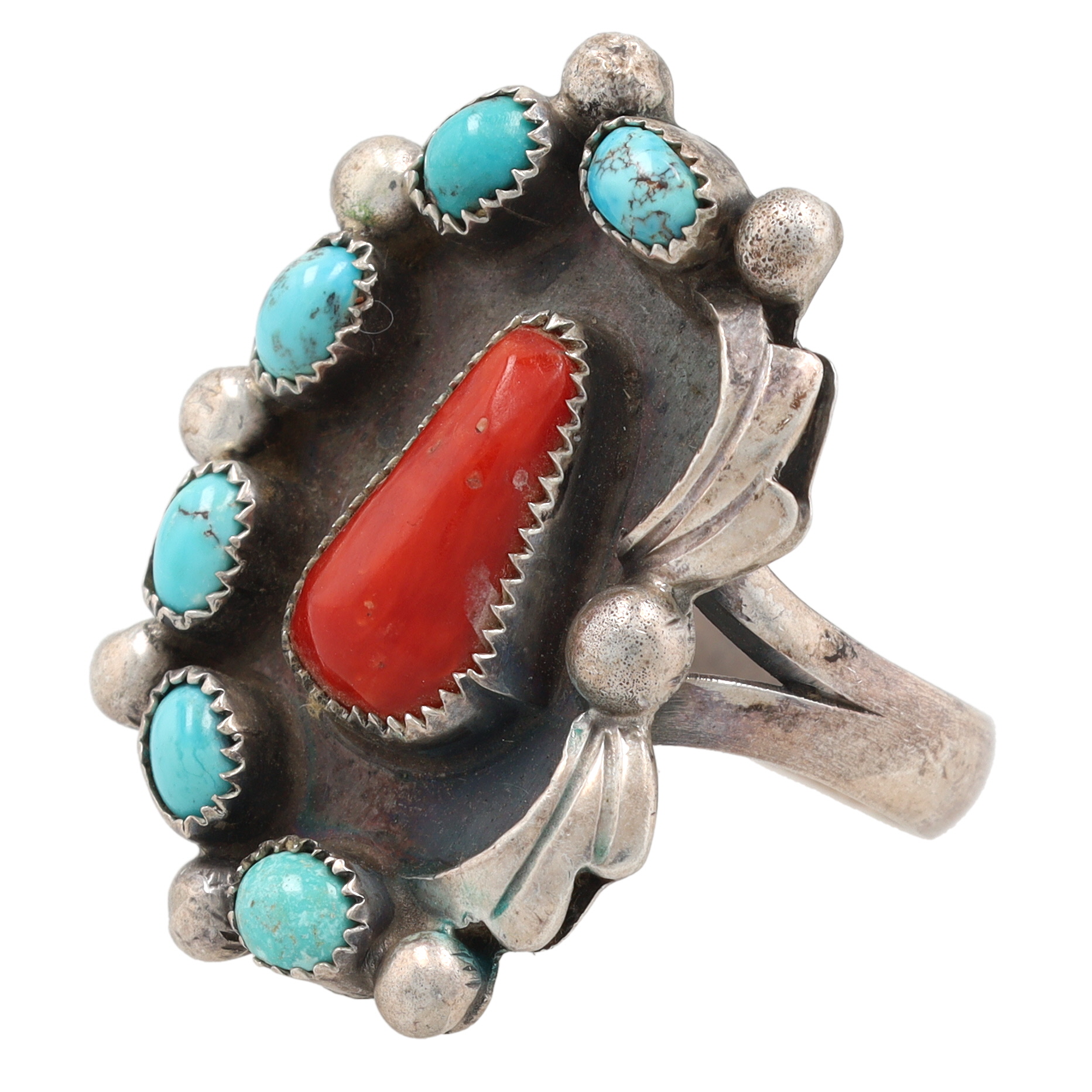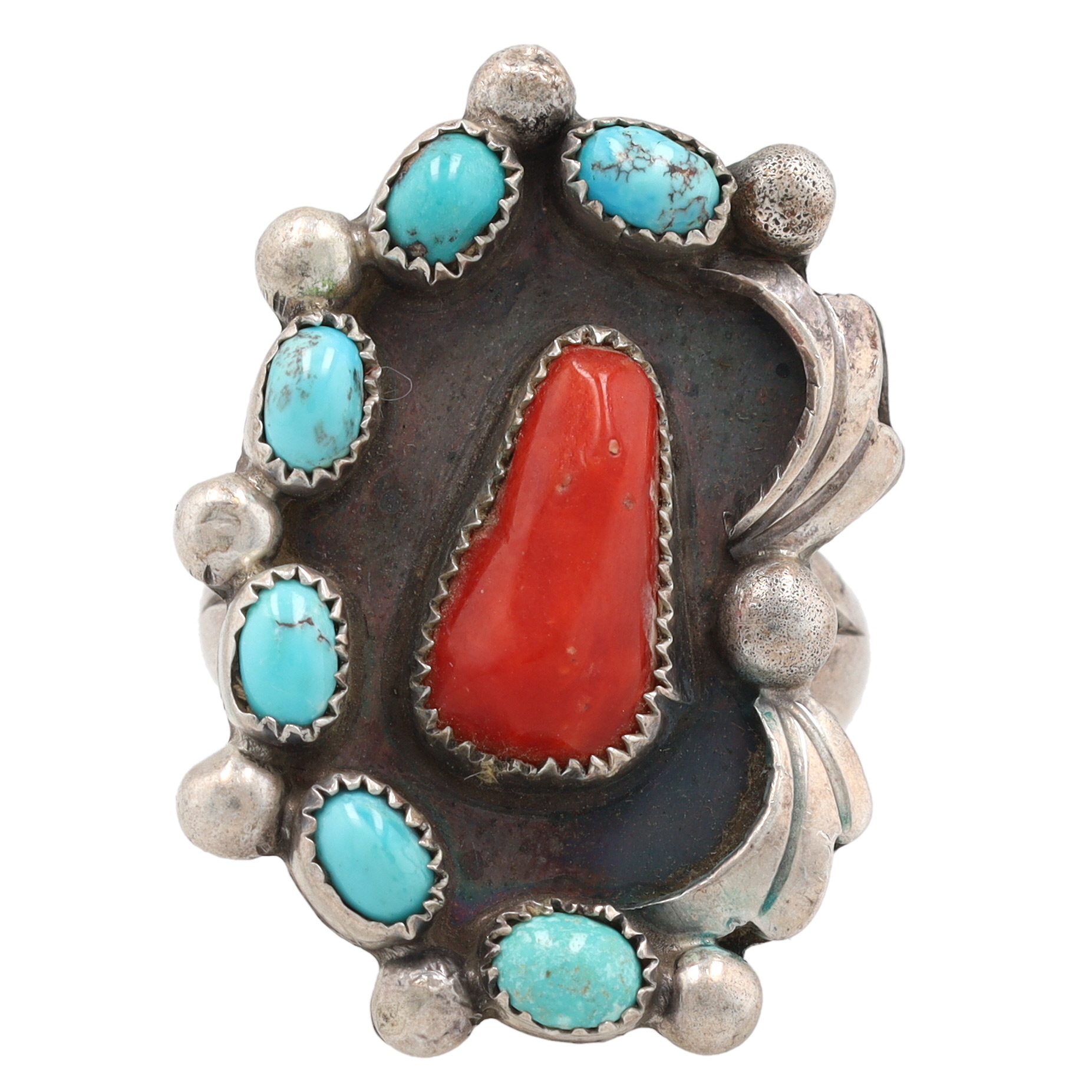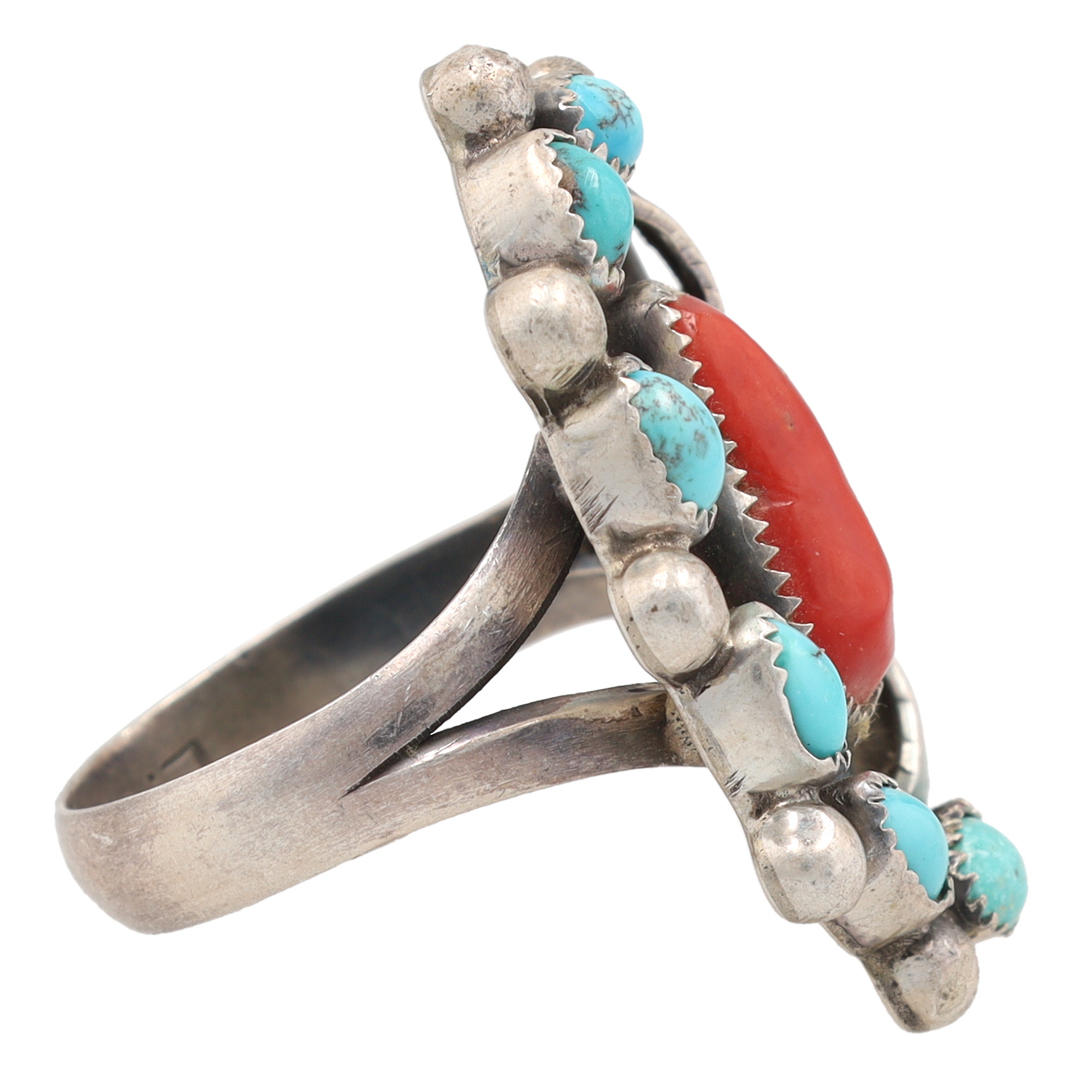 Signed Navajo Sterling Multi Stone Ring Sz. 9, 8g