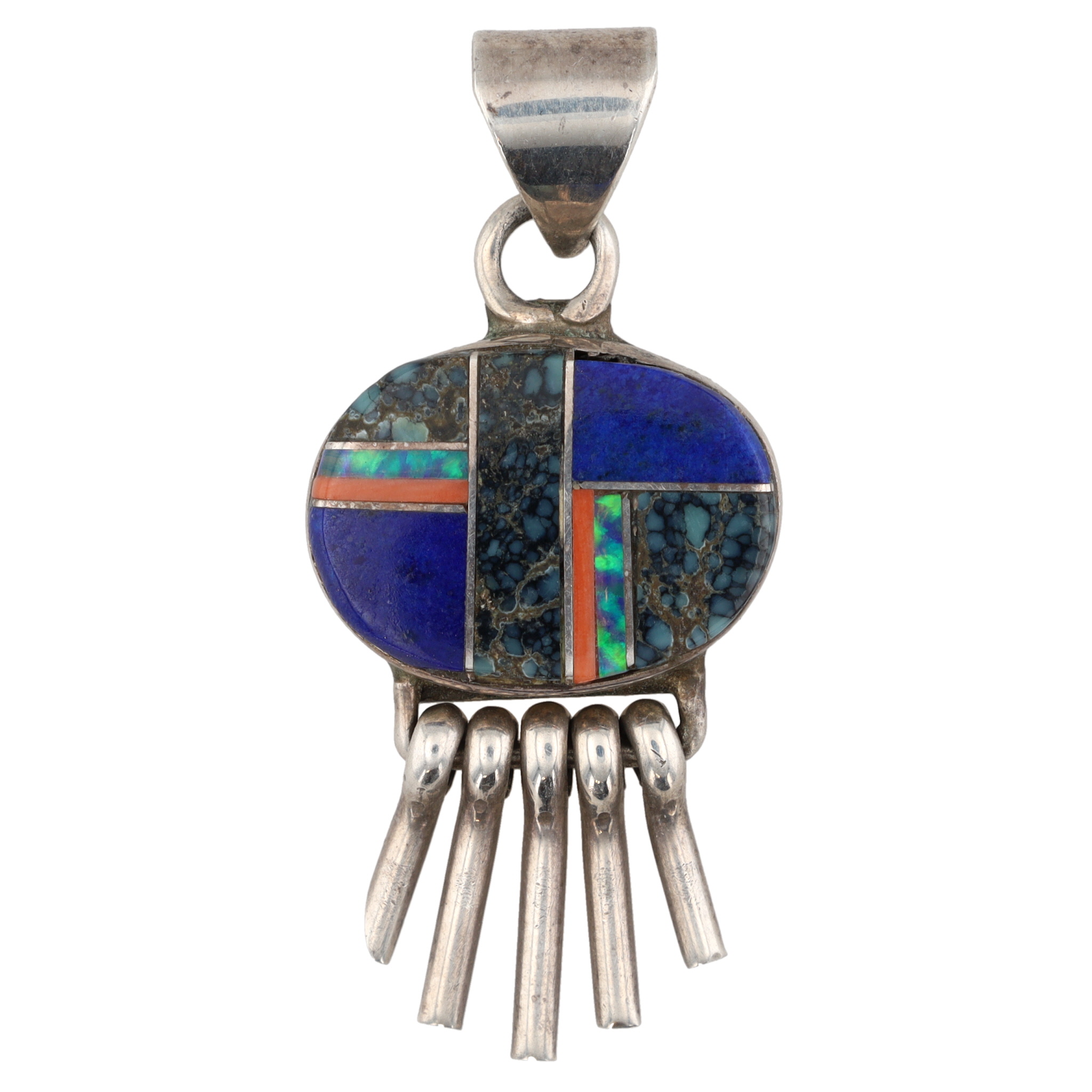 Signed H Navajo Sterling Multi Stone Inlay Pendant 4g