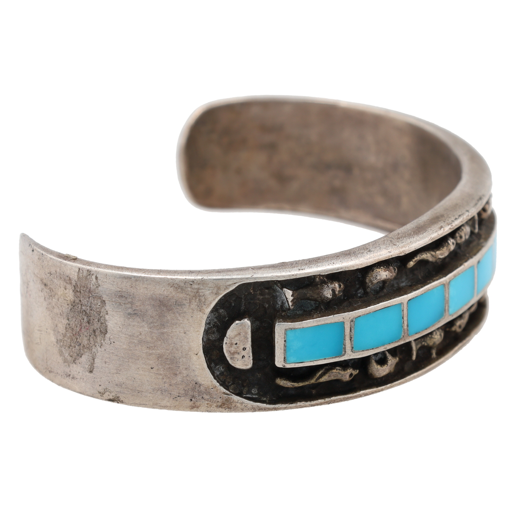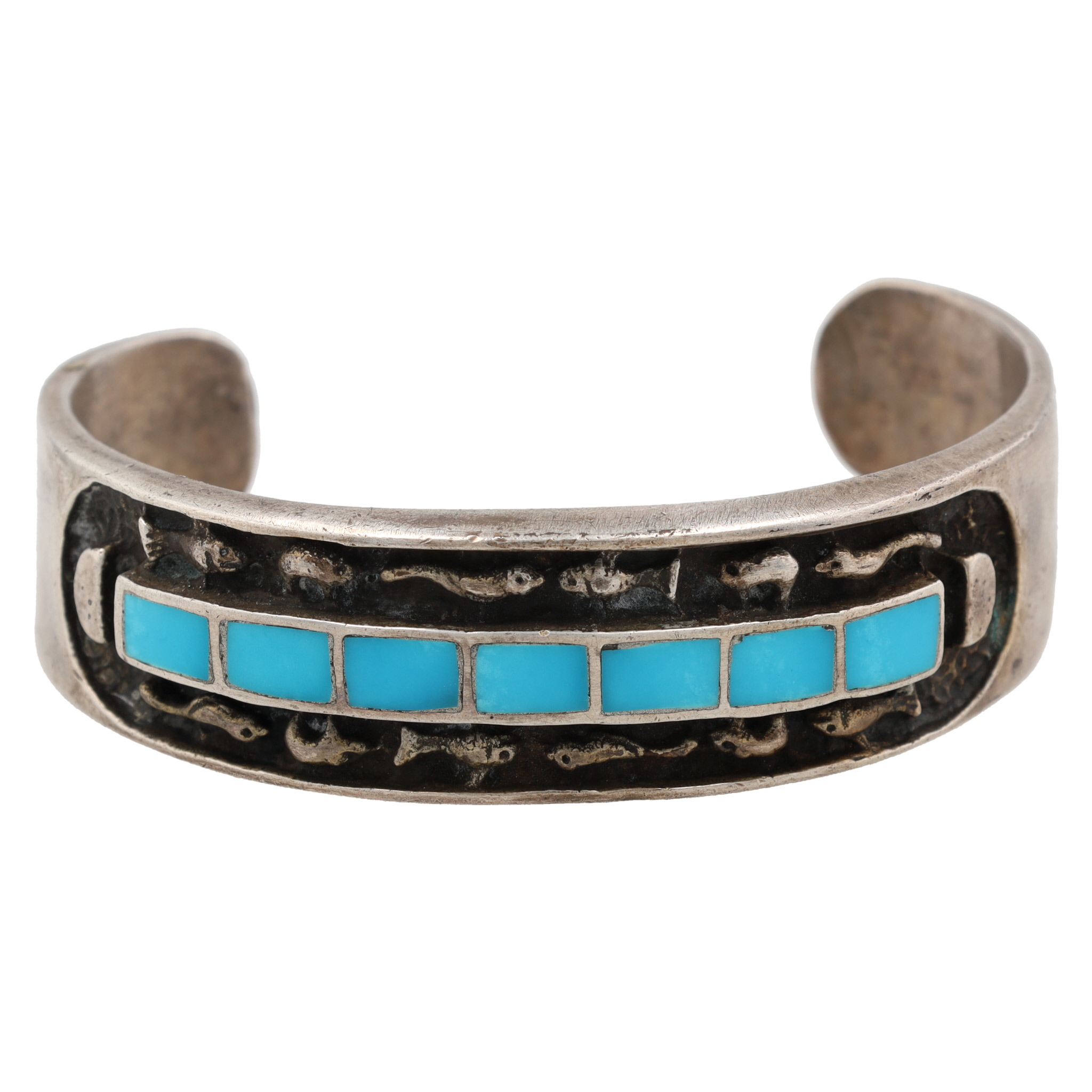 Vintage Navajo Sterling Turquoise Animal Cuff Bracelet 38.5g