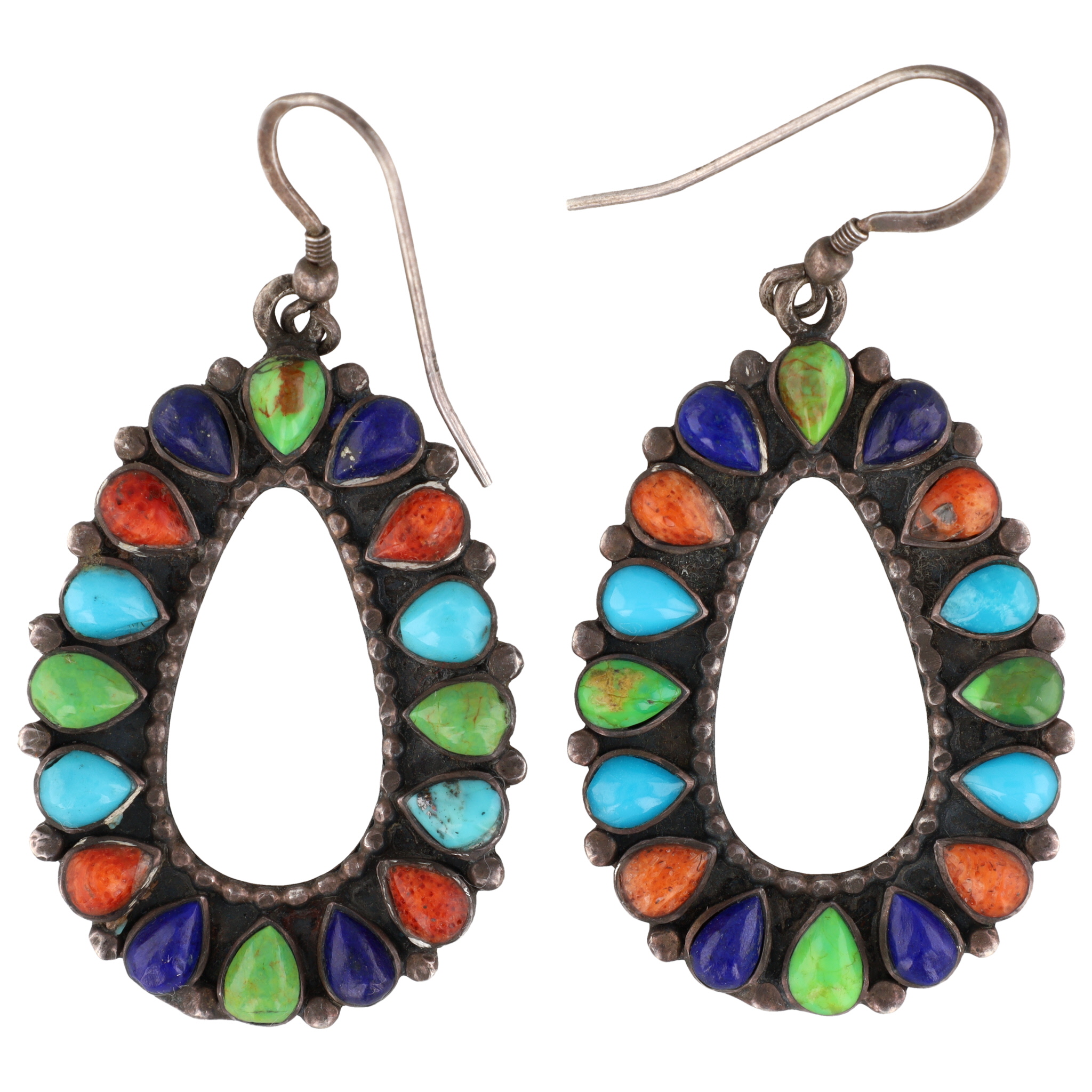 Navajo Sterling Multi Stone Drop Earrings 13g
