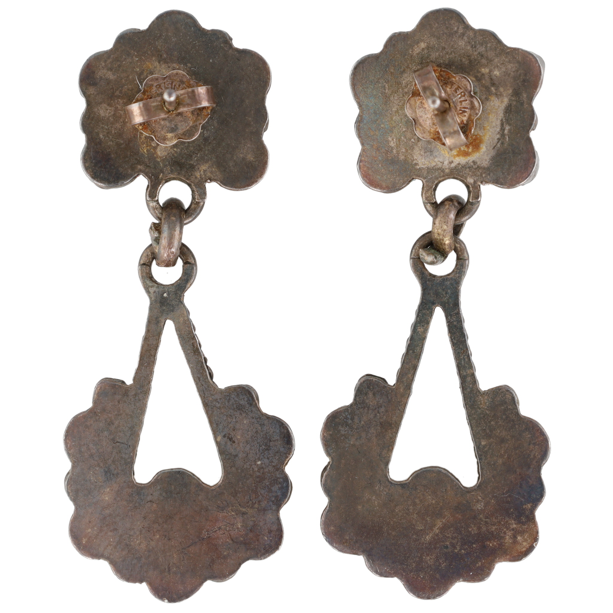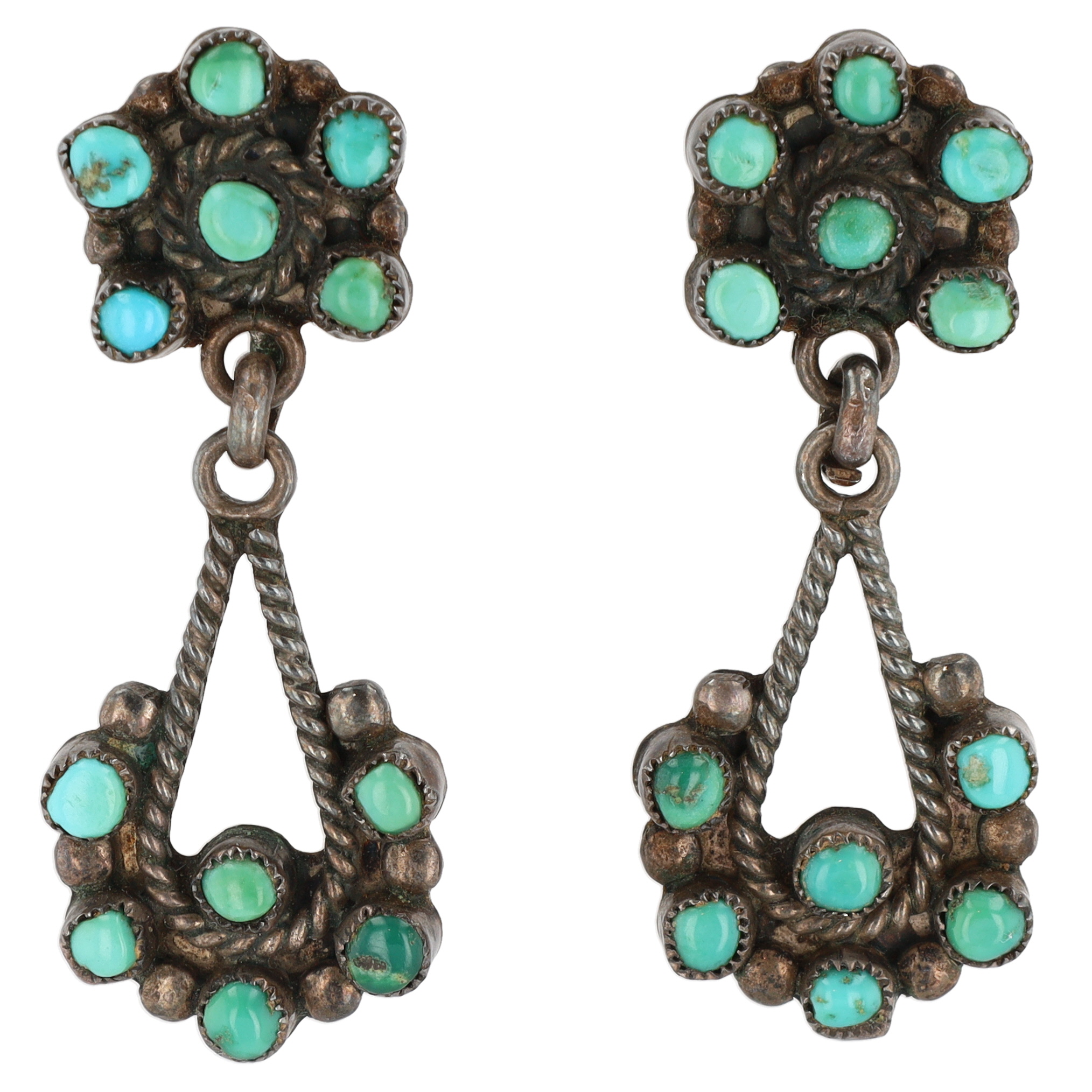 Vintage Zuni Sterling Snake Eye Turquoise Cluster Drop Earrings 9.5g