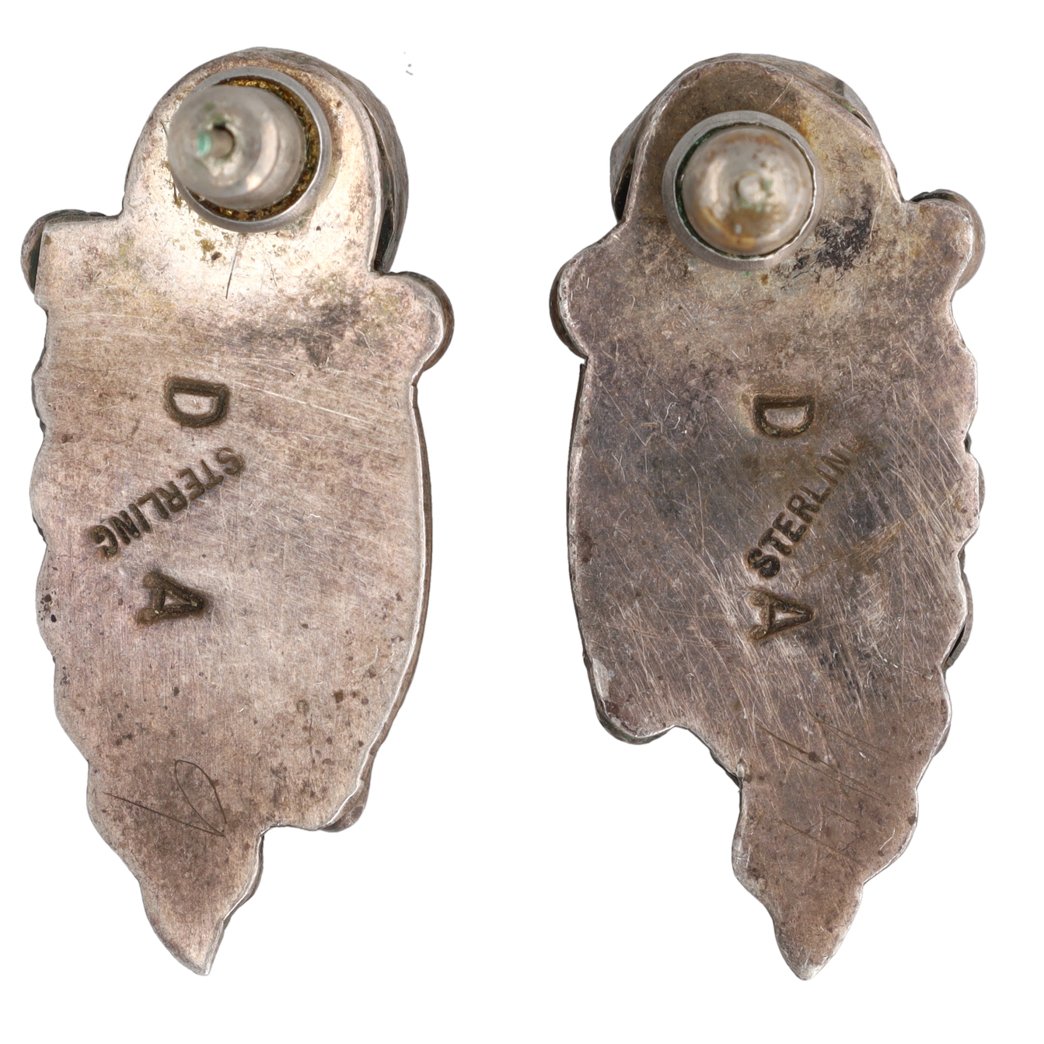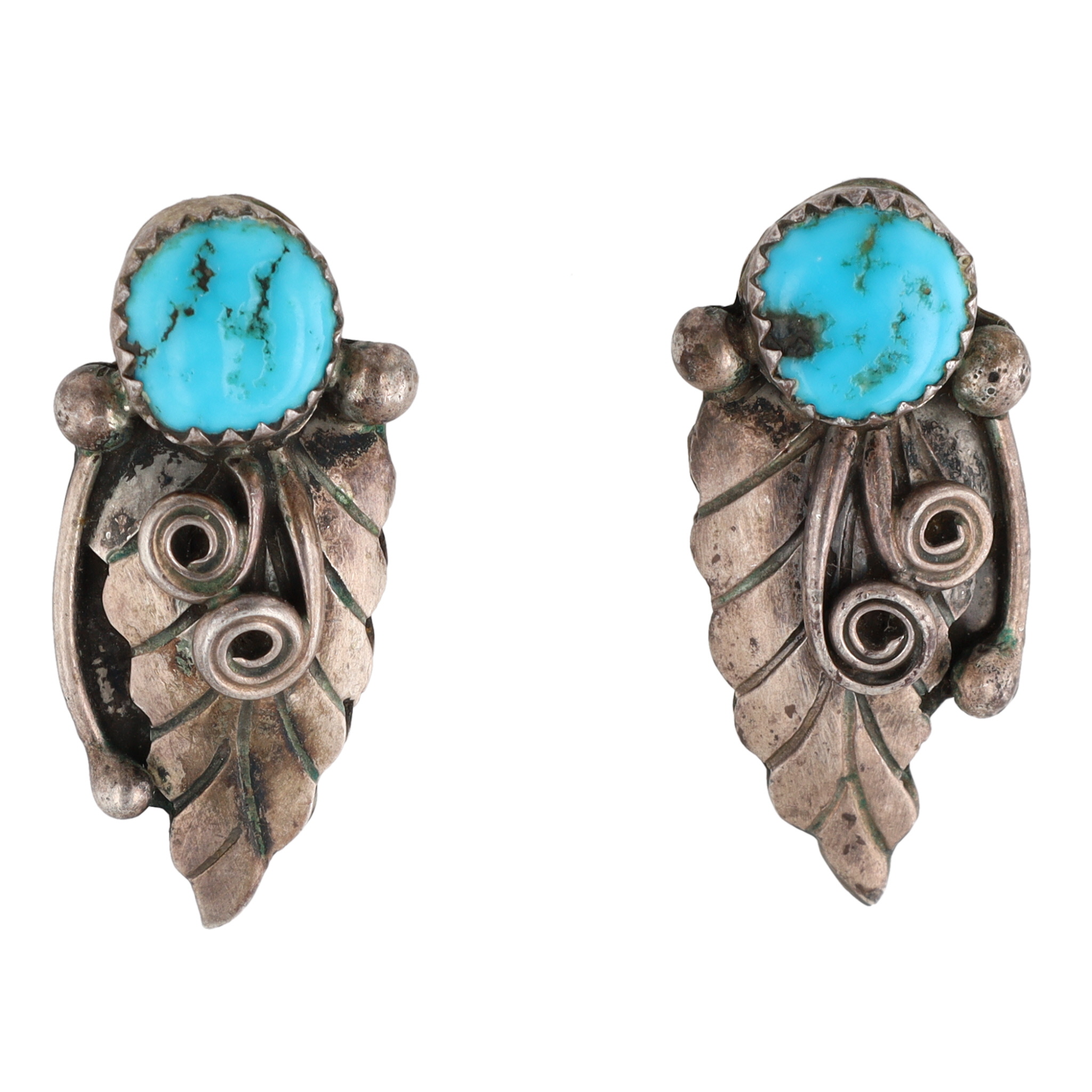 Signed DA Navajo Sterling Turquoise Leaf Stud Earrings 8.5g