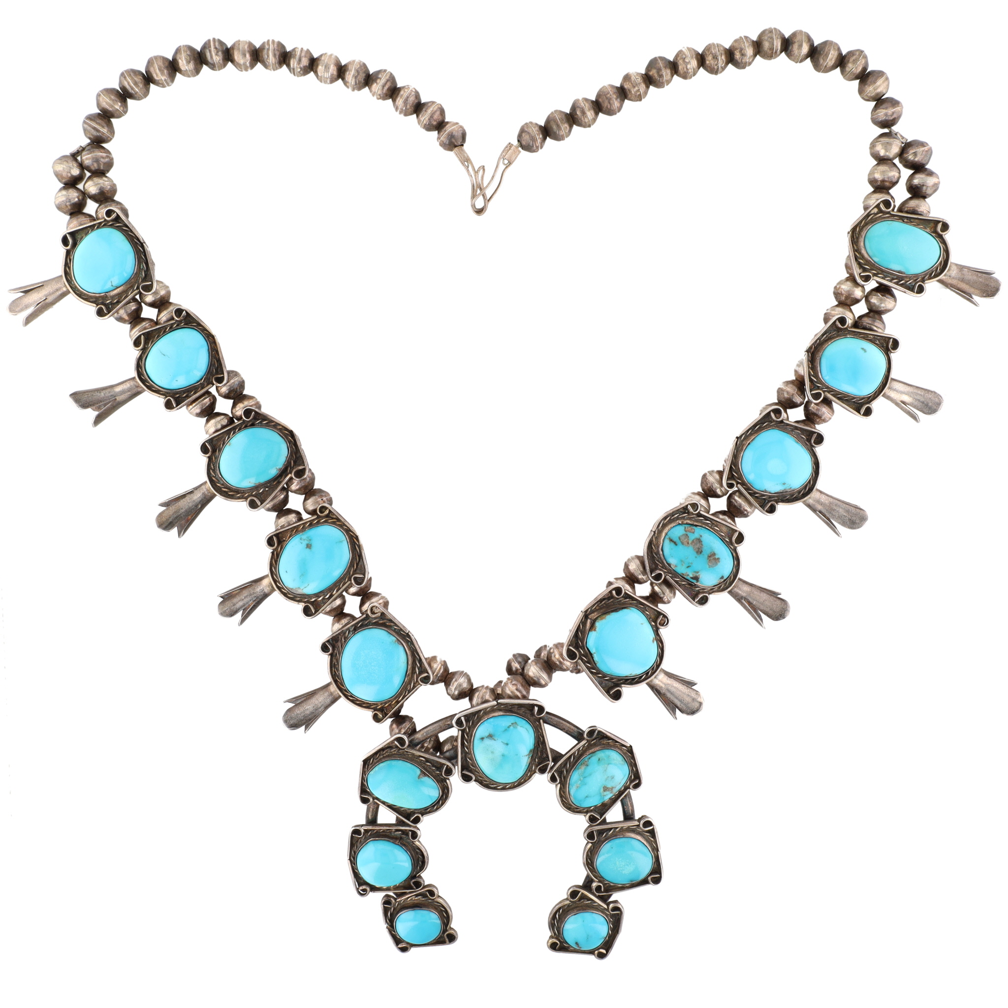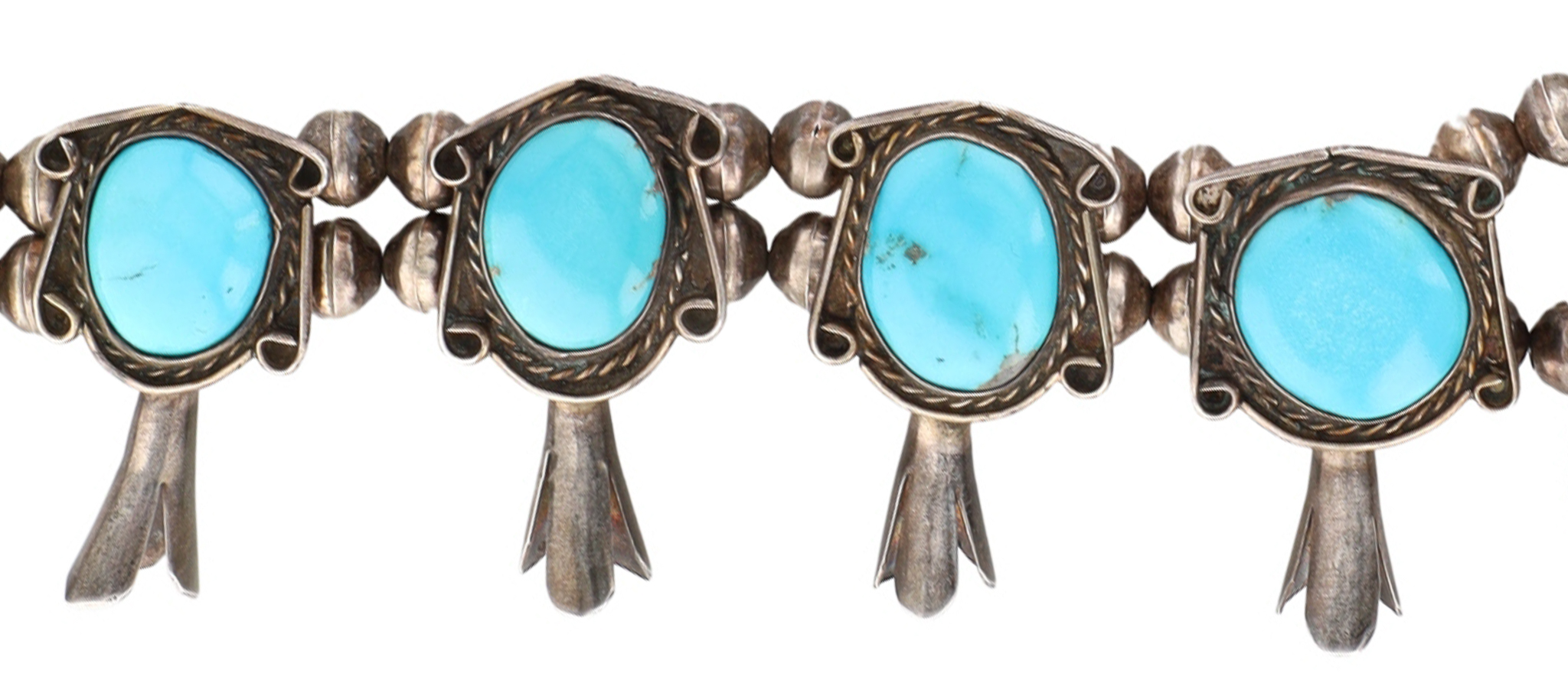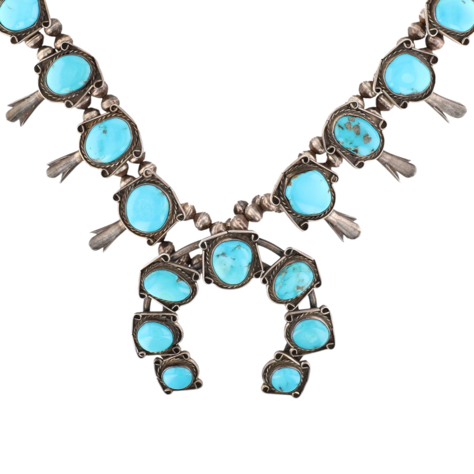 Vintage Navajo Sterling Morenci Turquoise Squash Blossom Necklace 168g