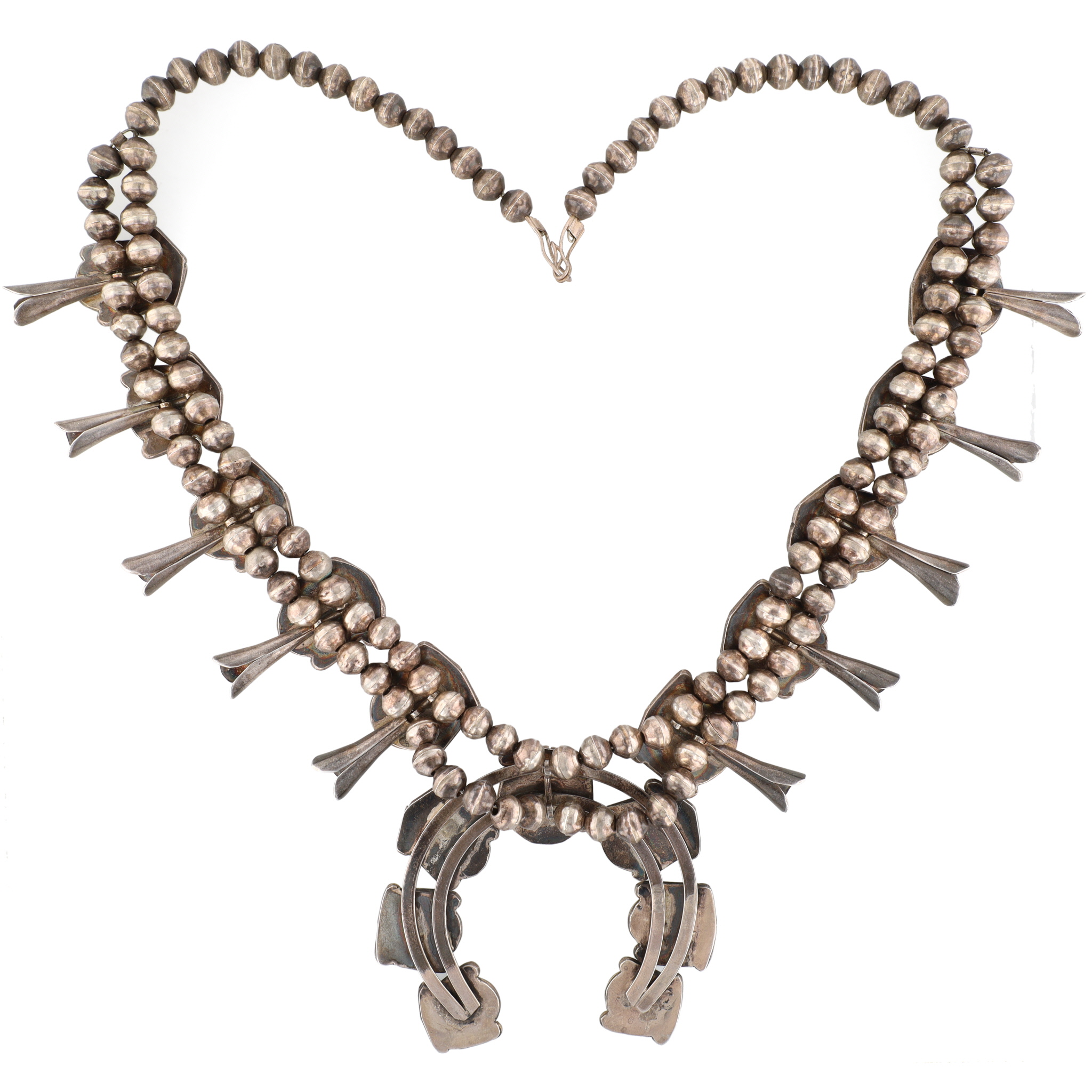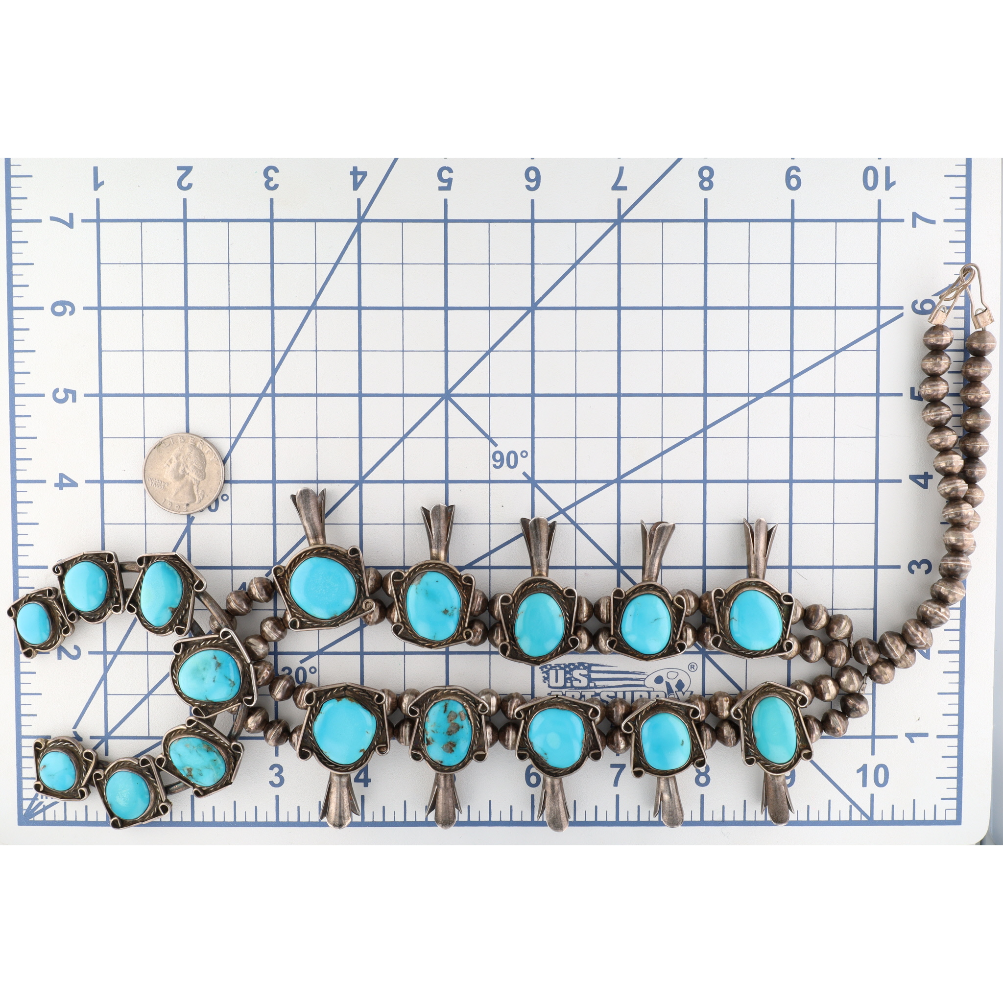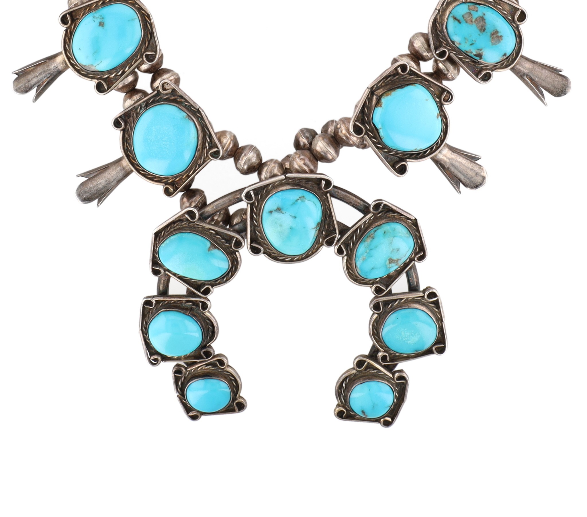 Vintage Navajo Sterling Morenci Turquoise Squash Blossom Necklace 168g