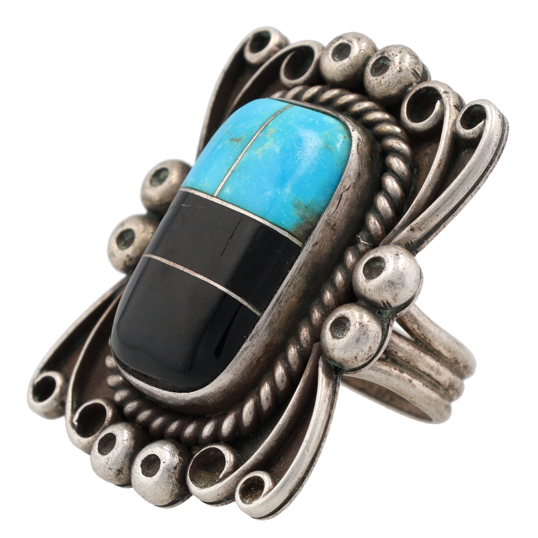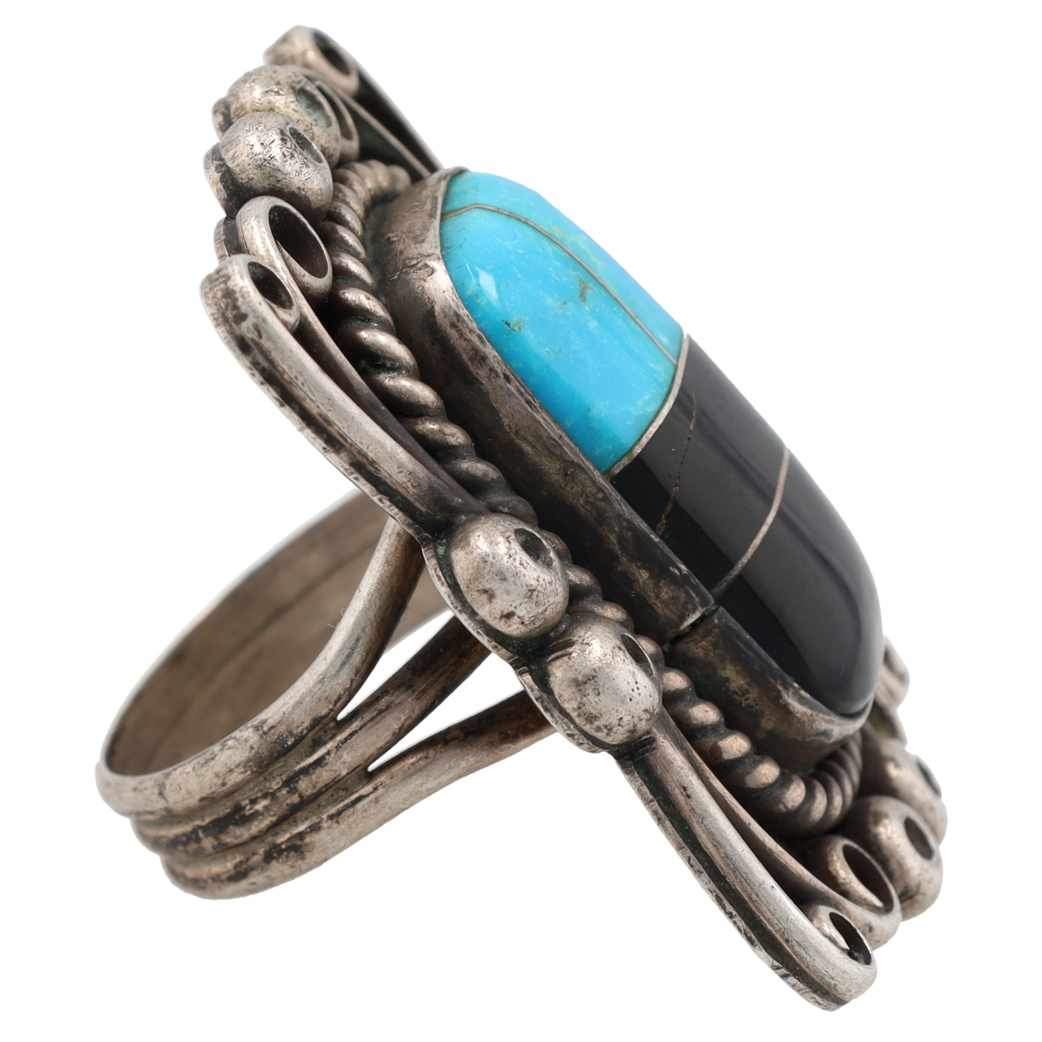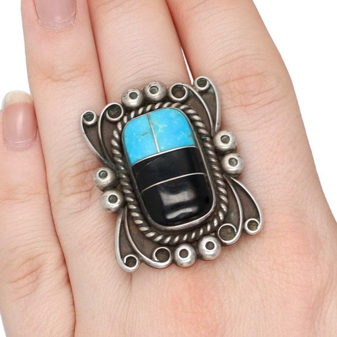 Vintage Navajo Sterling Multi Stone Inlay Ring Sz. 8.75, 22g