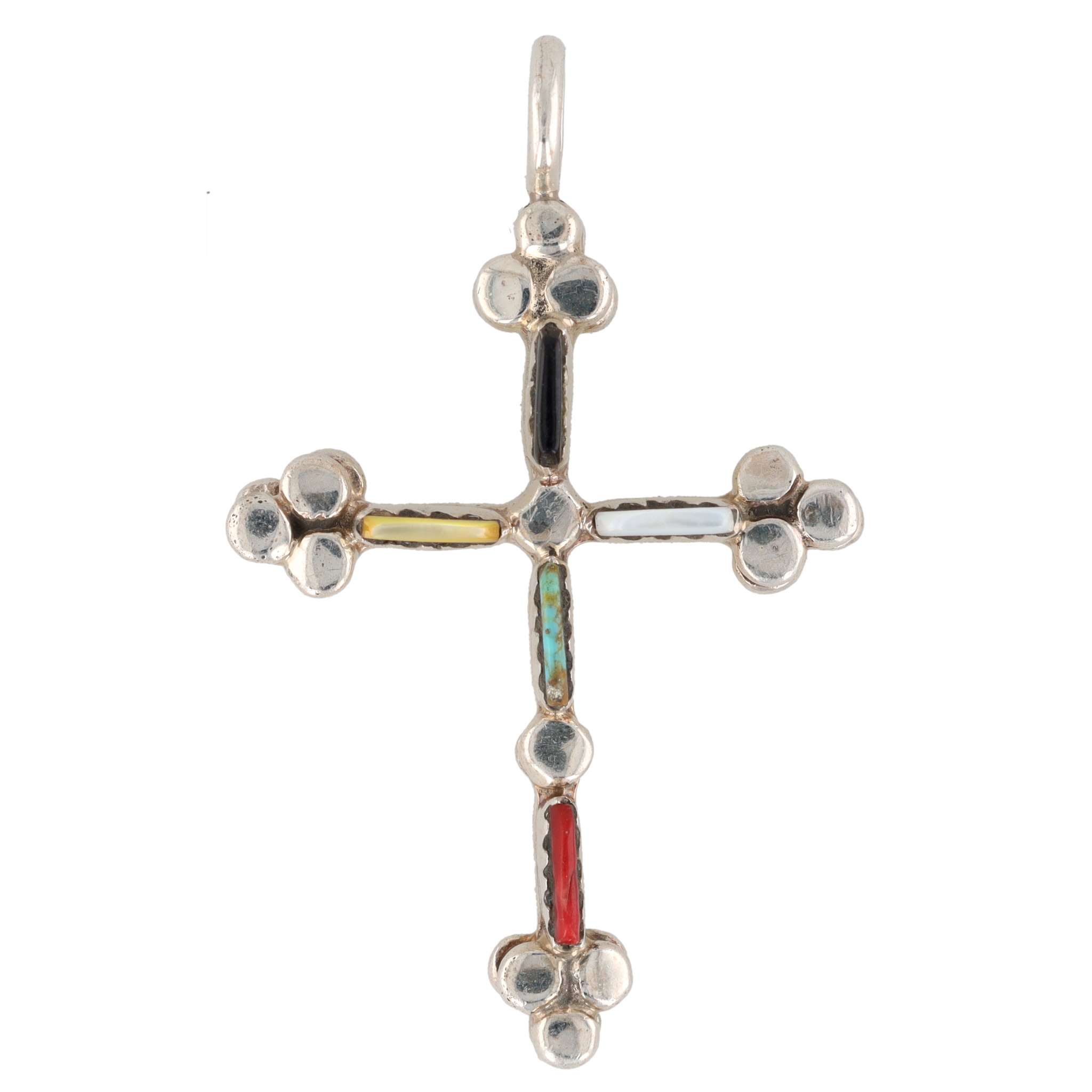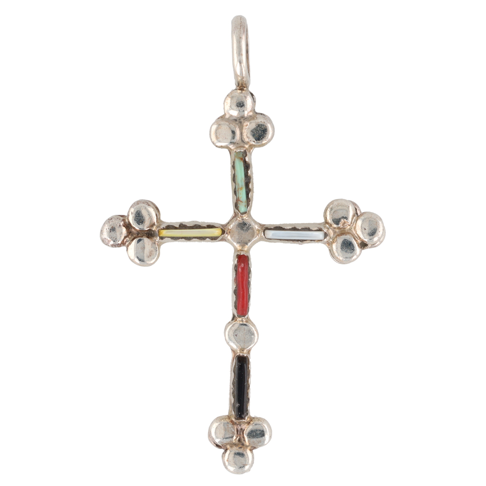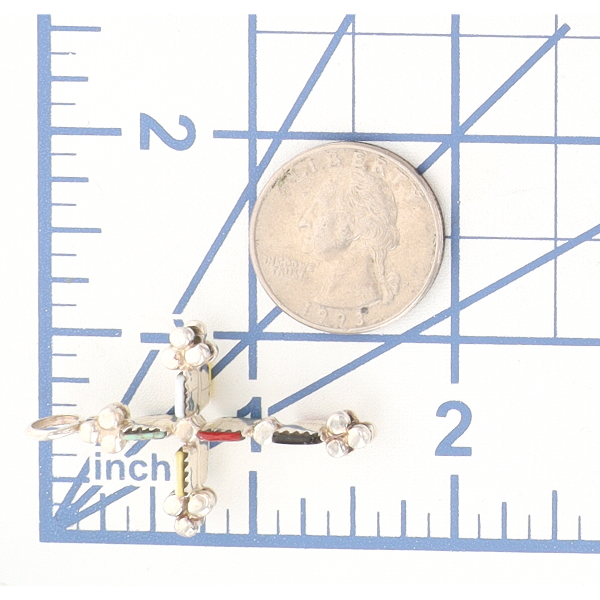Zuni Sterling Needlepoint Multi Stone Reversible Cross Pendant 5g