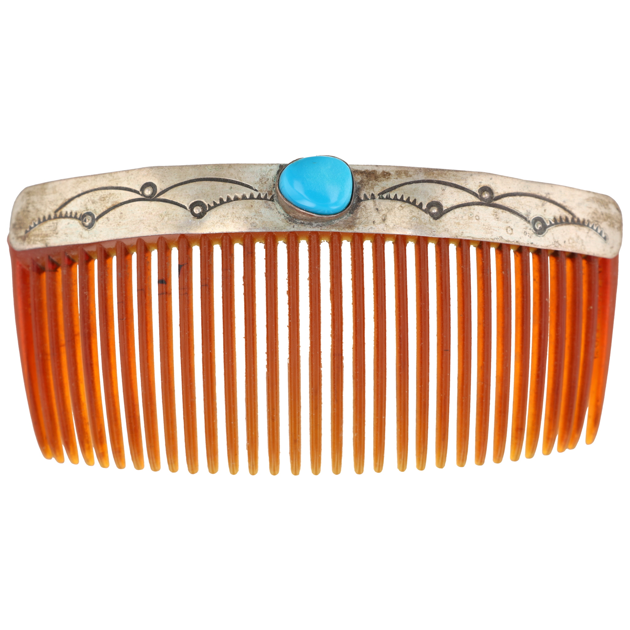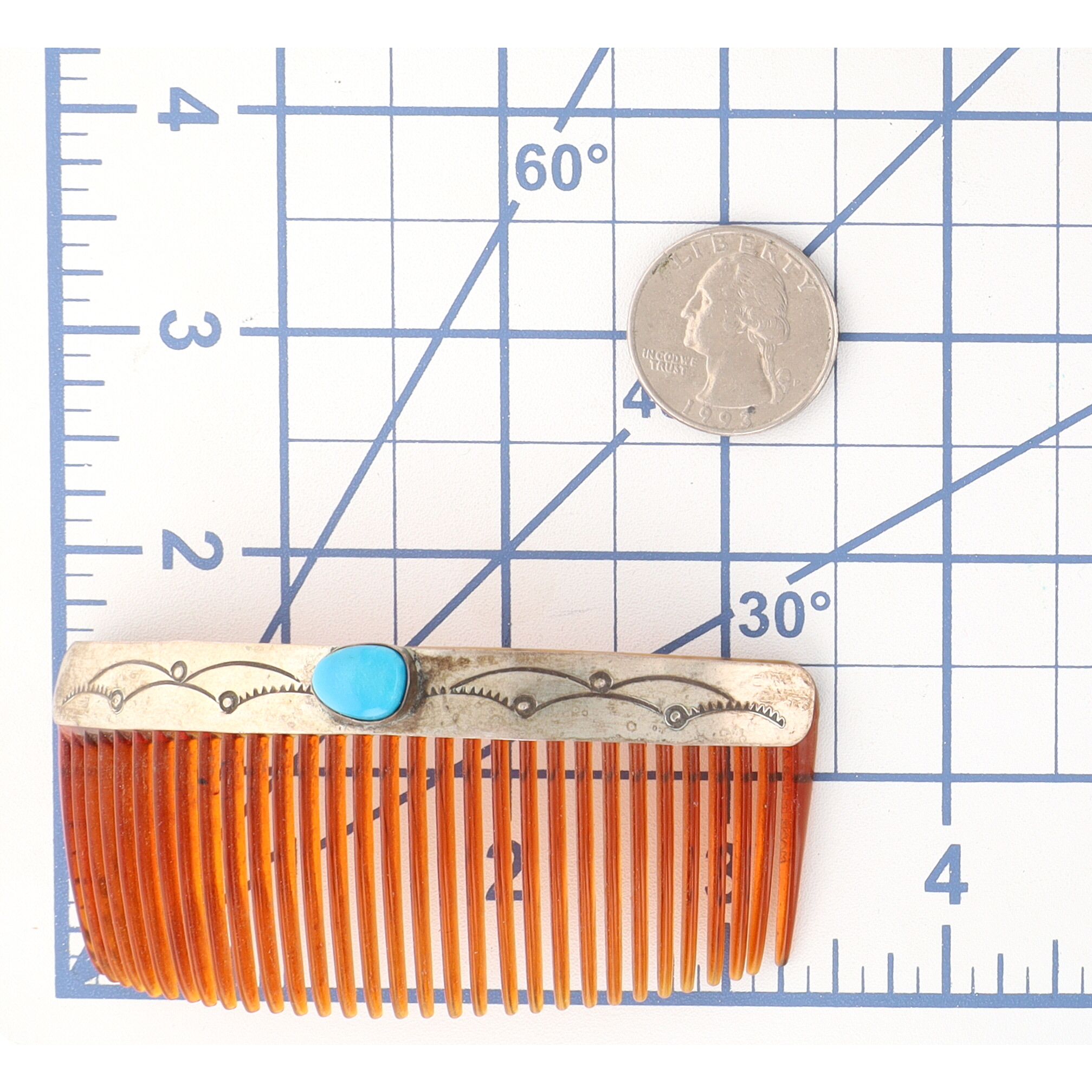 Vintage Navajo Stamped Sterling Turquoise Hair Comb 11.5g