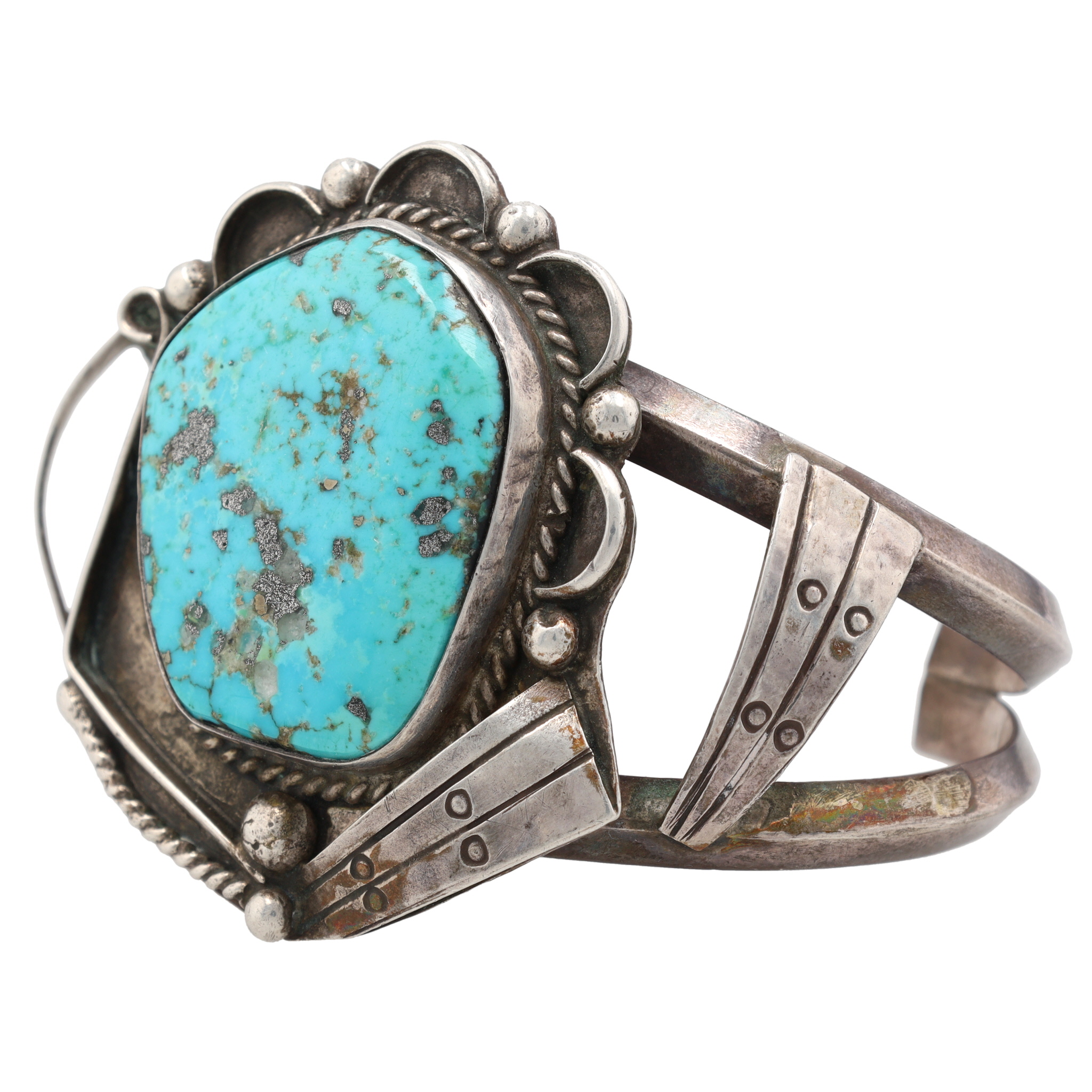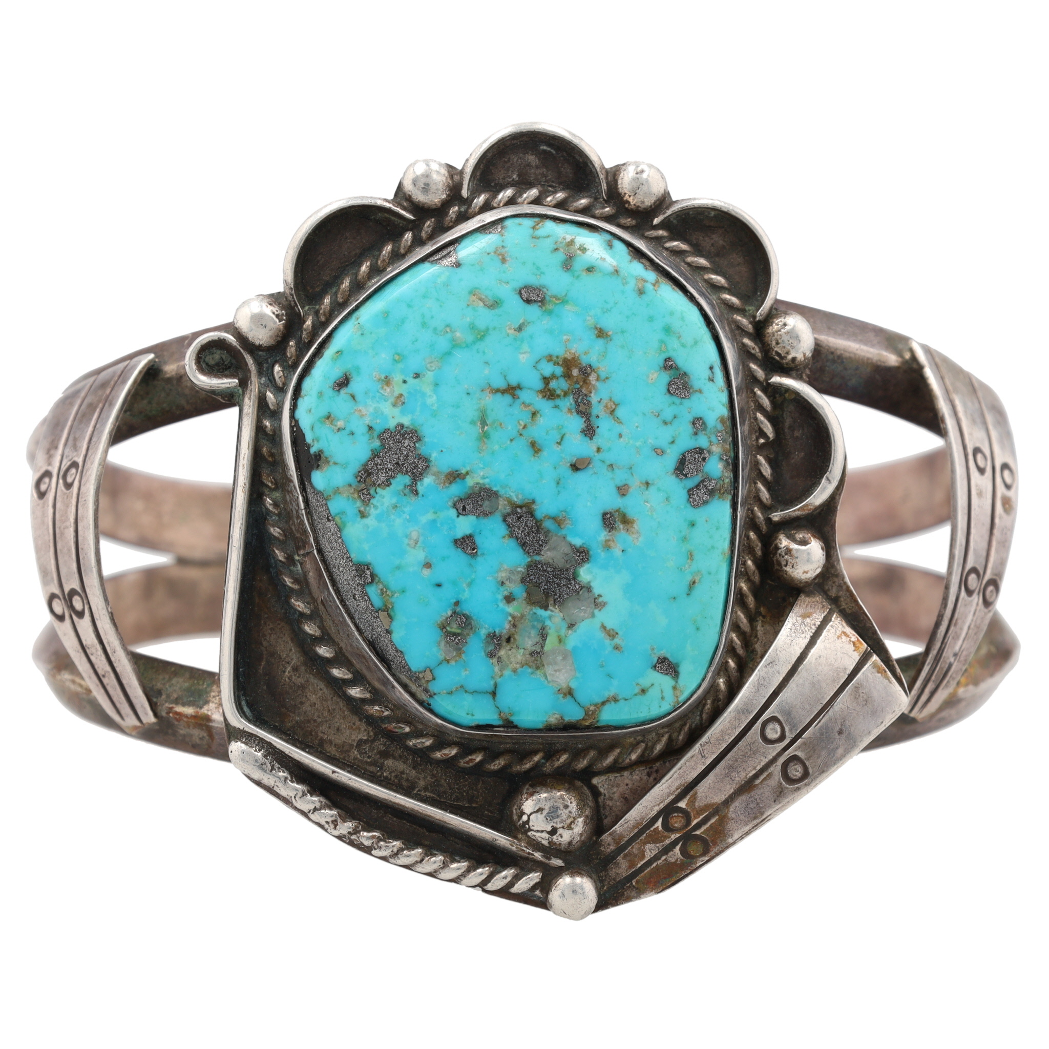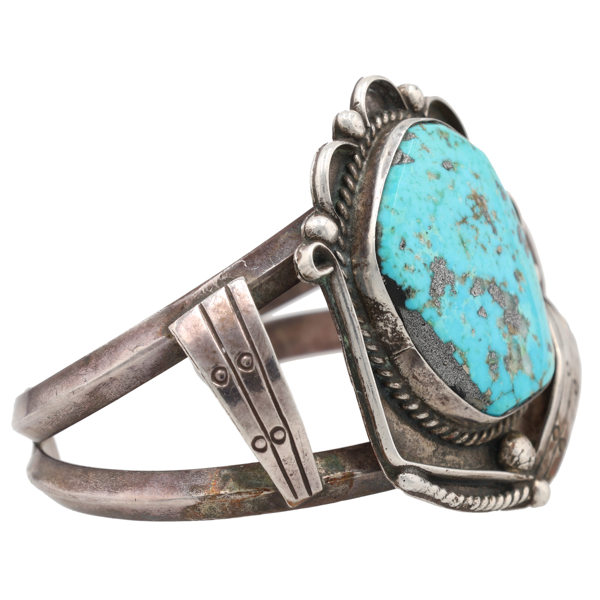 Vintage Navajo Morenci Turquoise Sterling Cuff Bracelet 44g
