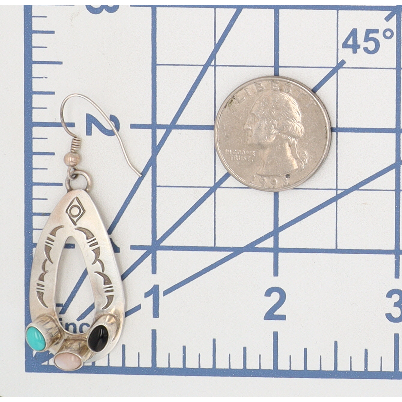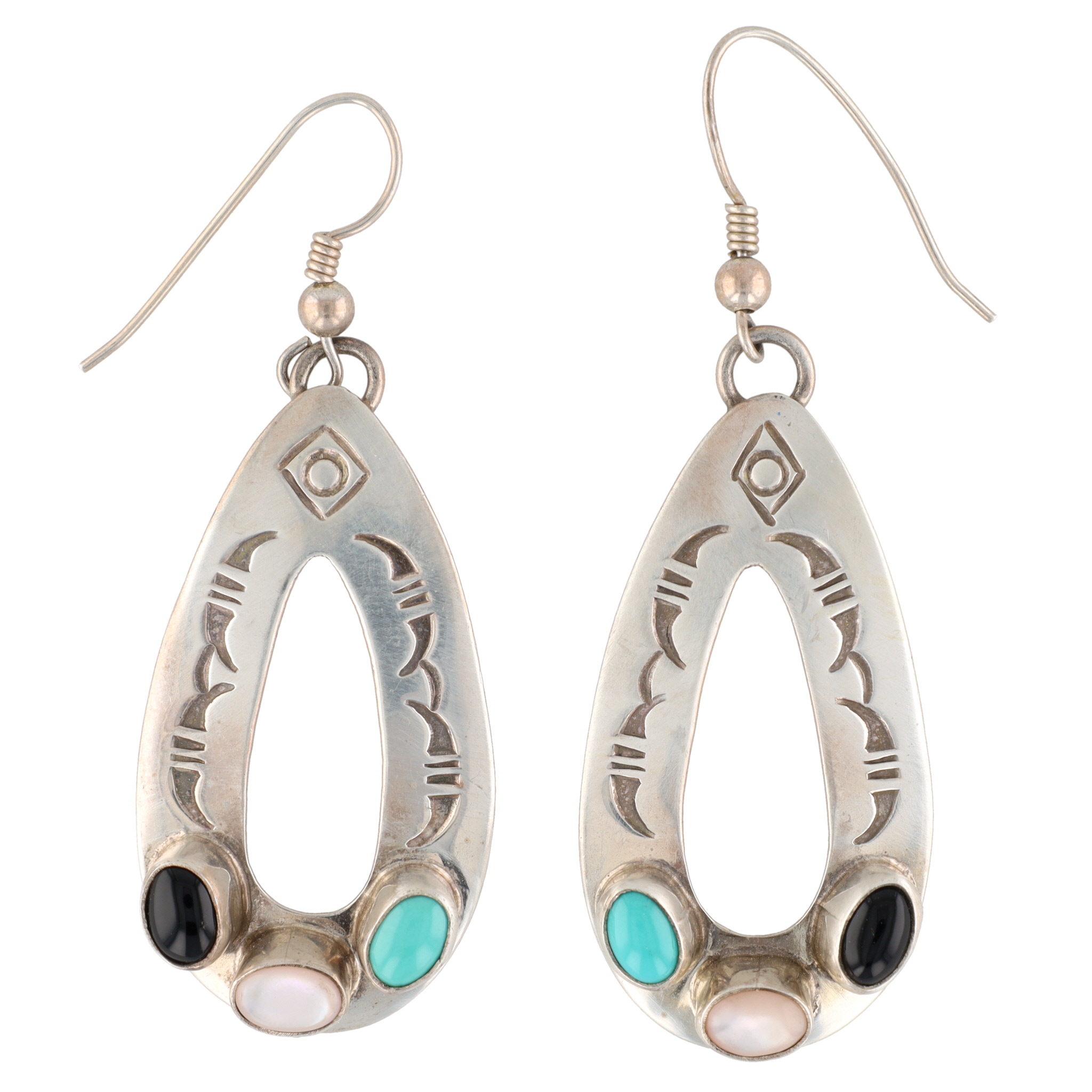 Signed Navajo Sterling Multi Stone Drop Hook Earrings