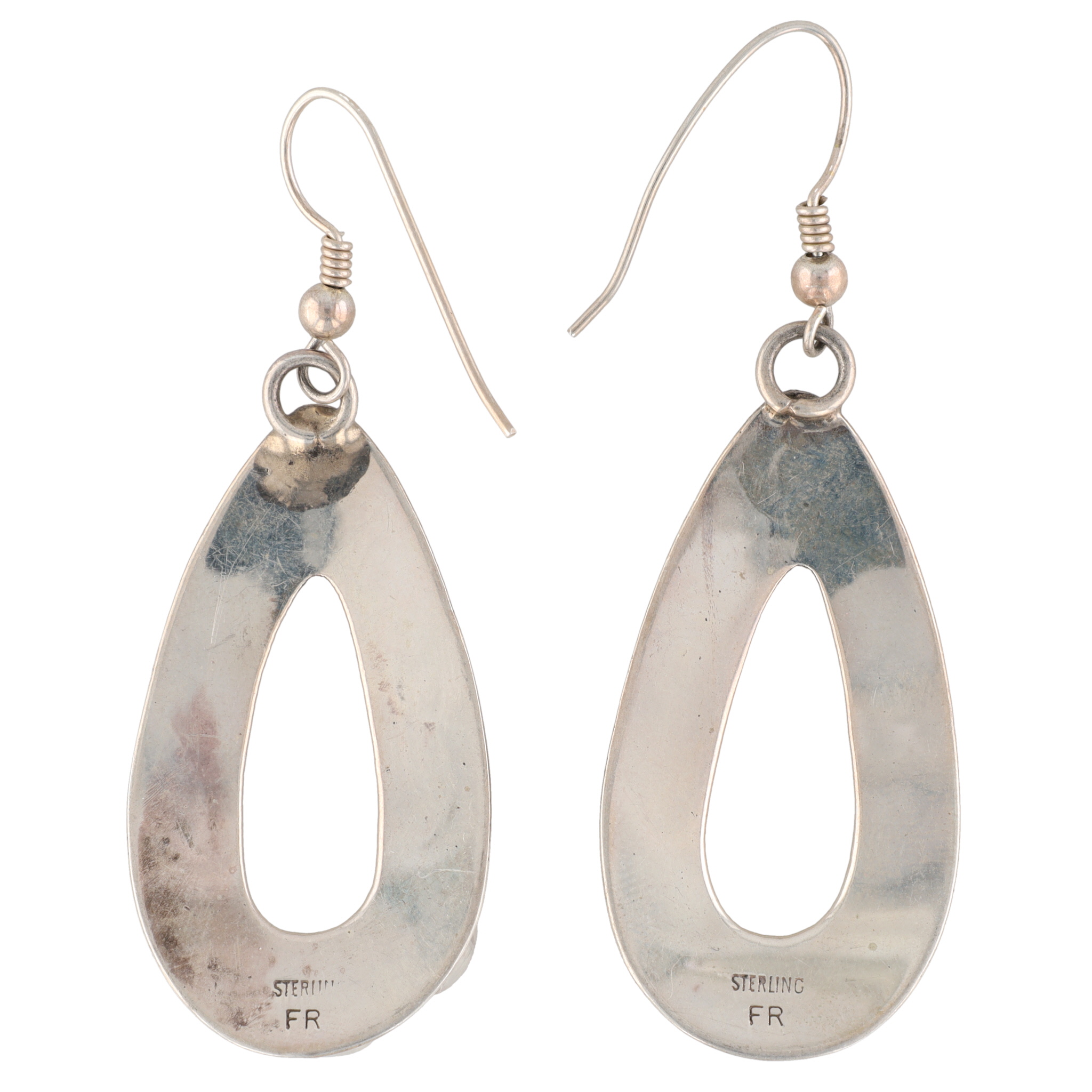 Signed FR Navajo Sterling Multi Stone Drop Hook Earrings 8.3g