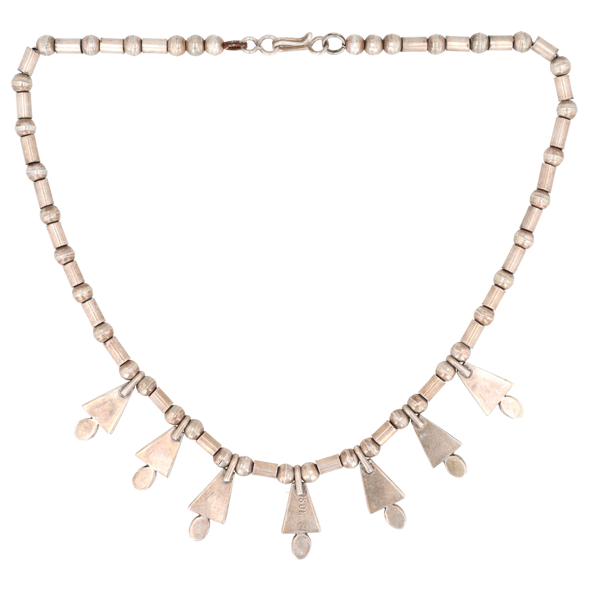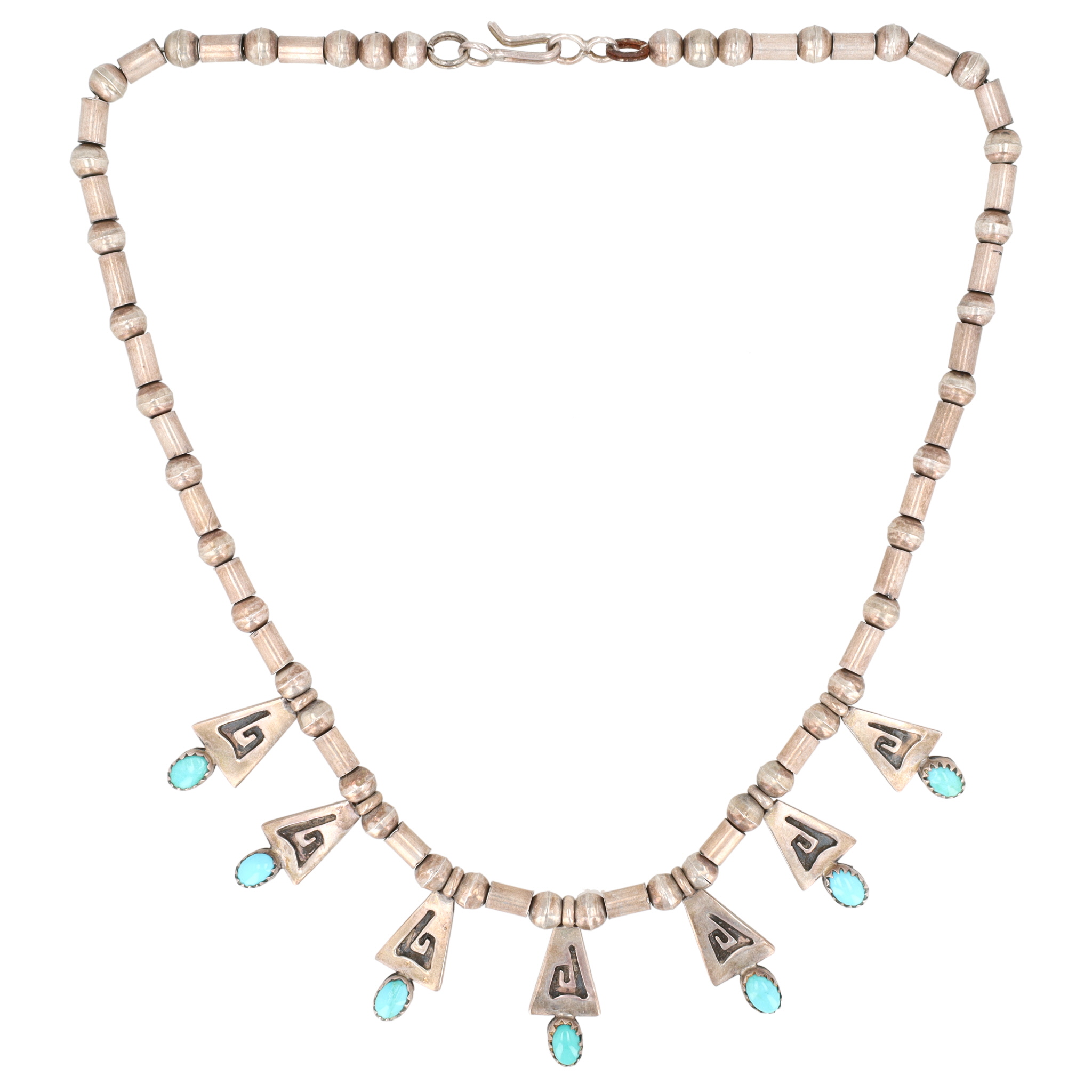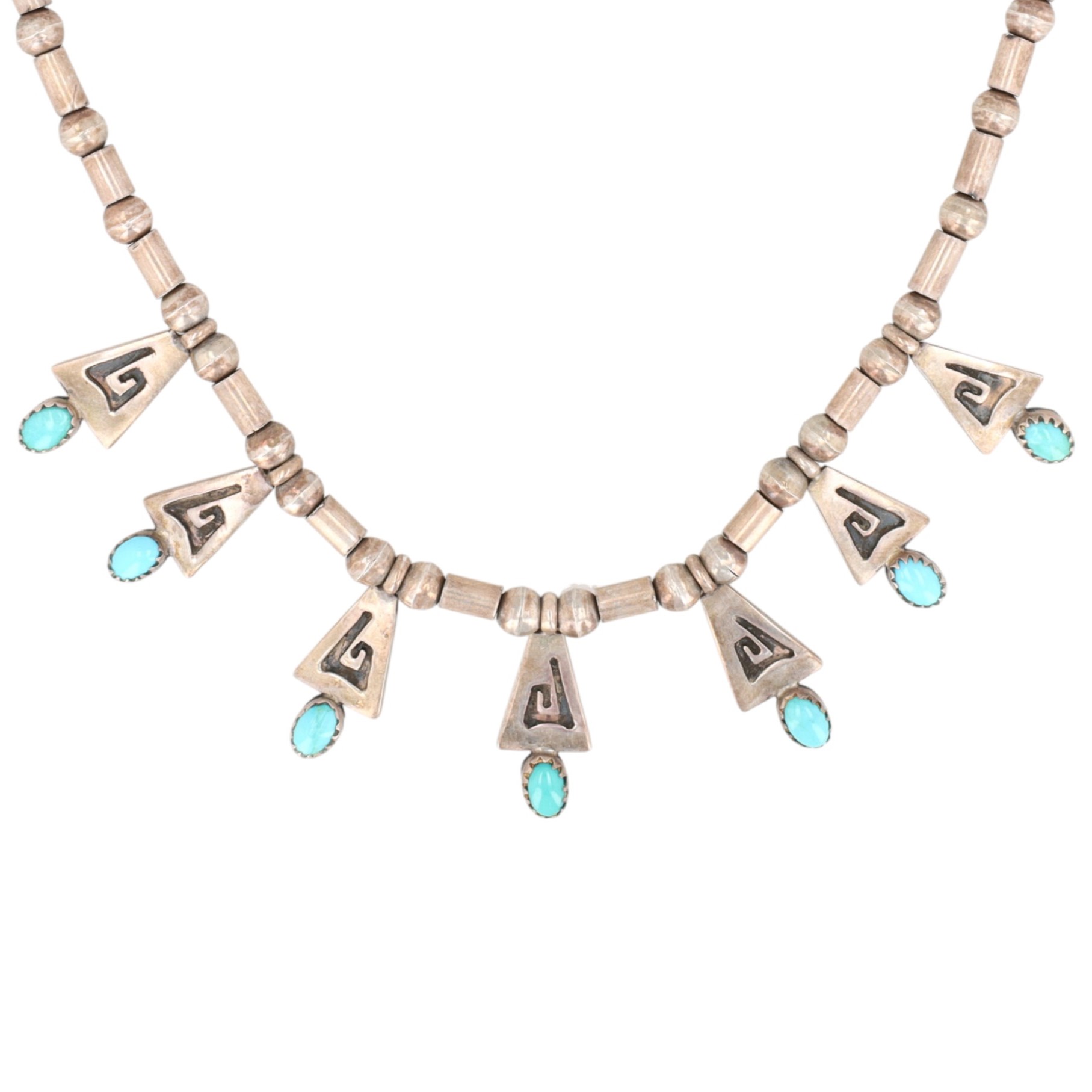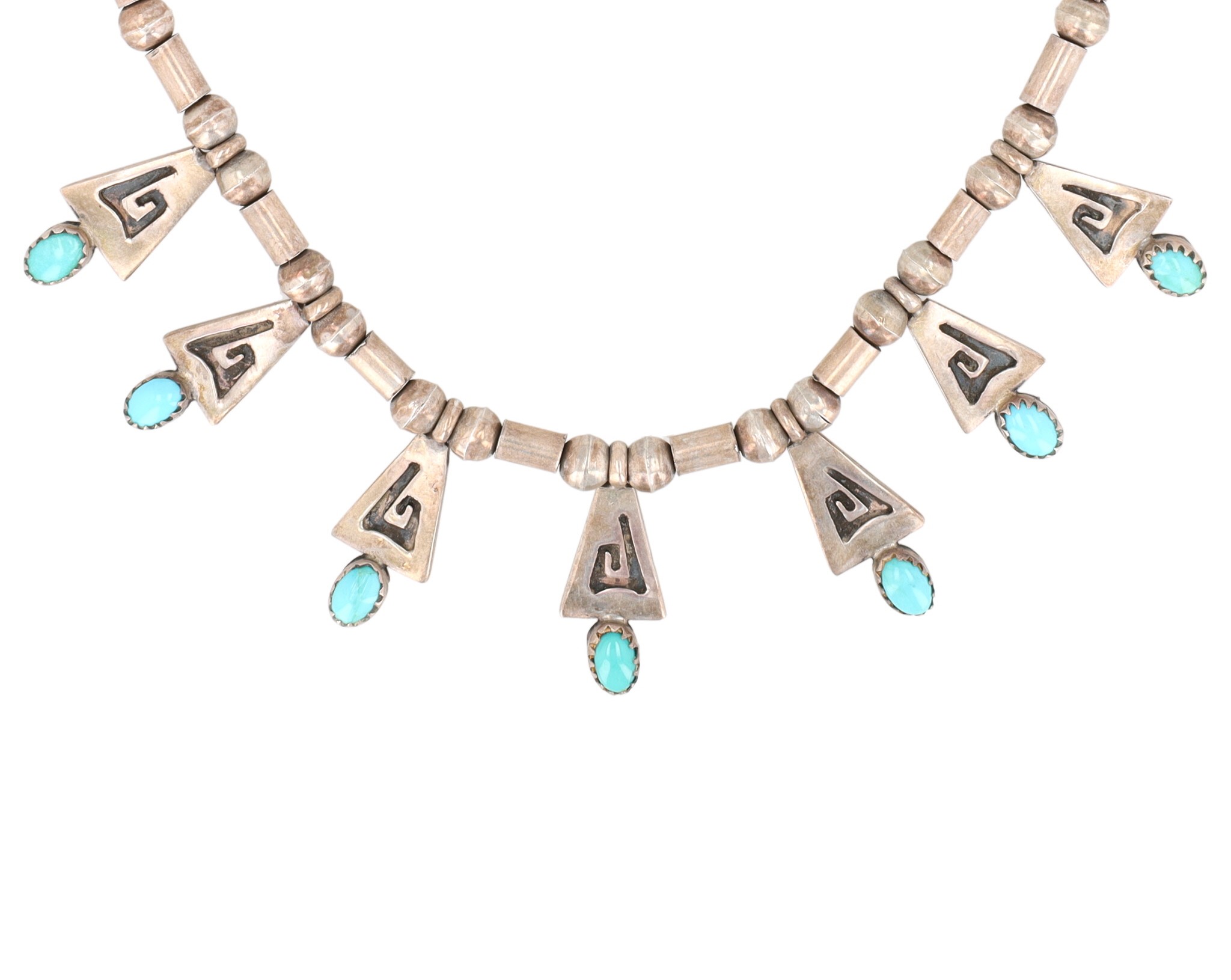 Signed Navajo Sterling Turquoise Necklace 33.5g