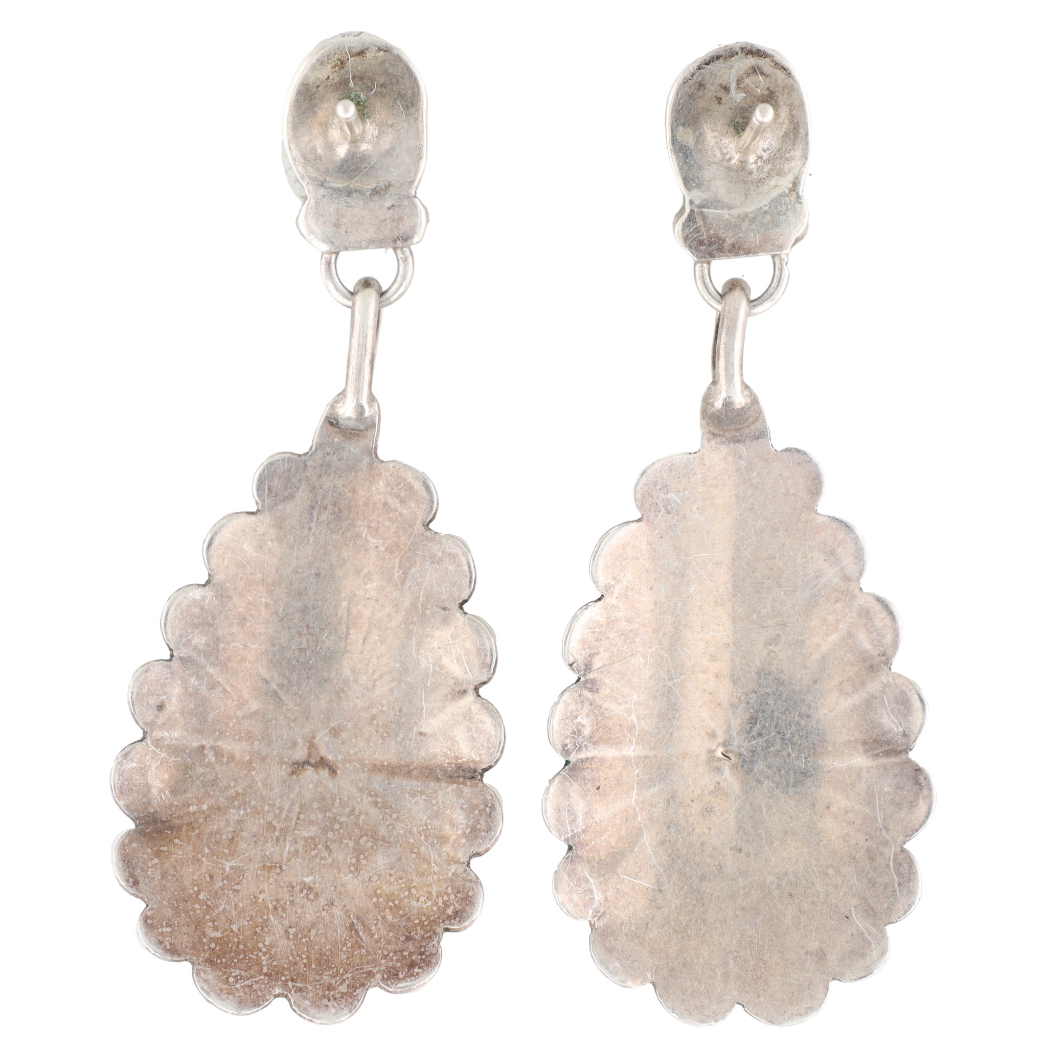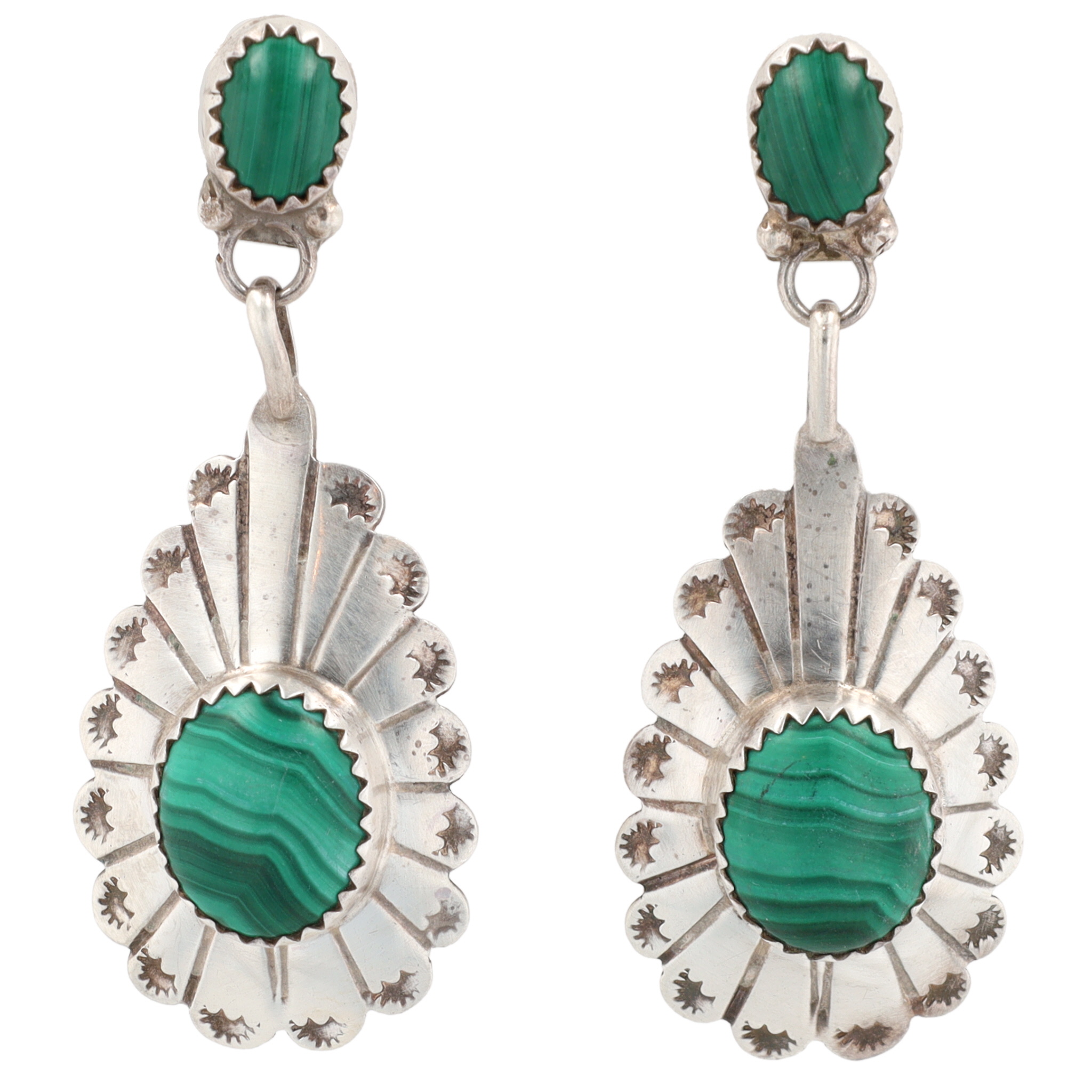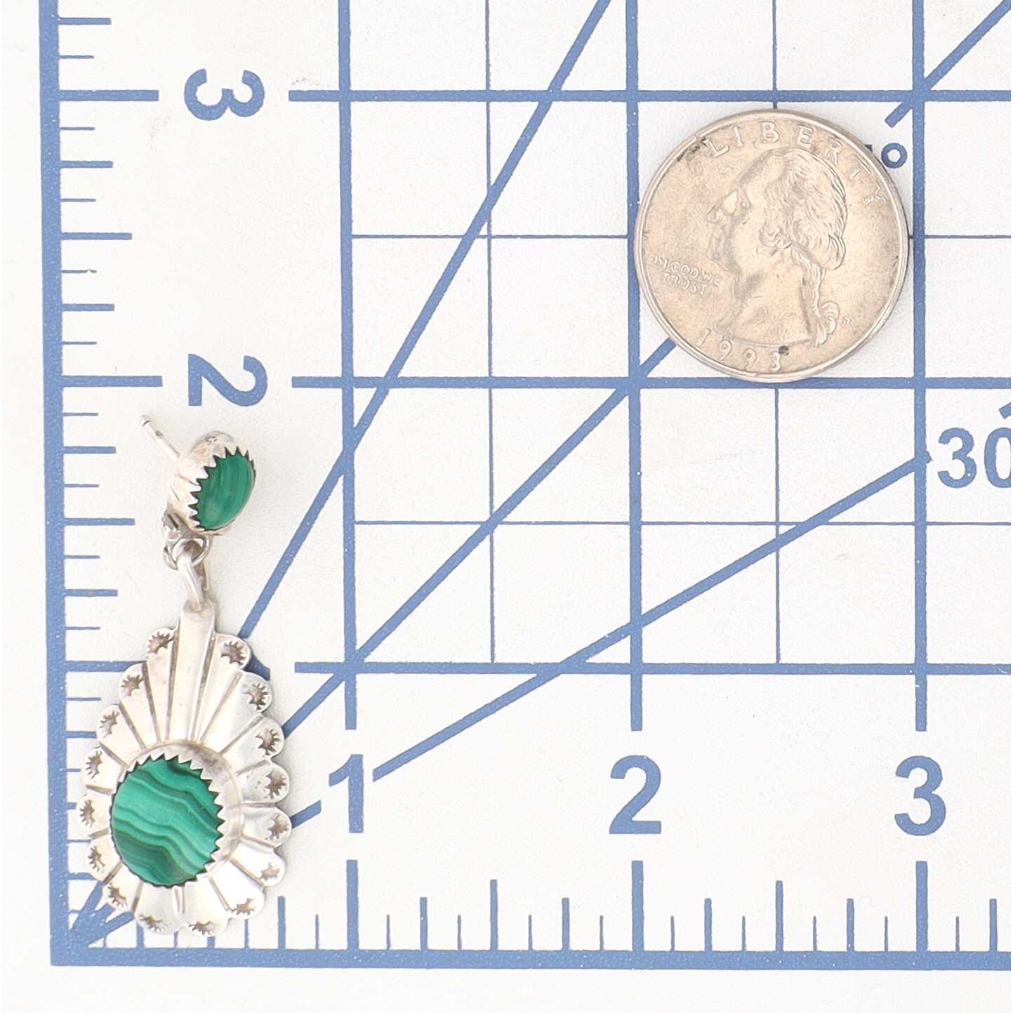 Navajo Sterling Malachite Stamped Drop Earrings 9g