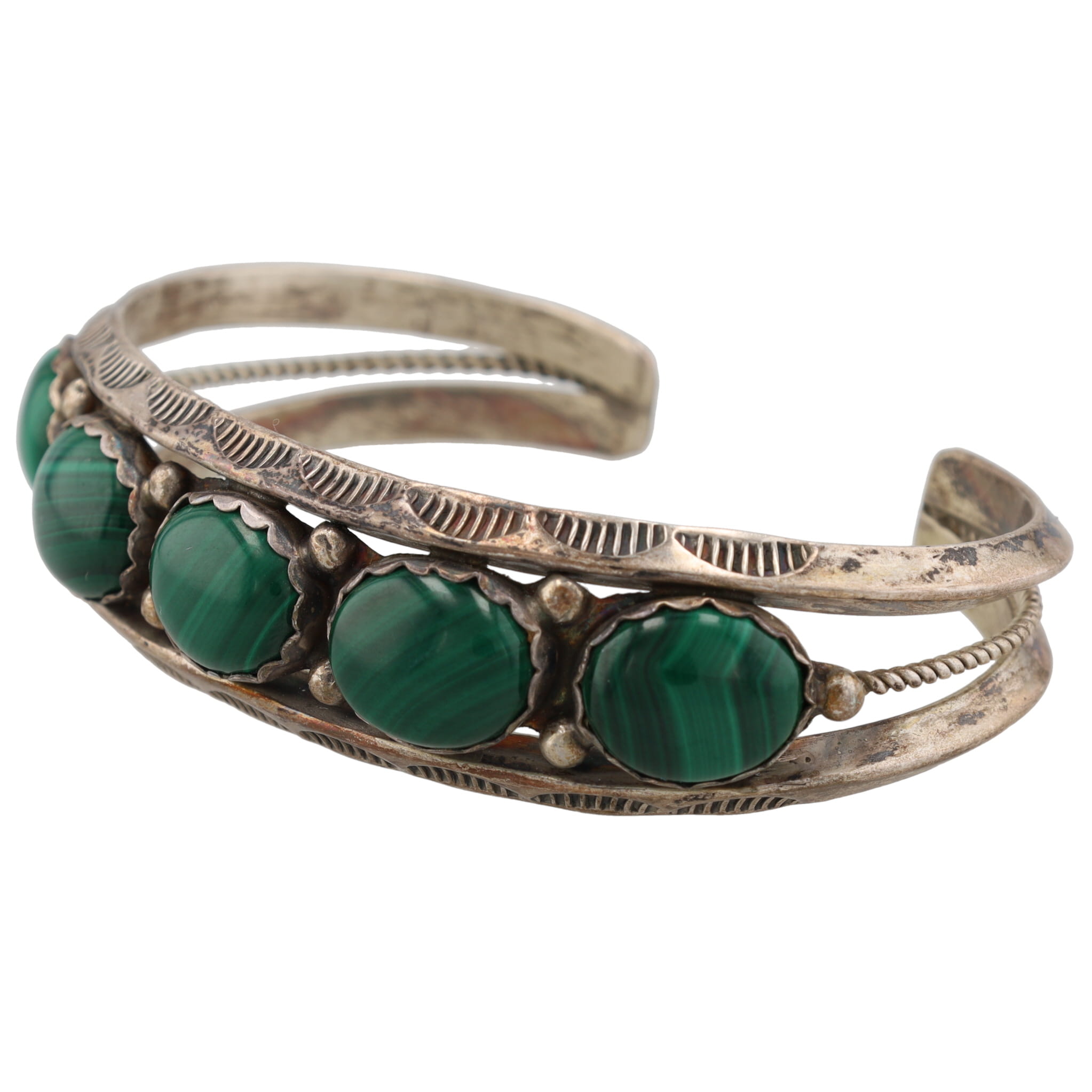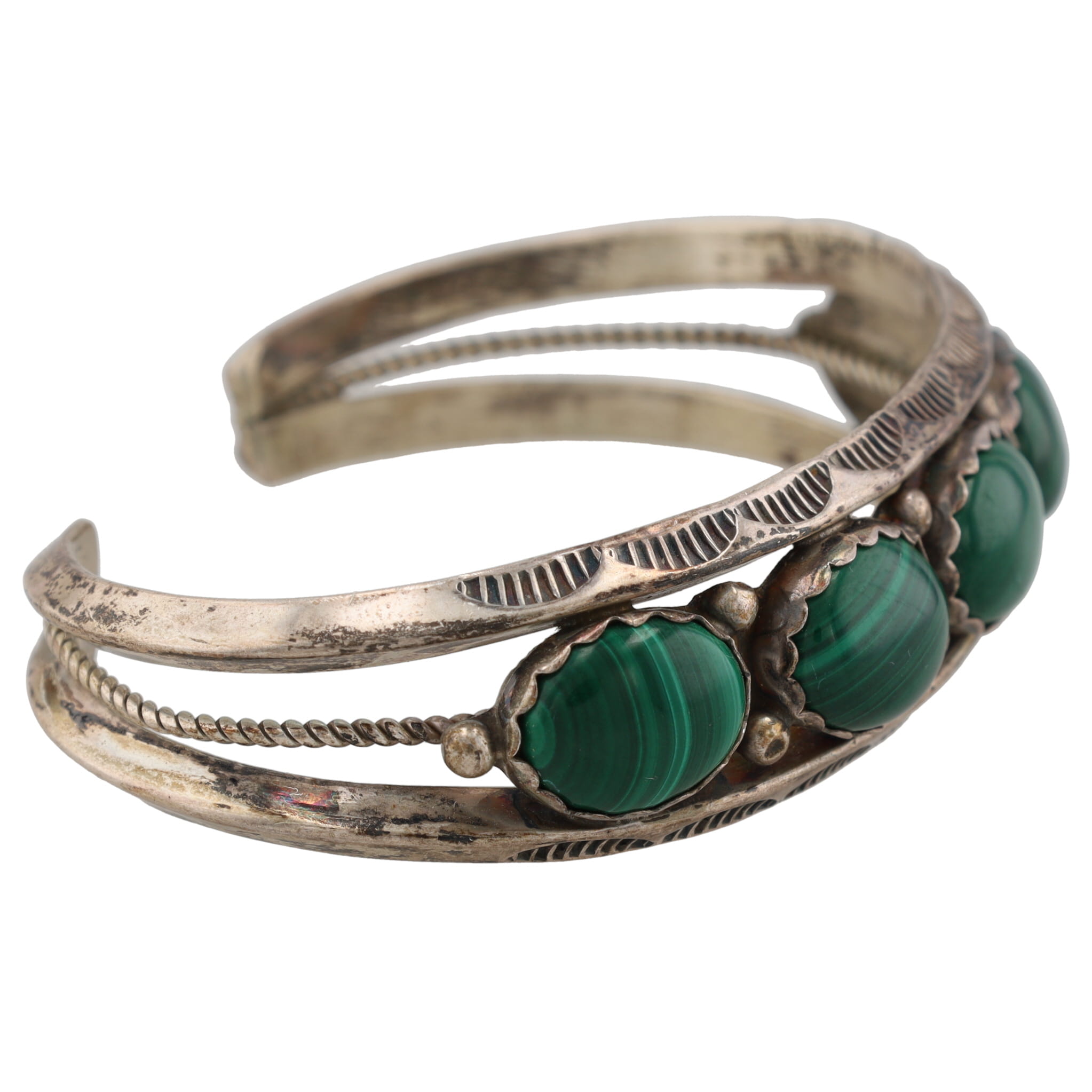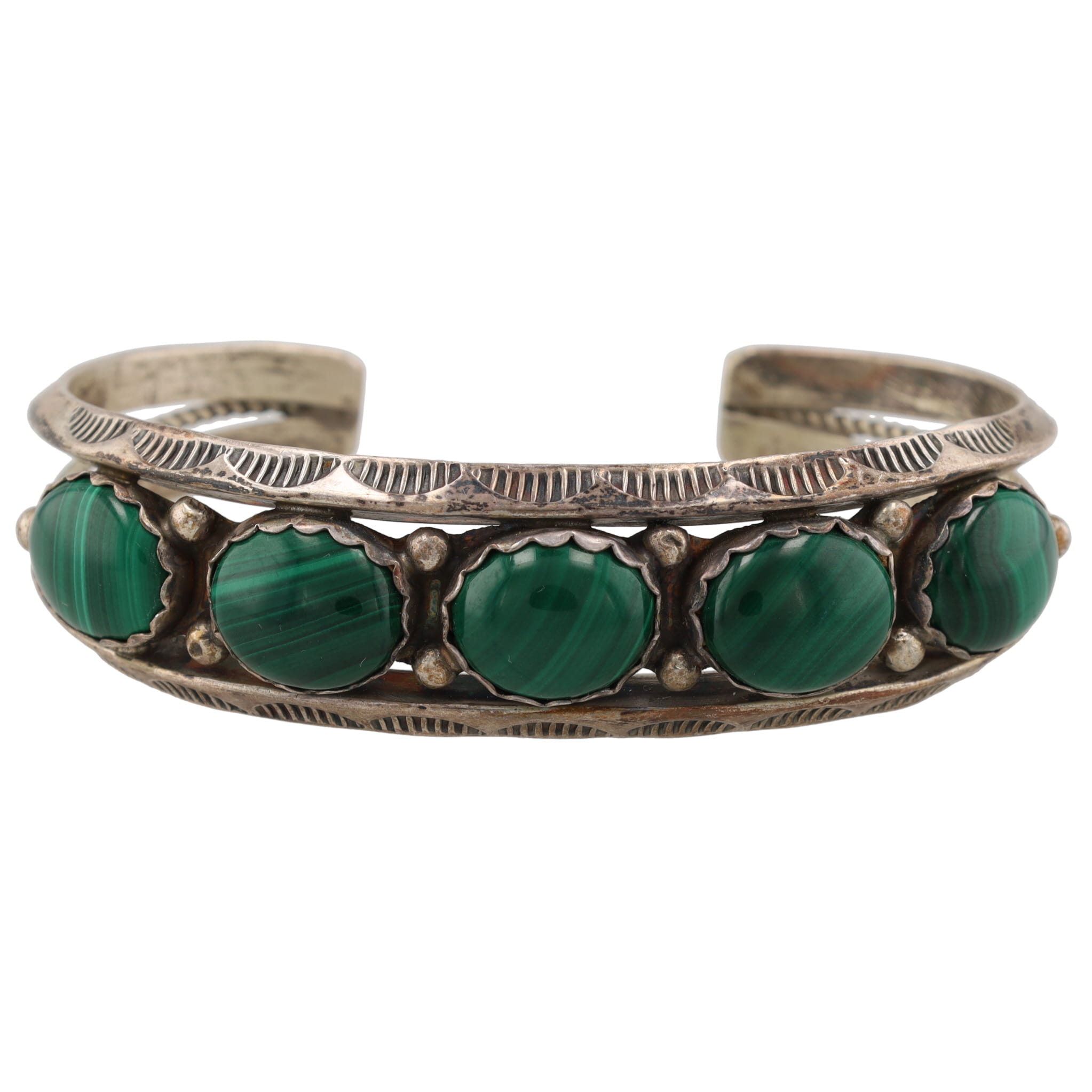 Signed L Navajo Sterling Malachite Cuff Bracelet 33g