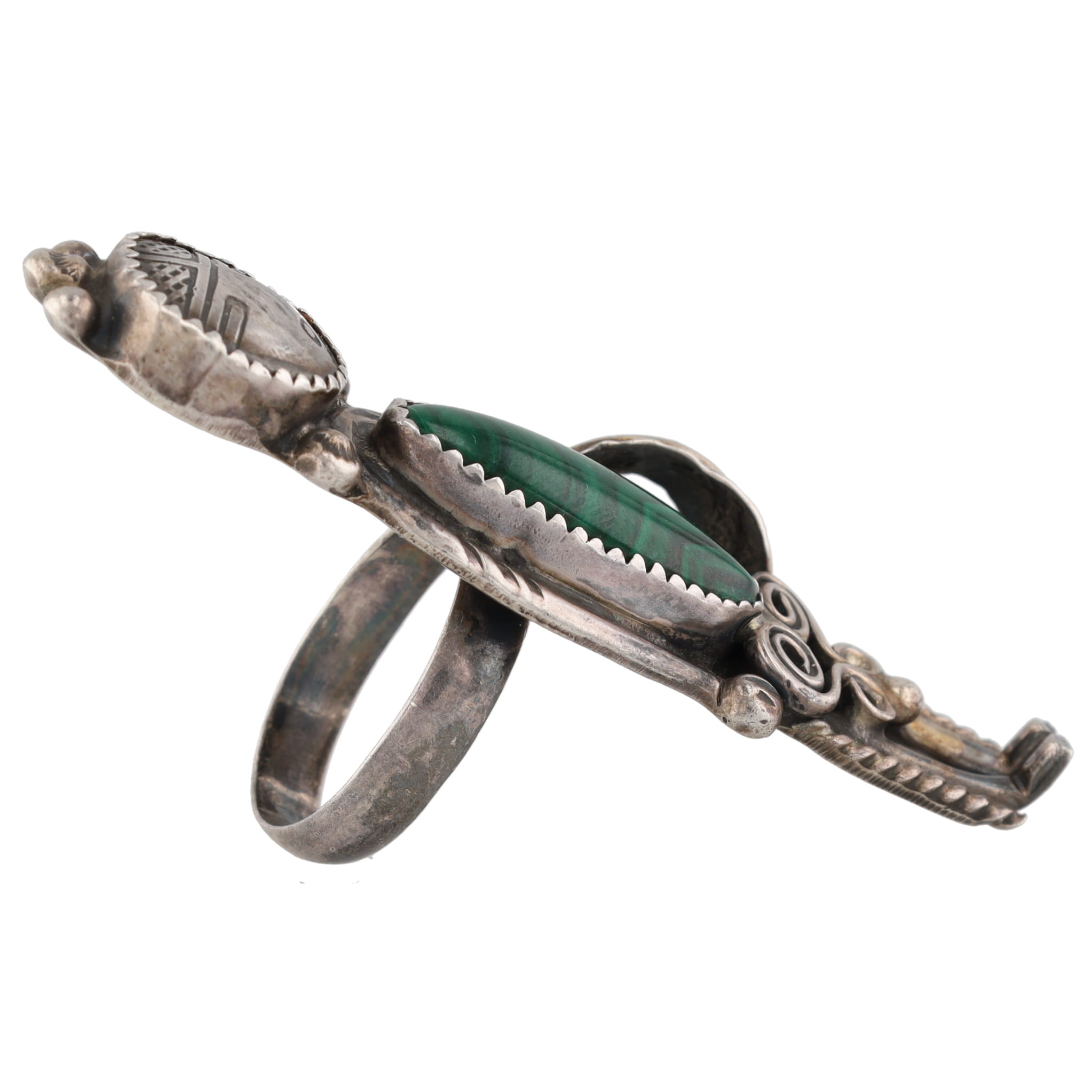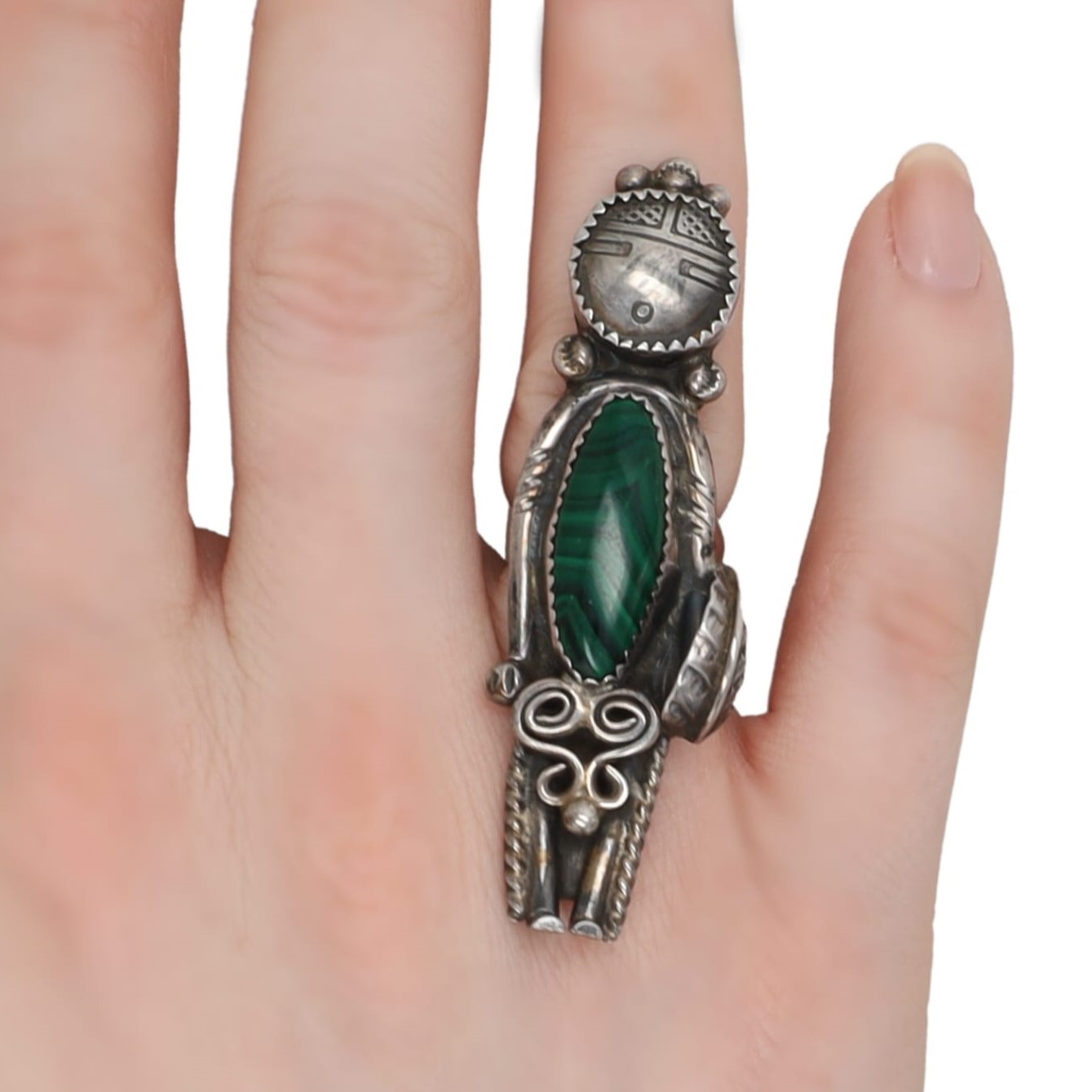 Vintage Navajo Sterling Malachite Kachina Ring Sz. 6, 13.5g