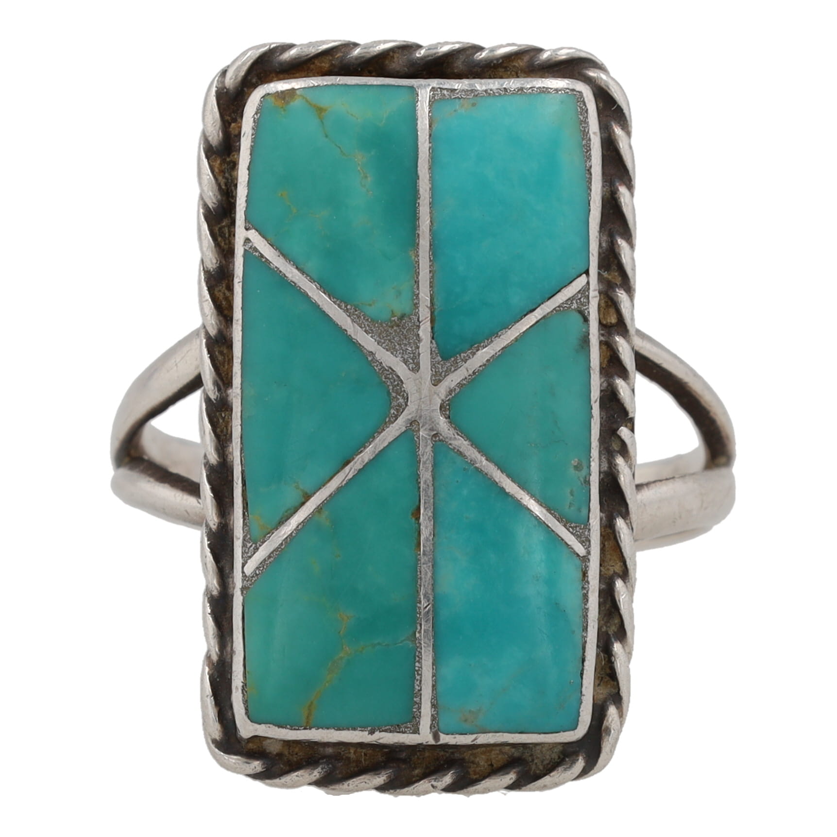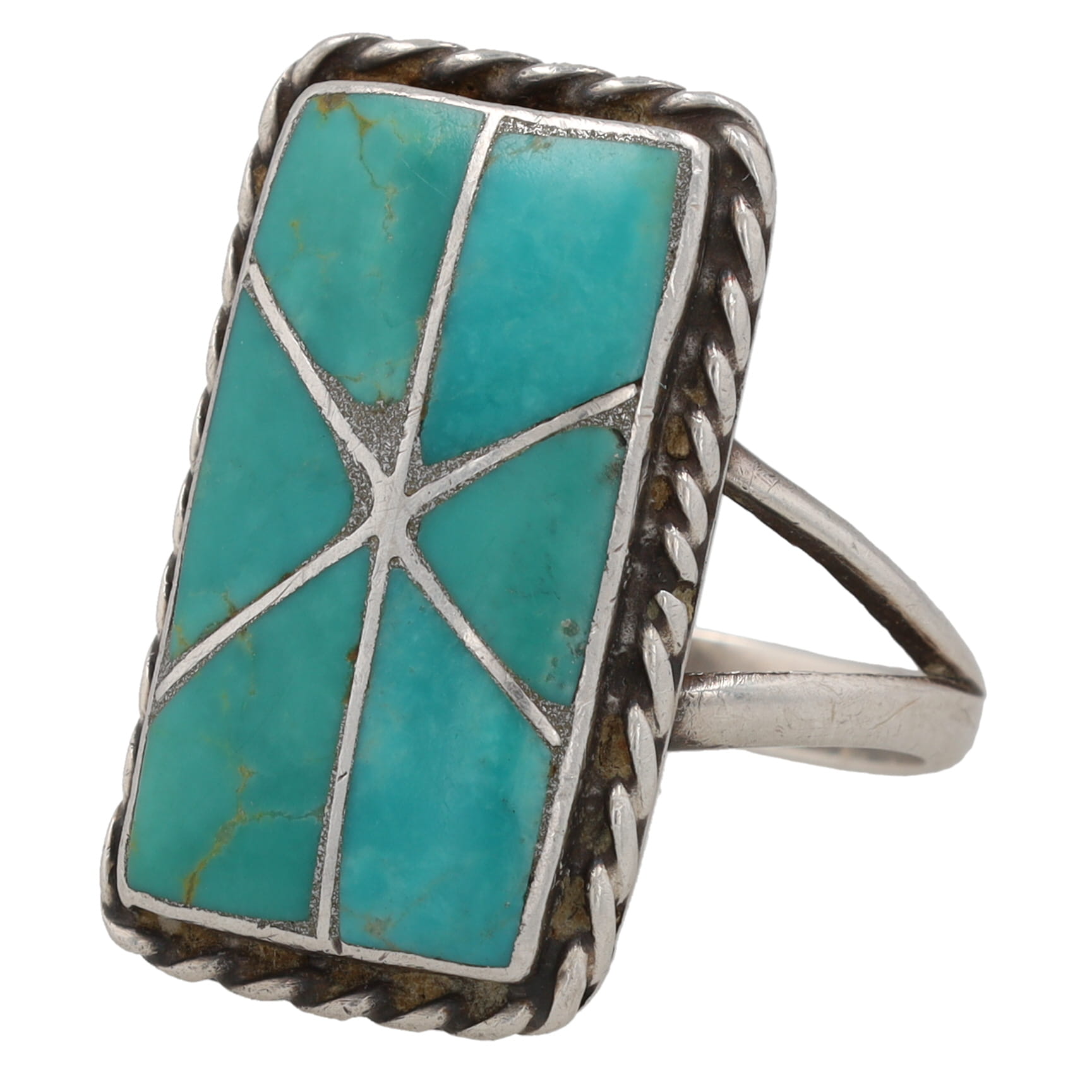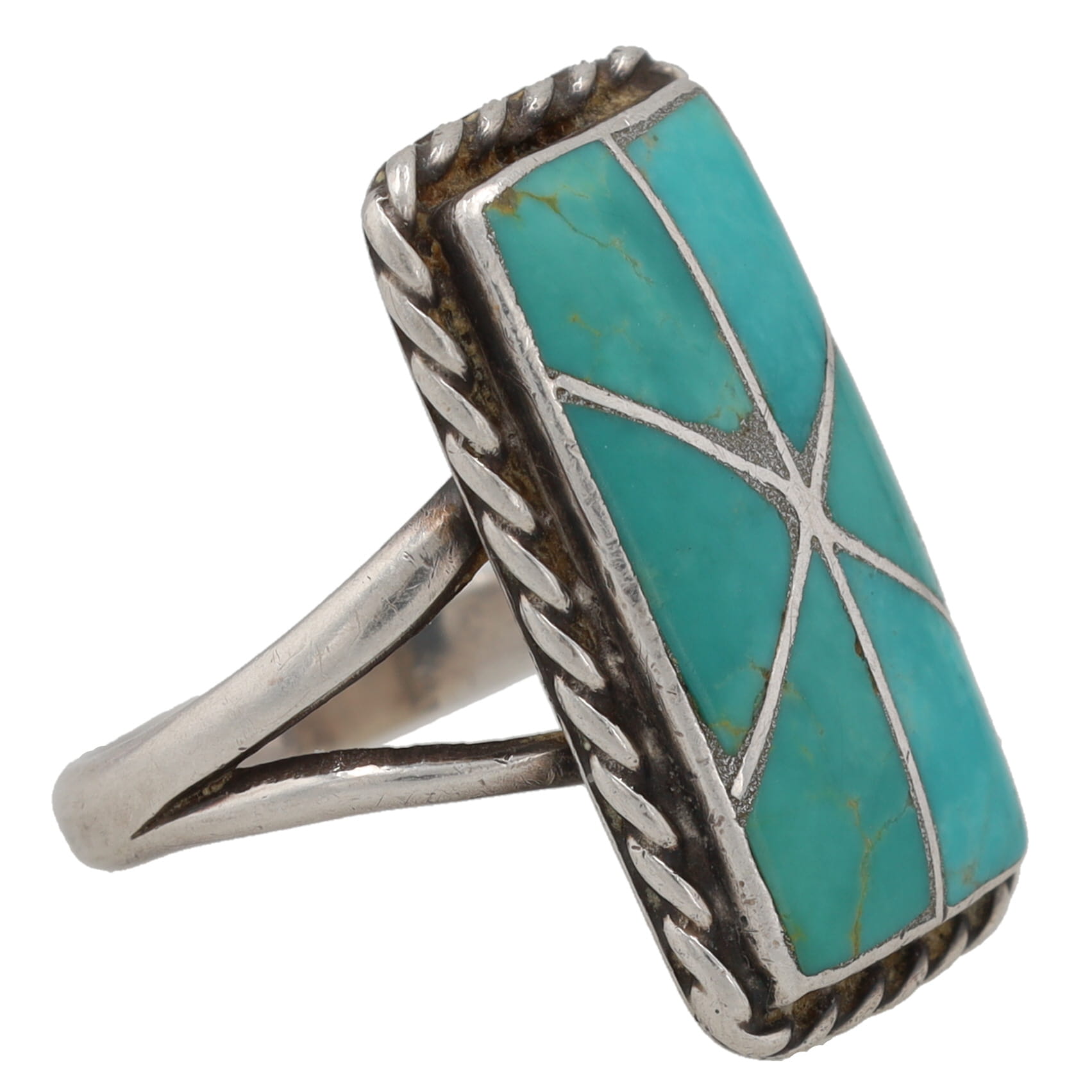 Vintage Navajo Sterling Turquoise Inlay Ring Sz. 10, 9.5g