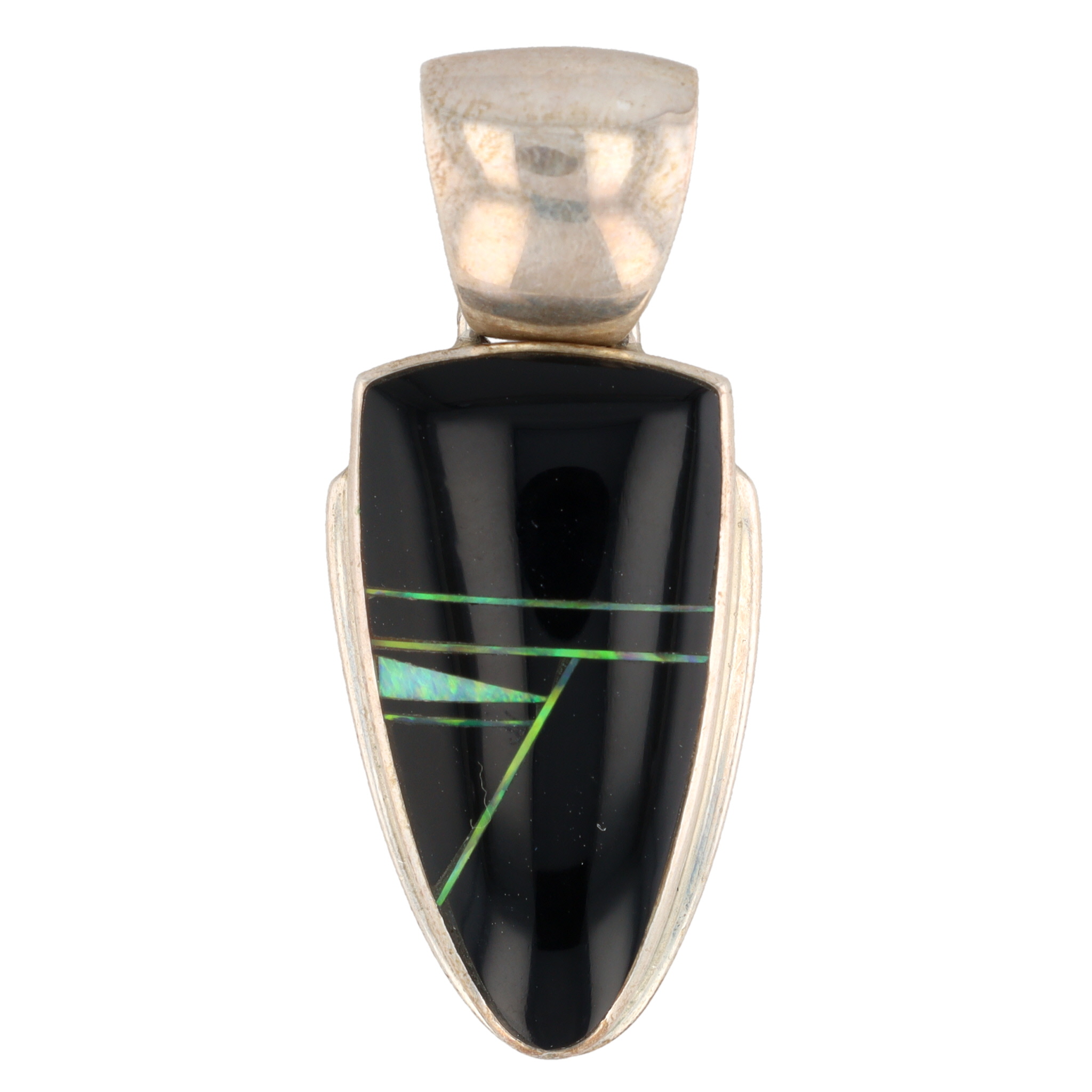 John Charley Navajo Sterling Multi Stone Inlay Pendant 5g