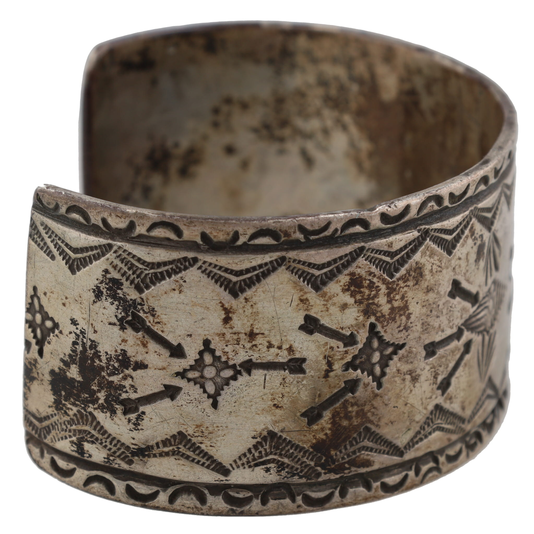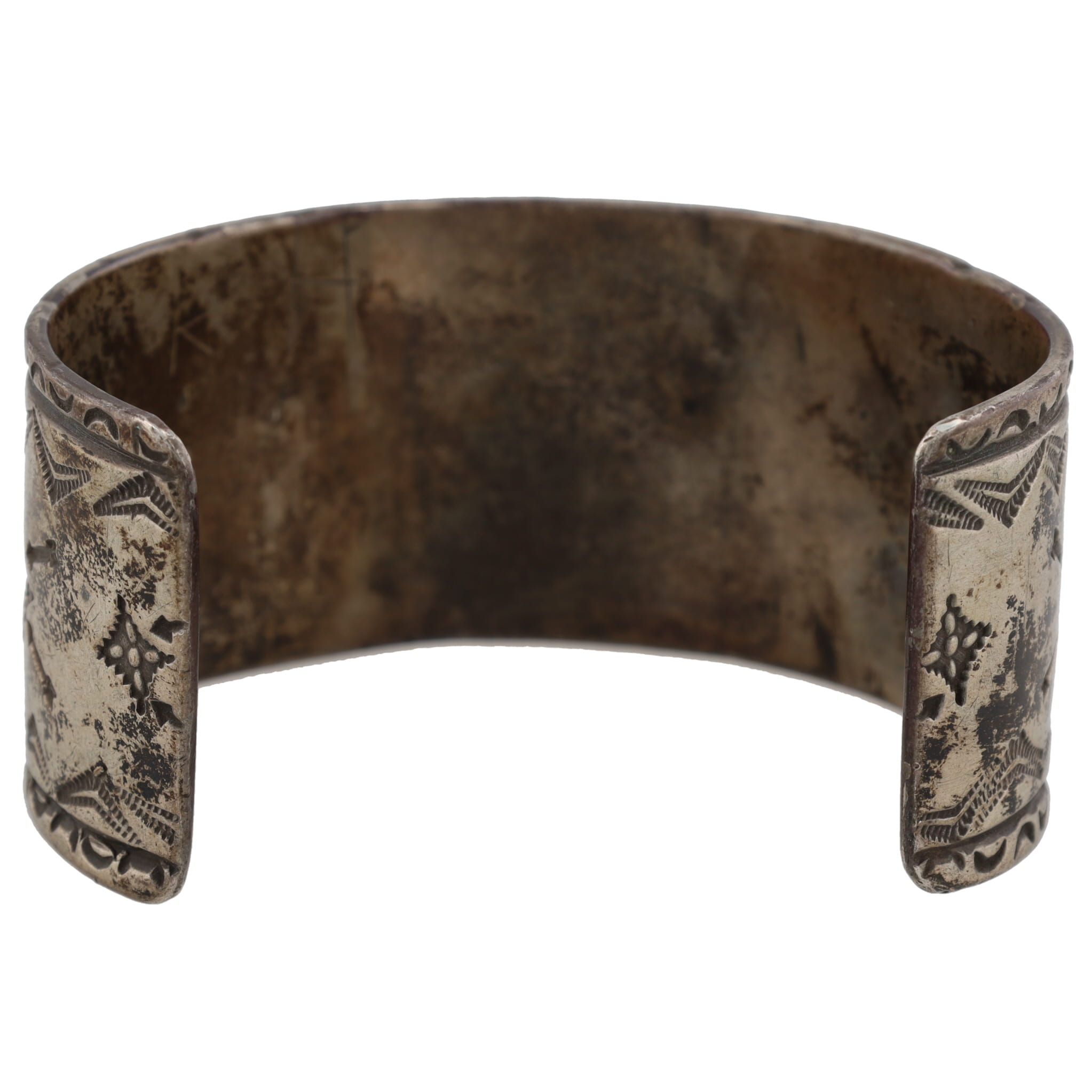 Pre-1940 Navajo Sterling Stamped Whirling Logs Cuff Bracelet 67g