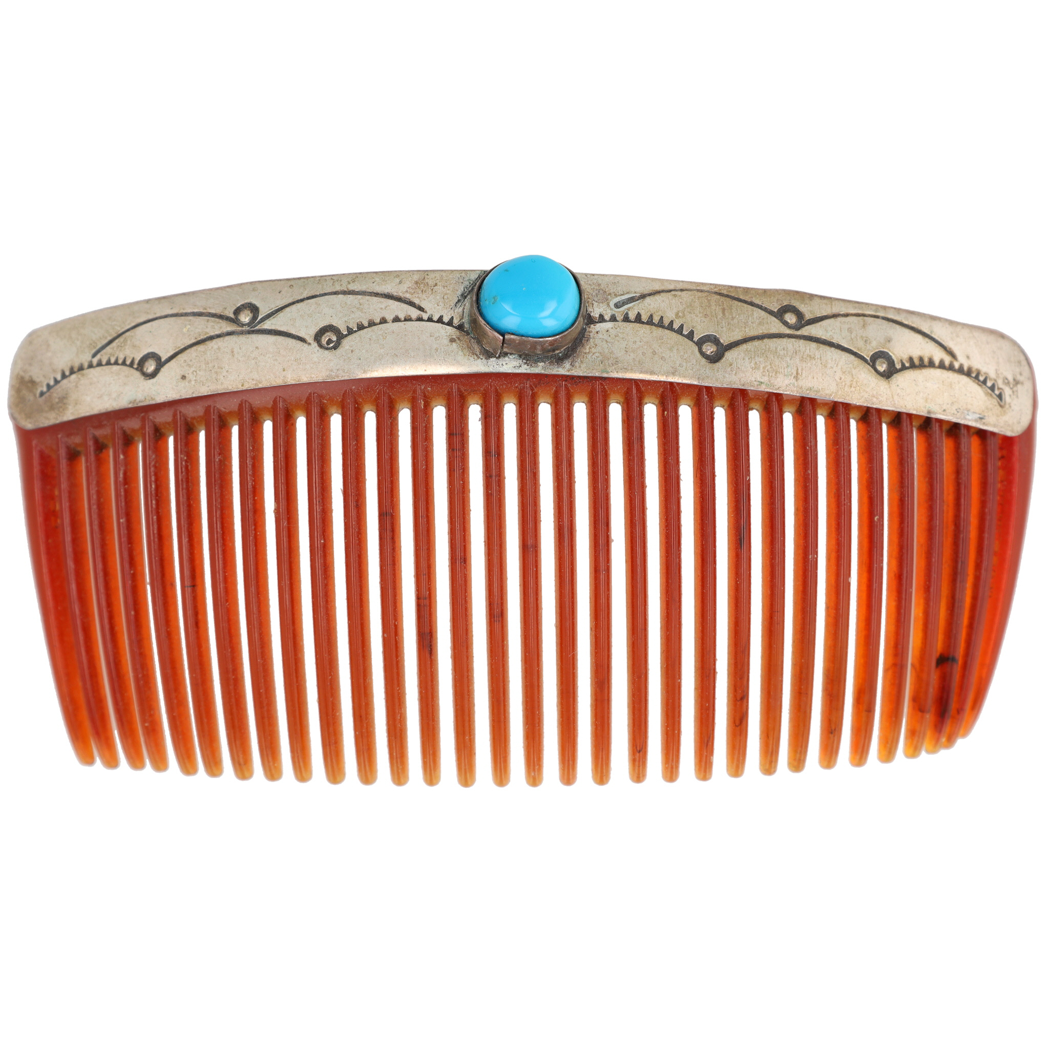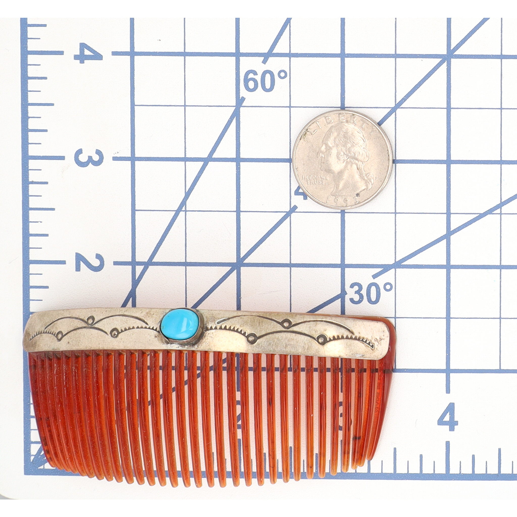 Vintage Navajo Sterling Turquoise Hair Comb 11g