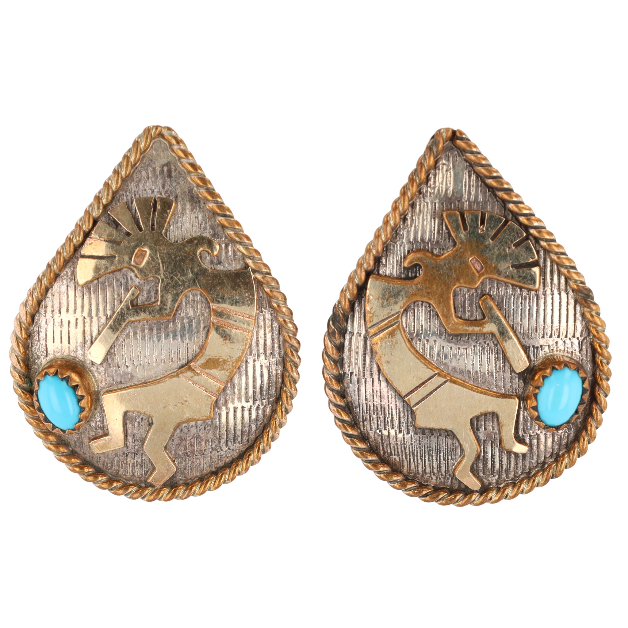 Signed Navajo Sterling Turquoise Kokopelli Earrings 10g