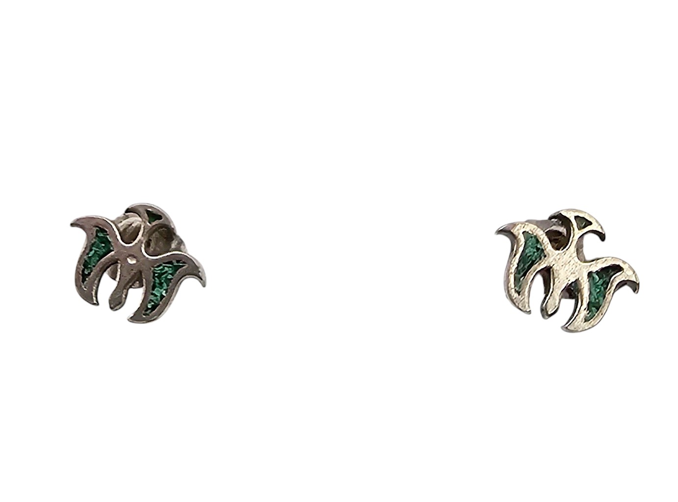 Navajo Crushed Turquoise Sterling Silver Thunderbird earrings 0.8 G