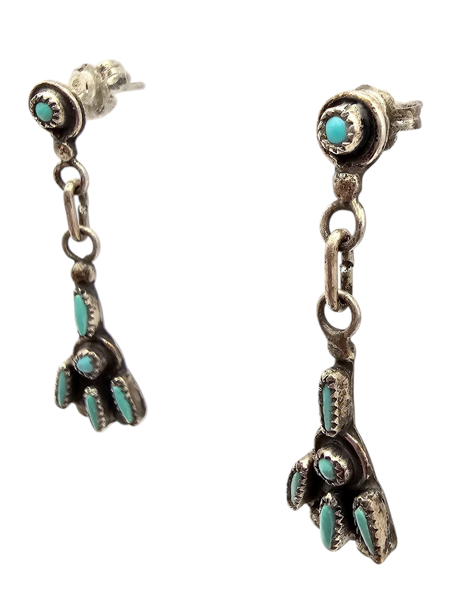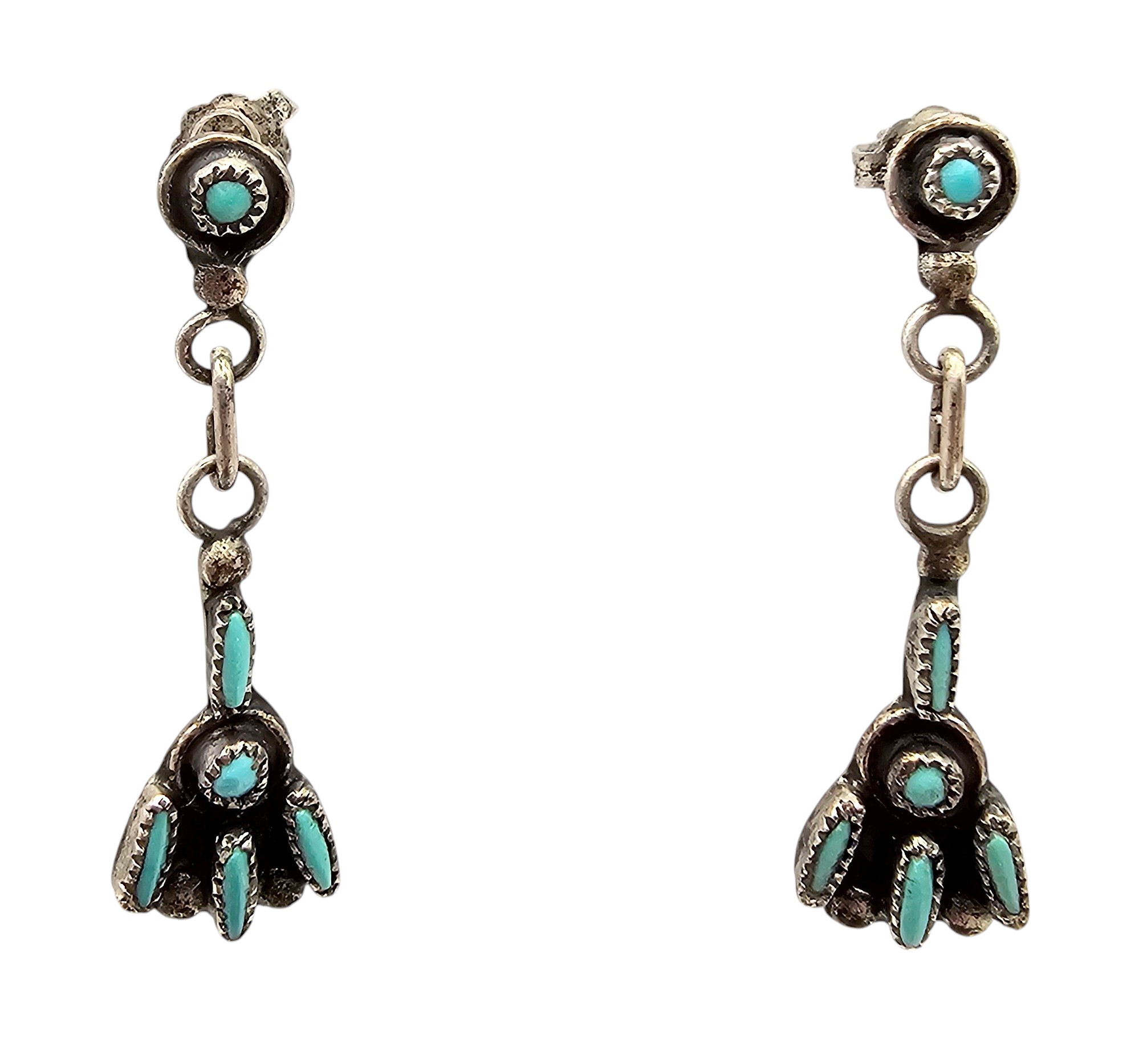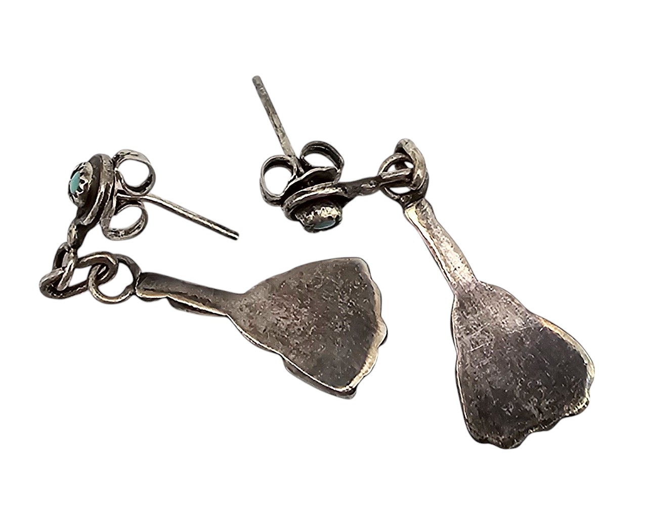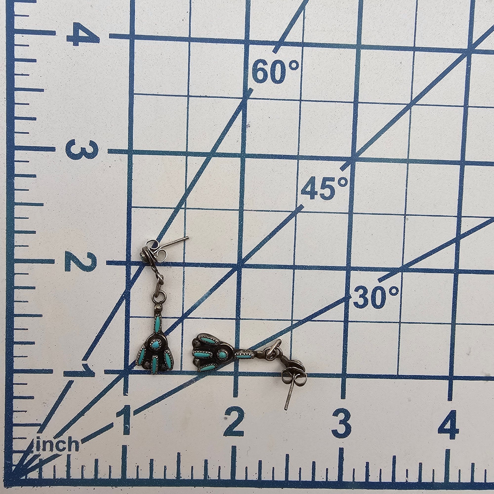 Zuni Turquoise Sterling Silver Drop Dangle Earrings 1.9 G