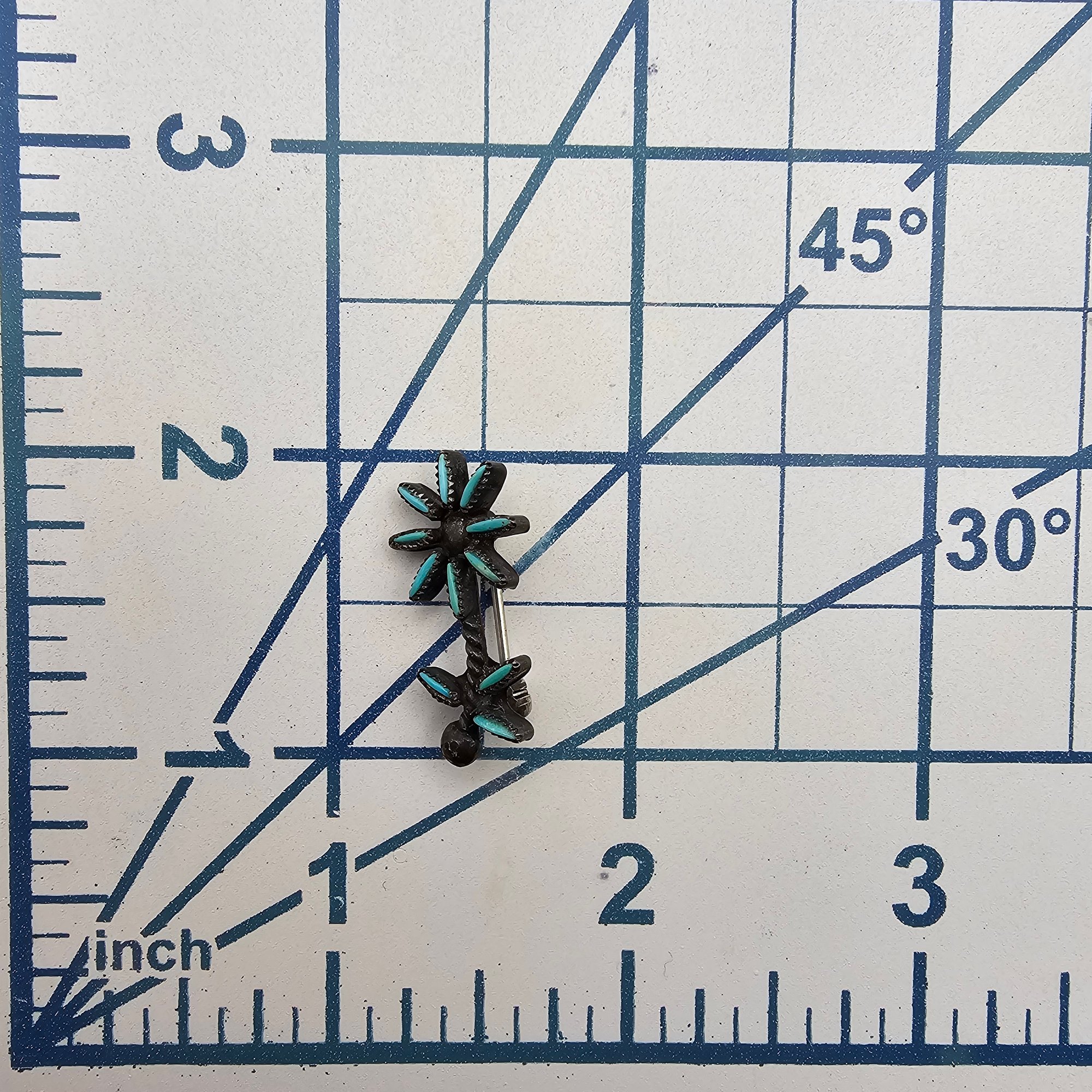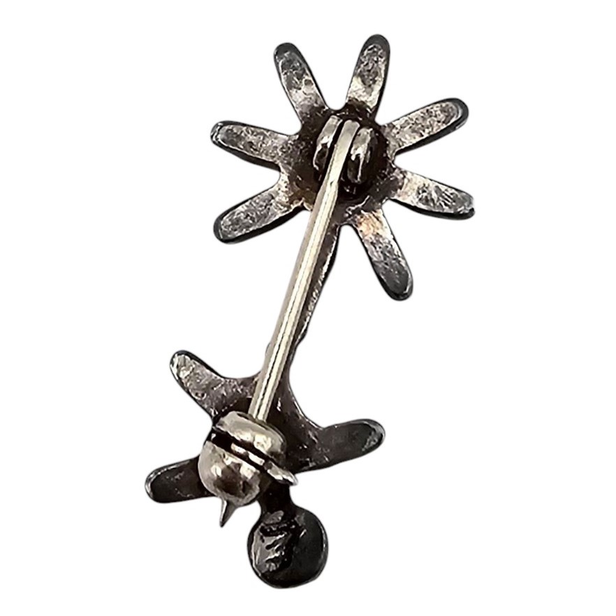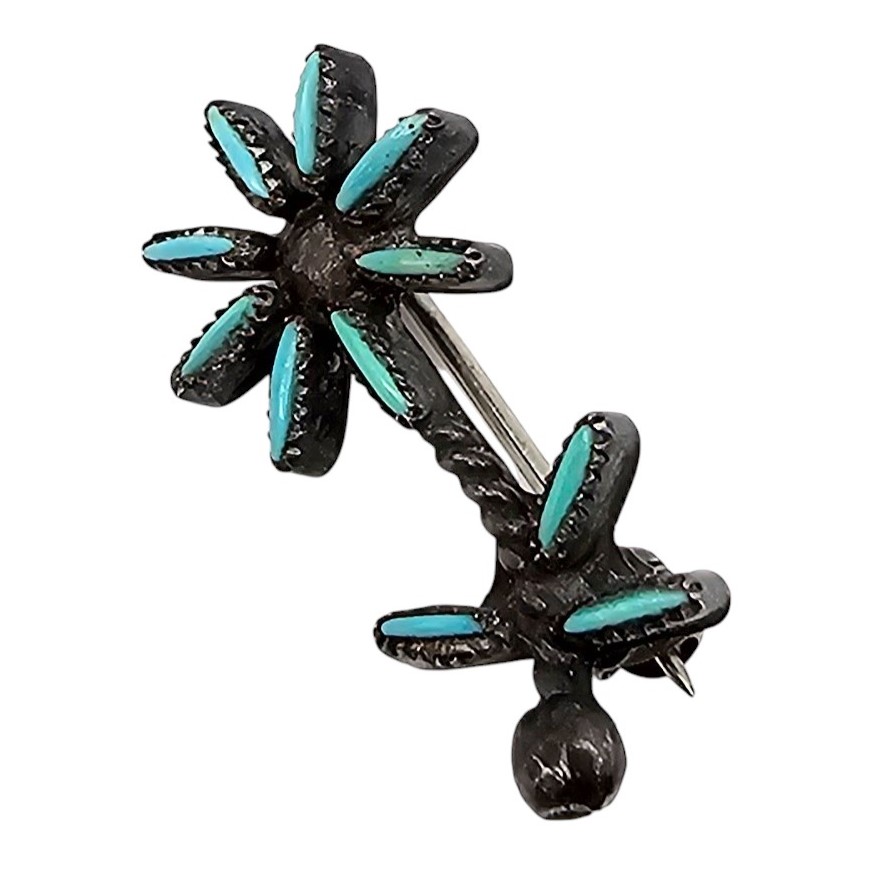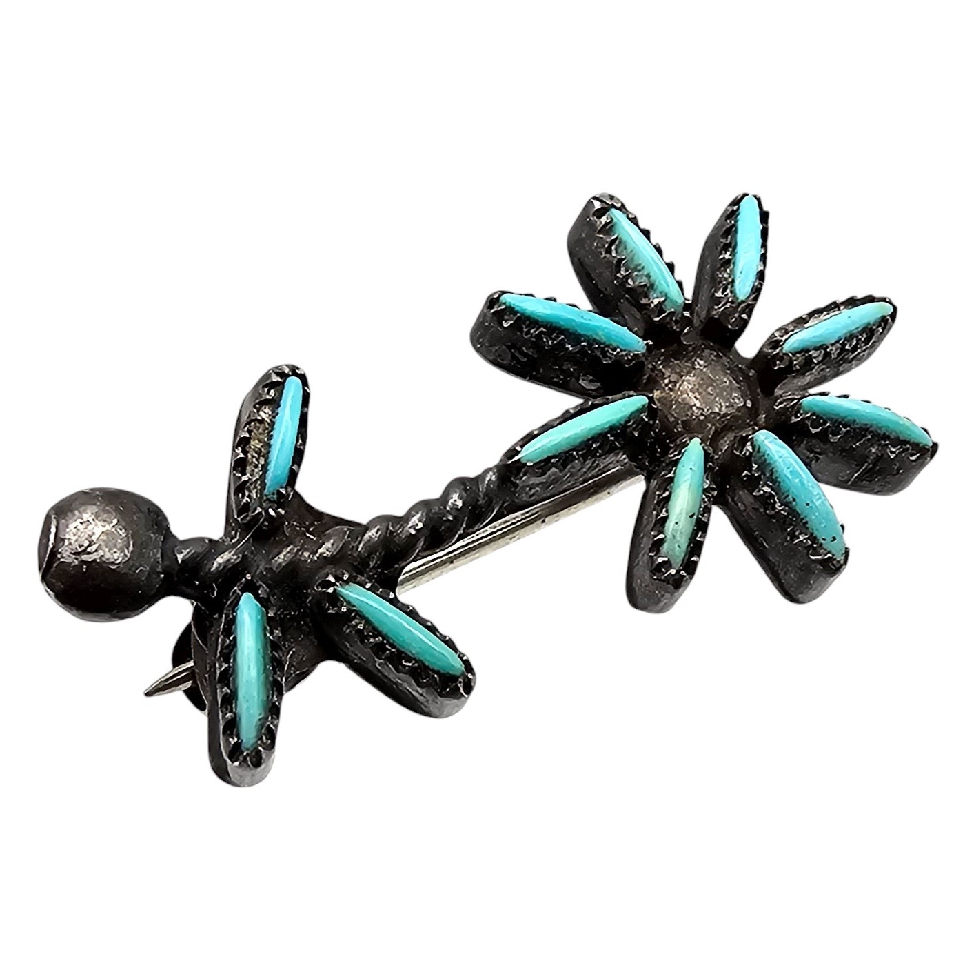 Zuni Turquoise Sterling Silver Needlepoint Flower Brooch 1.9 G