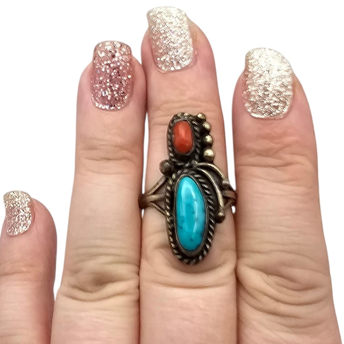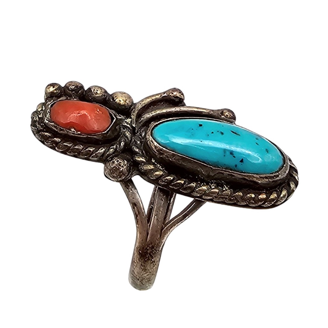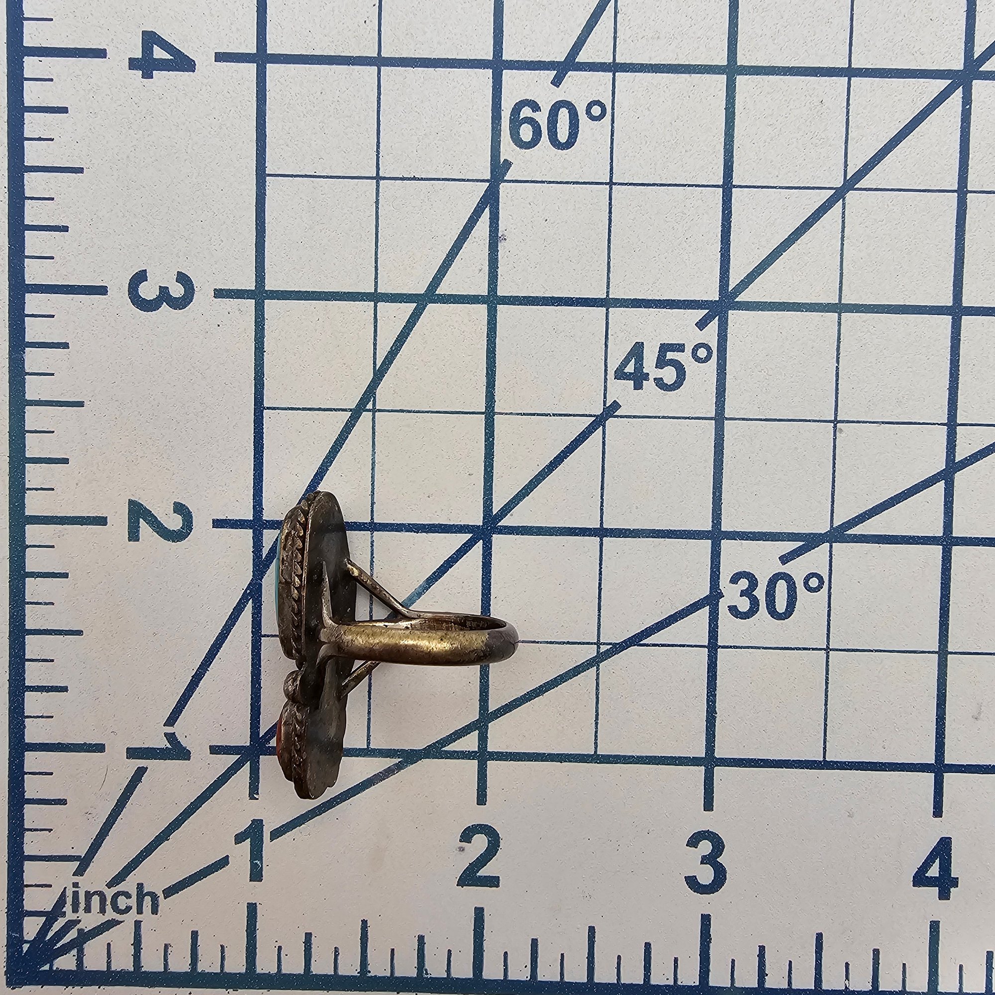 Navajo Turquoise Coral Sterling Silver Ring Size 6.5 6.3 G
