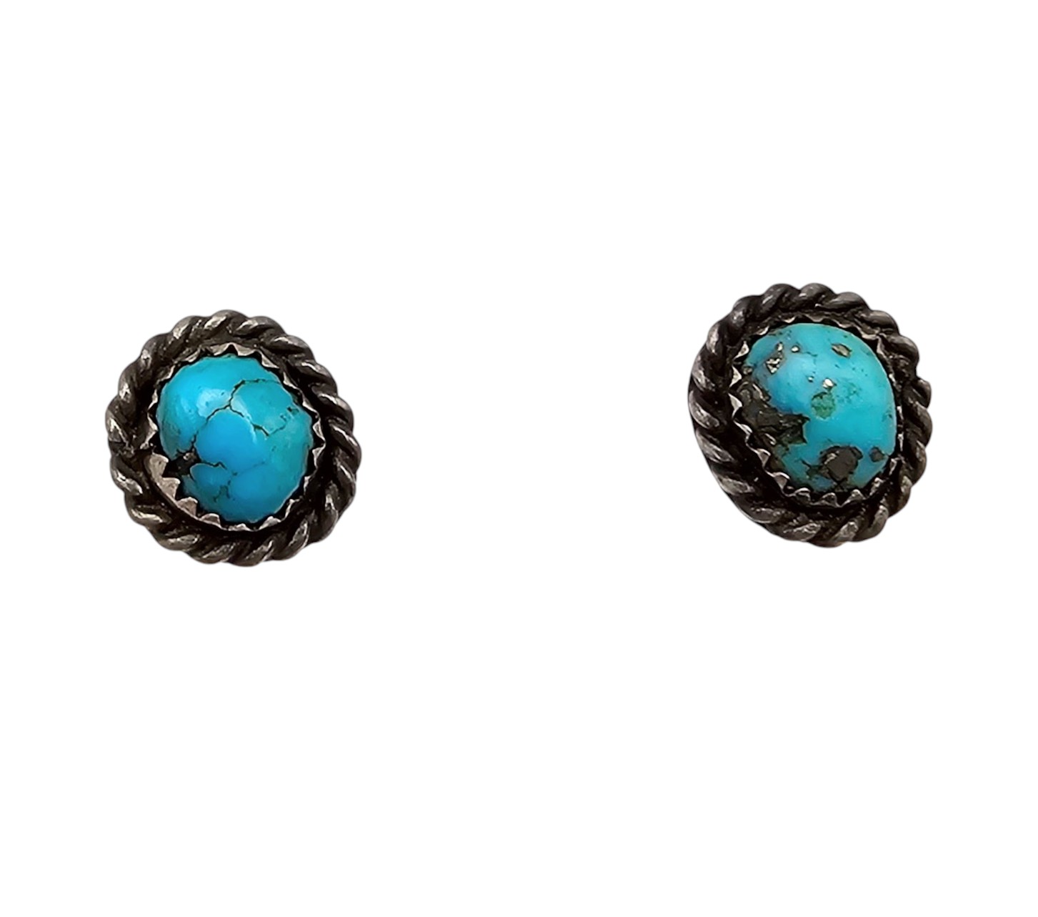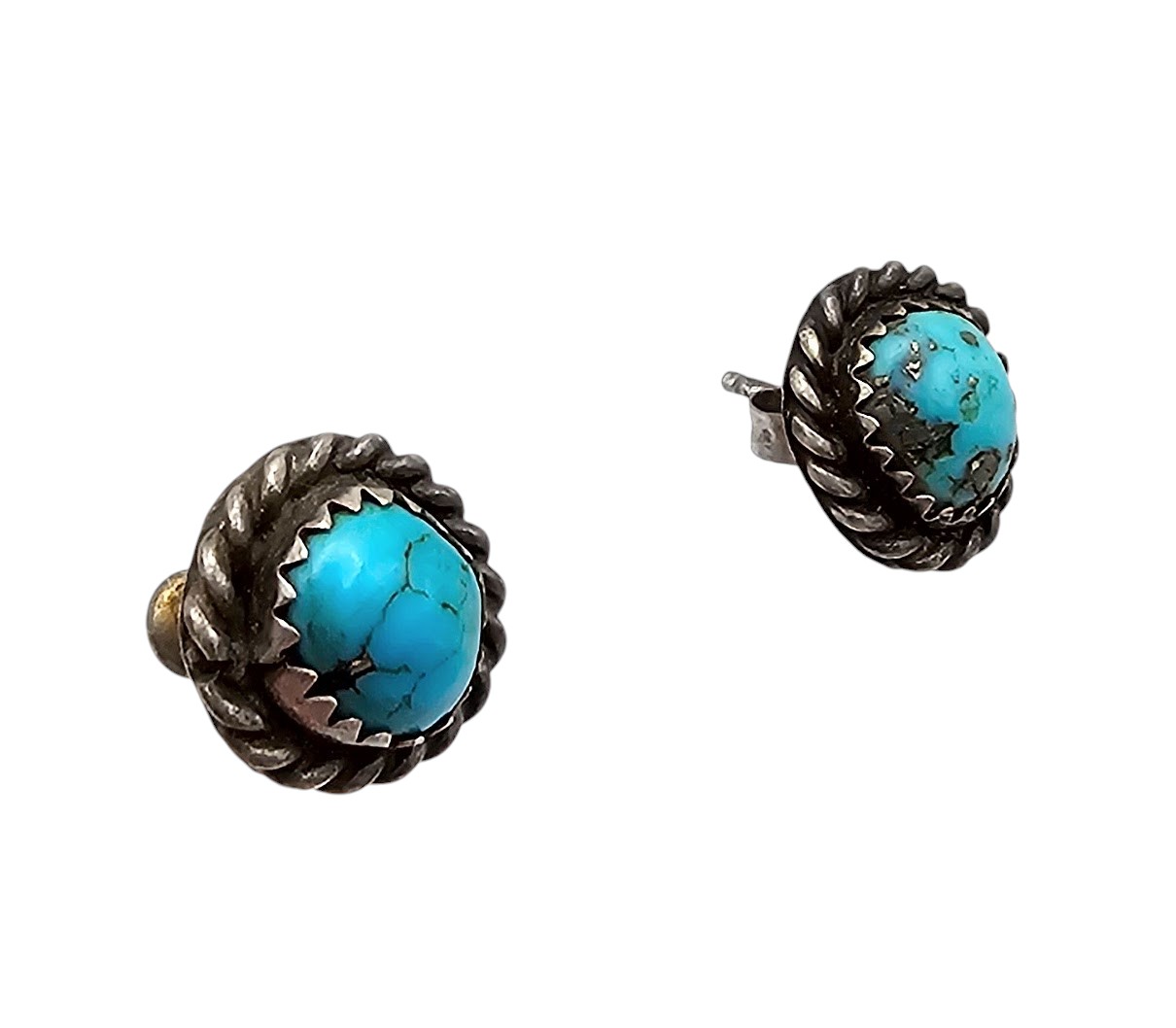 Navajo Turquoise Sterling Silver Earrings 2.7 G