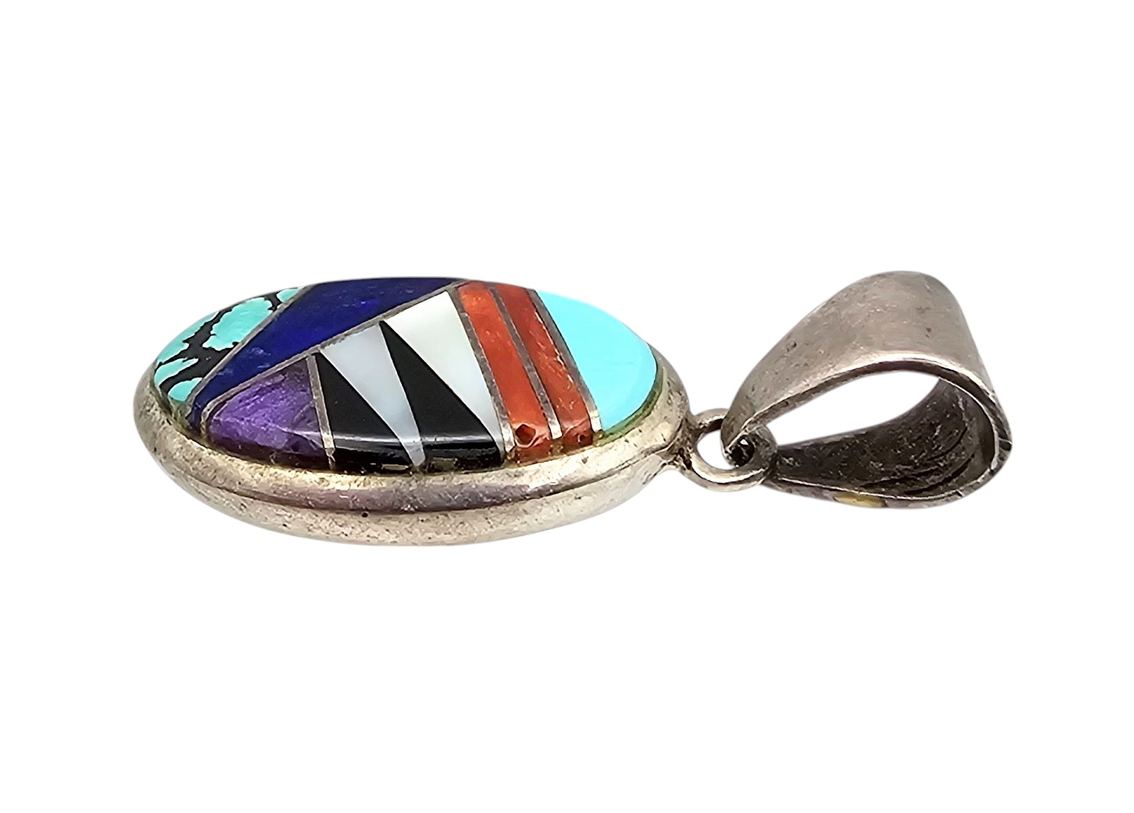 BG Mudd Multi Stone Sterling Silver Inlay Pendant 4.3 G
