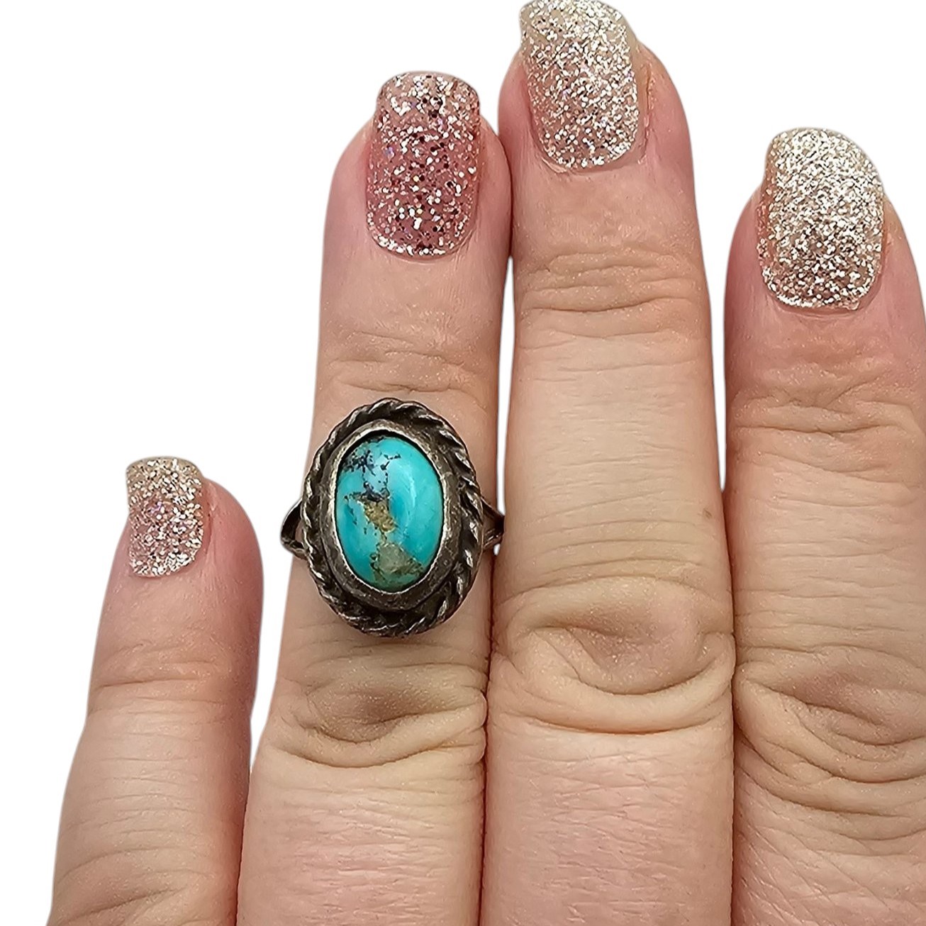 Navajo Turquoise Sterling Silver Ring Size 5.25 4.5 G