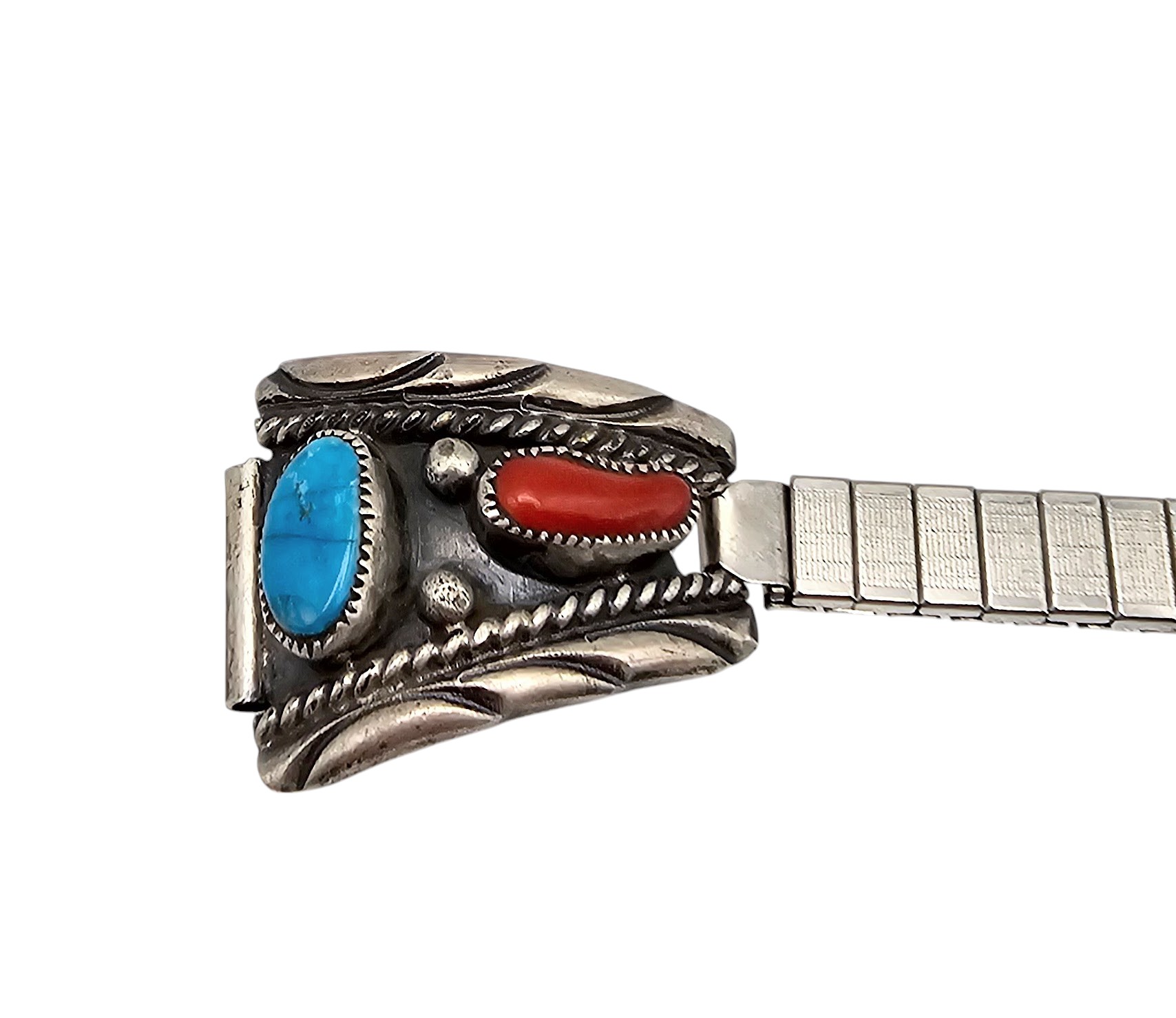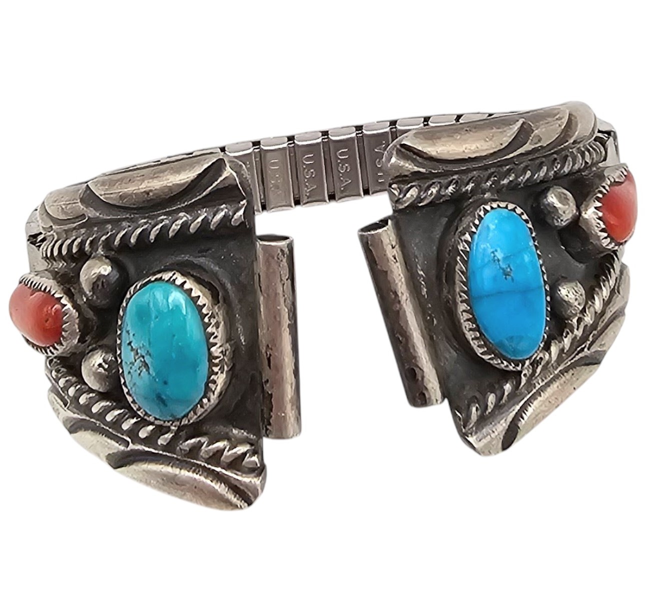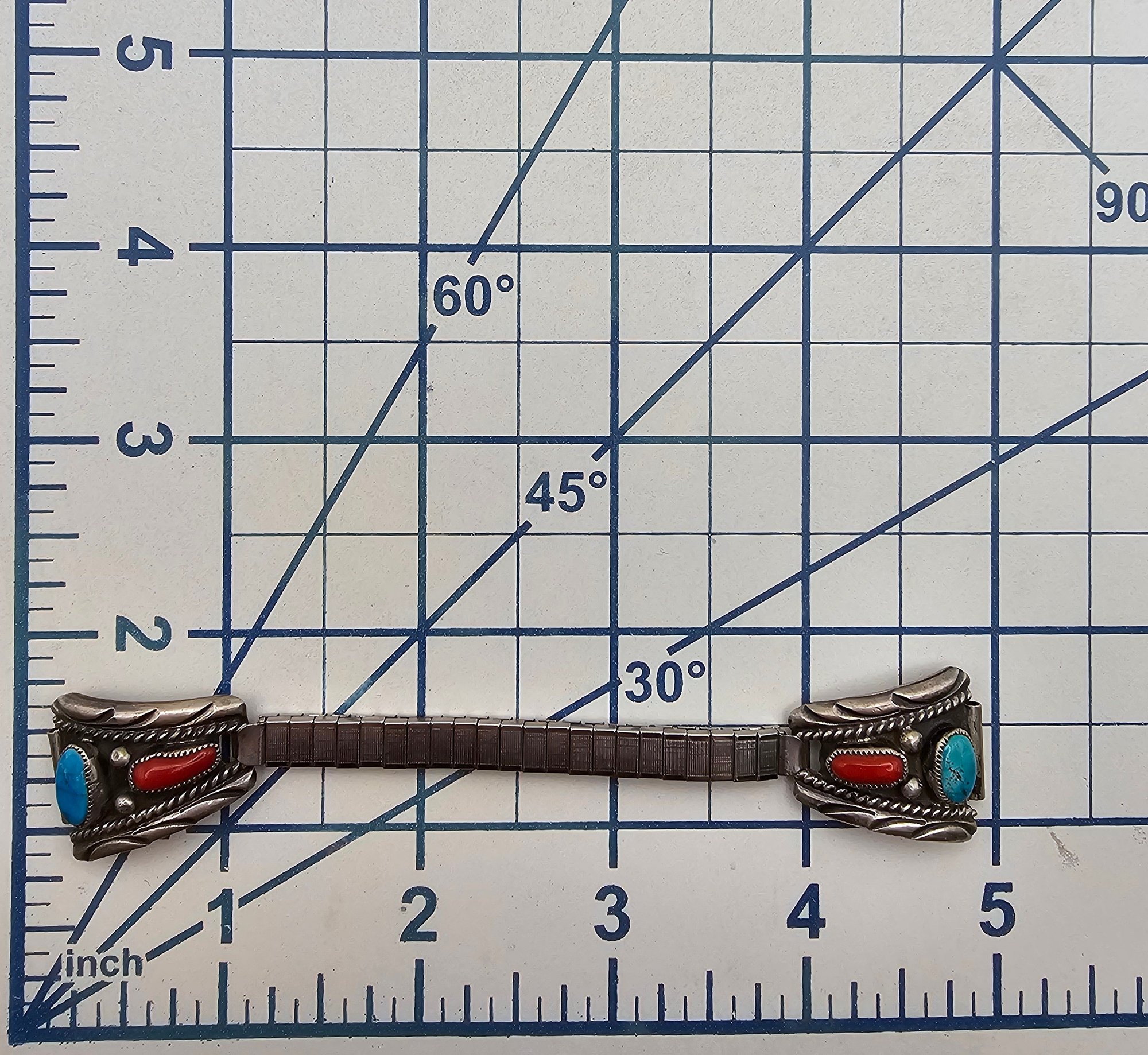 Elgin Tom Coral Turquoise Sterling Silver Watch Band 17.8 G