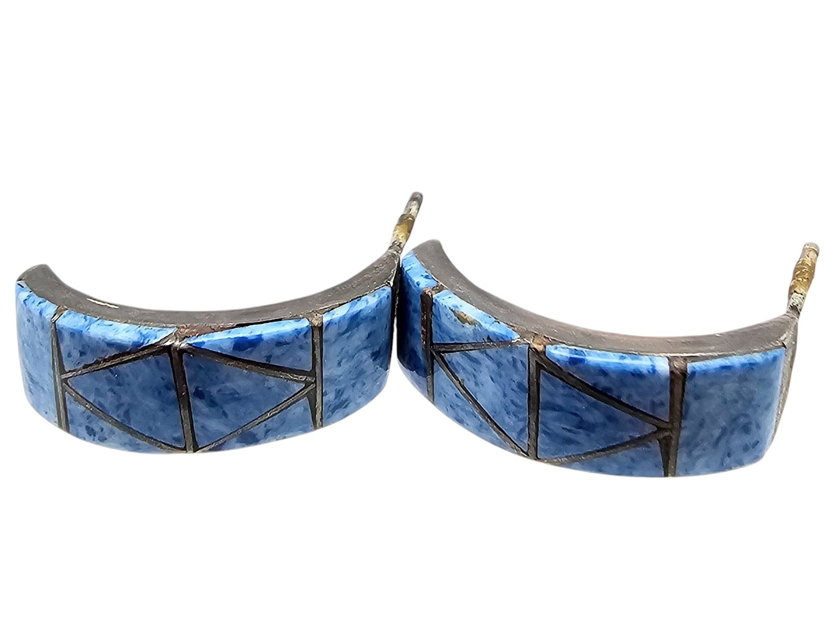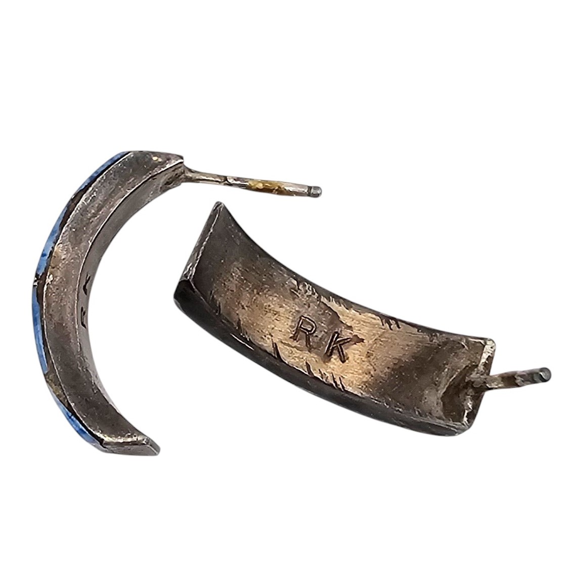 Signed RK Navajo Sodalite Sterling Silver hoop earrings 3 G