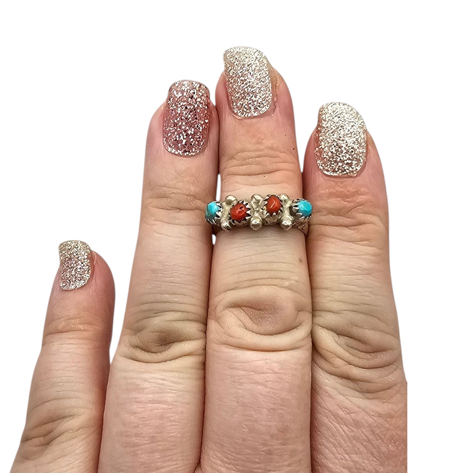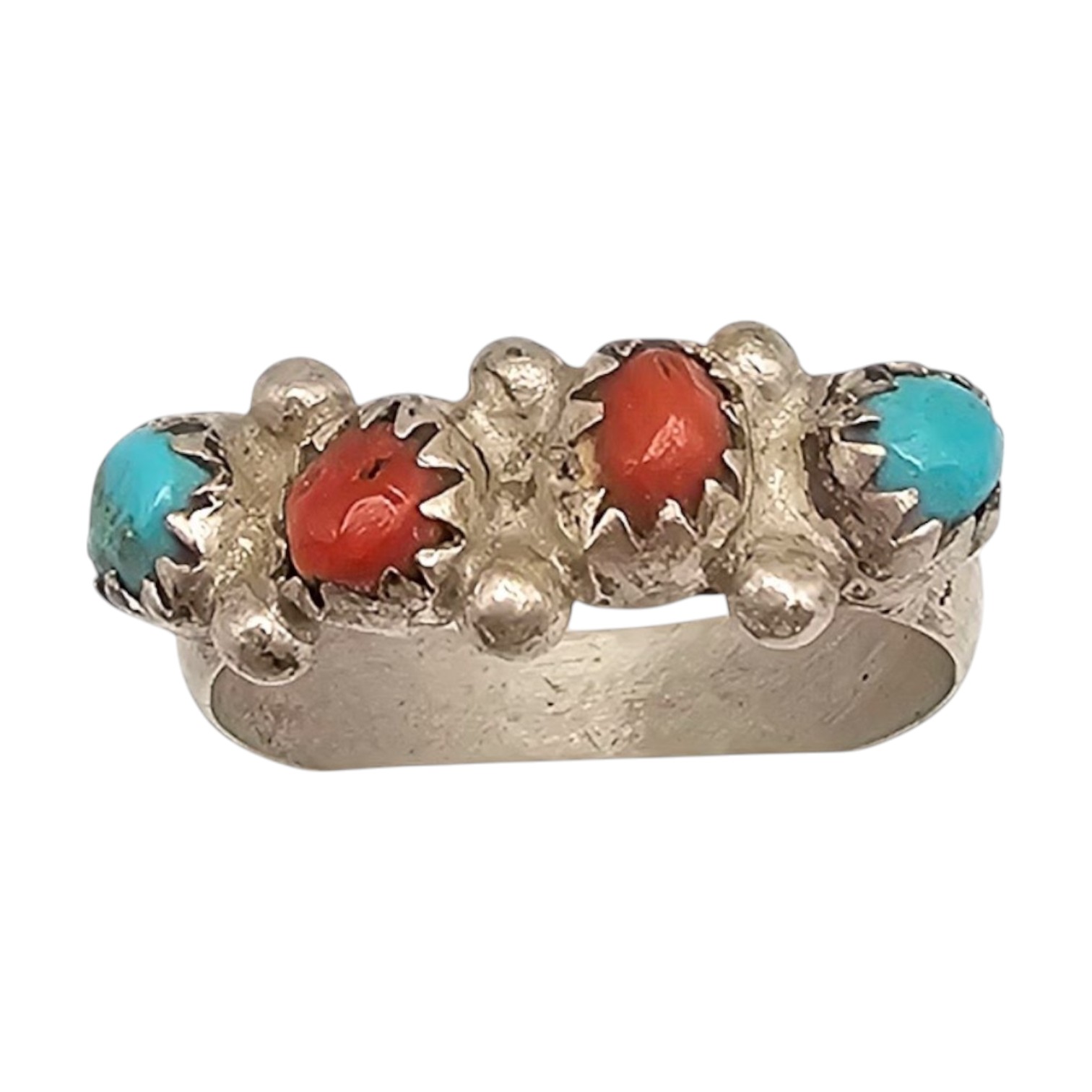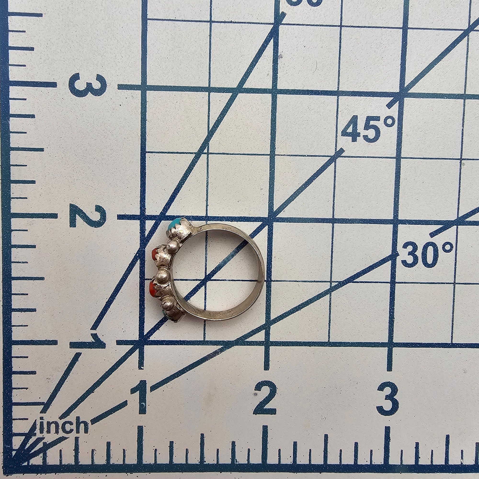 Native Turquoise Coral Sterling Silver Ring Size 6.25 3.5 G