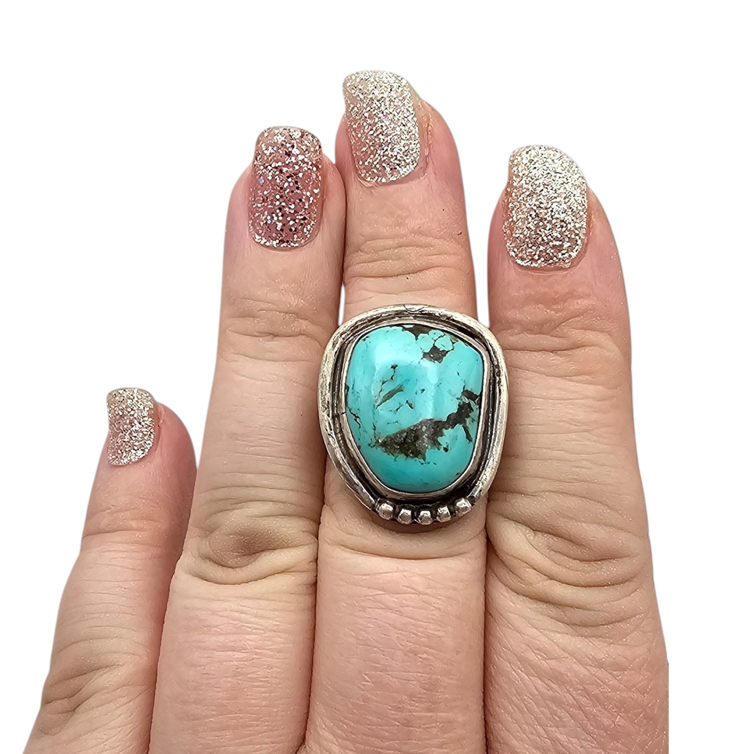 Native Turquoise Sterling Silver Ring Size 7.75 7.9 G